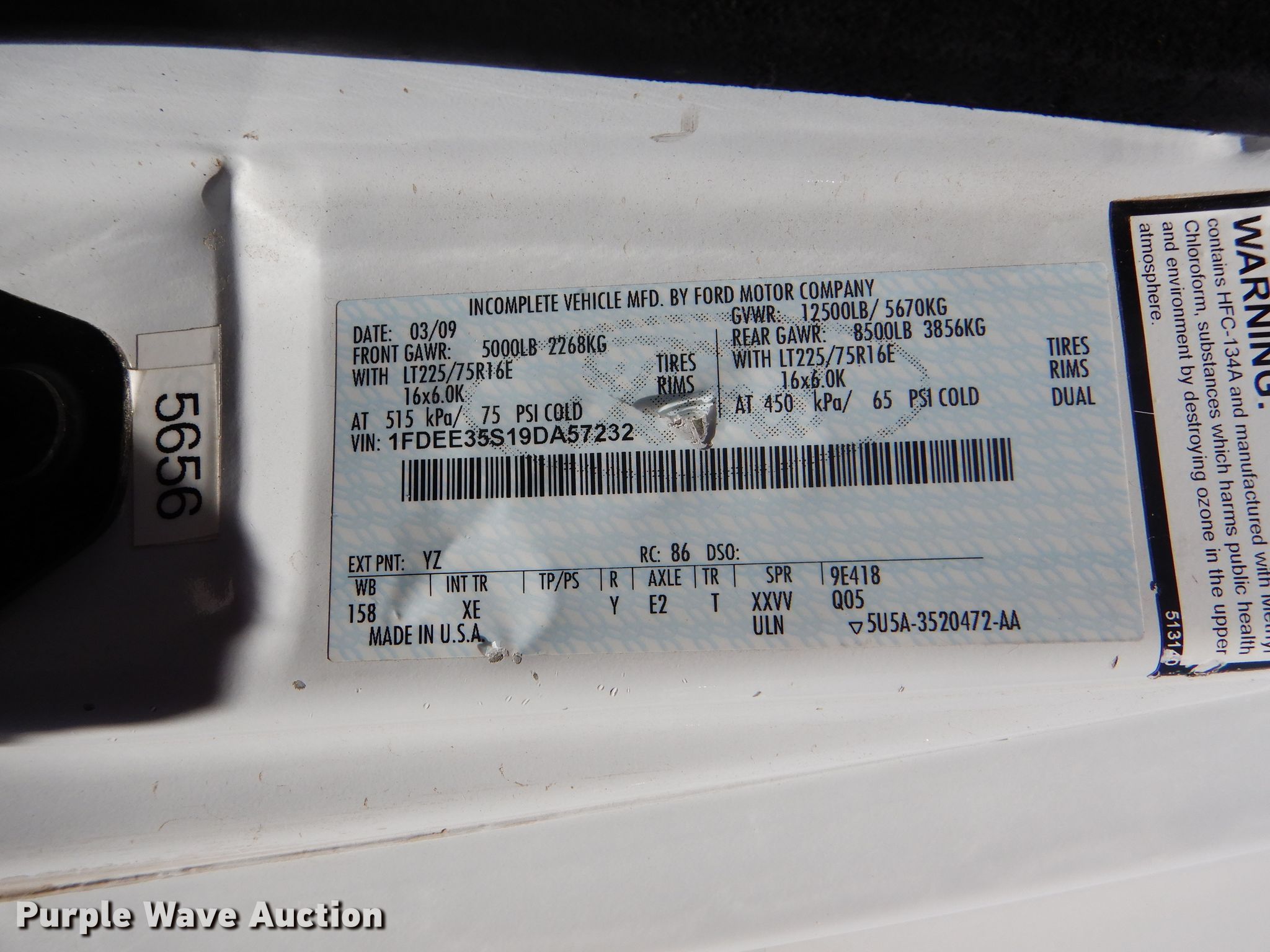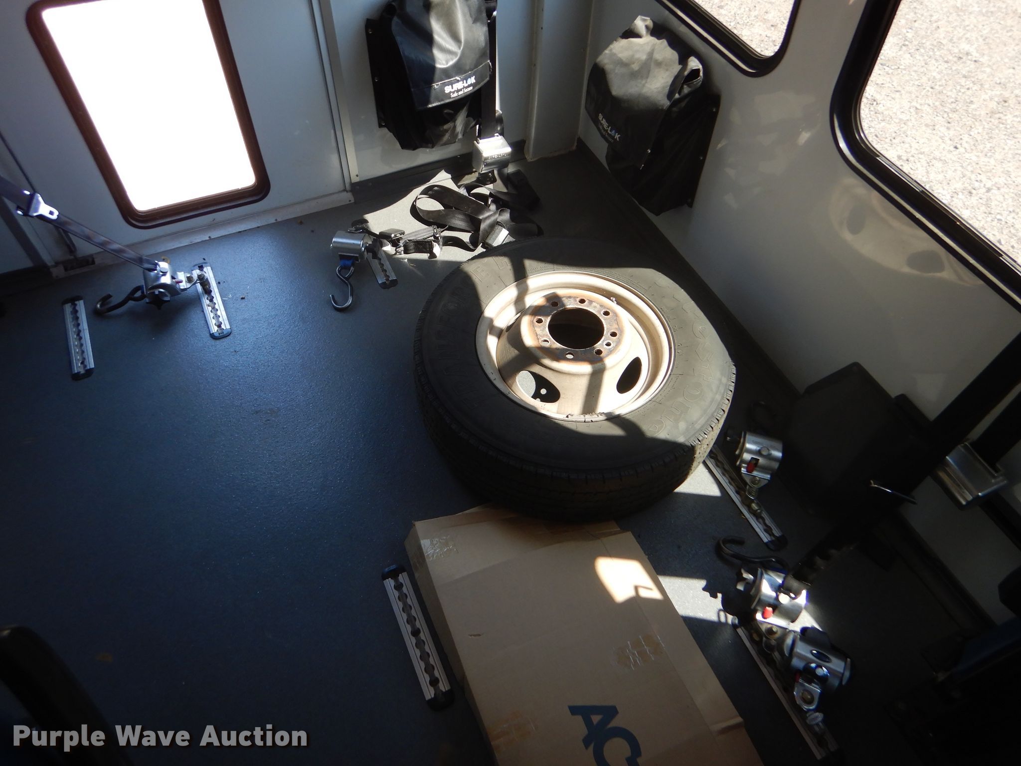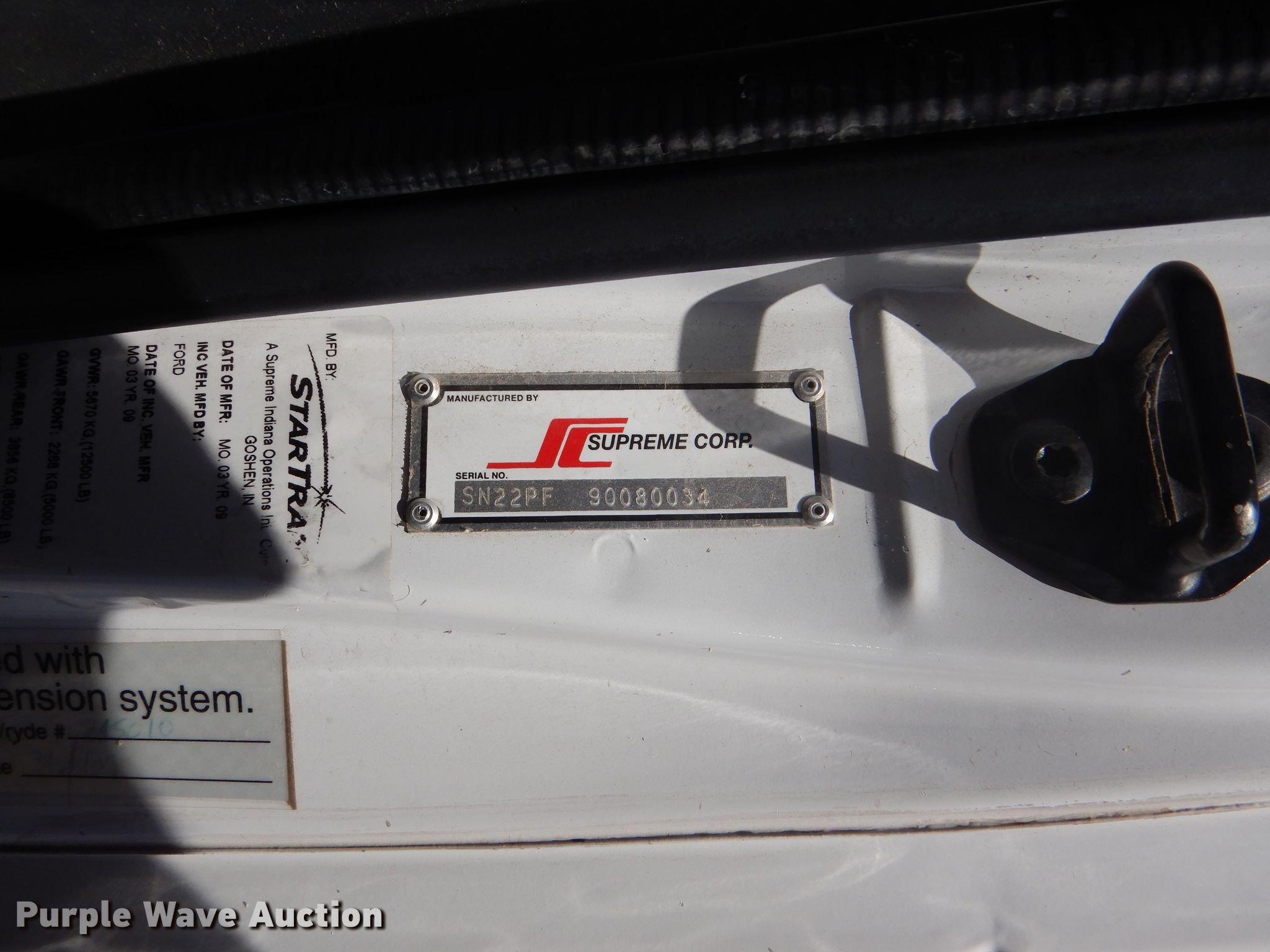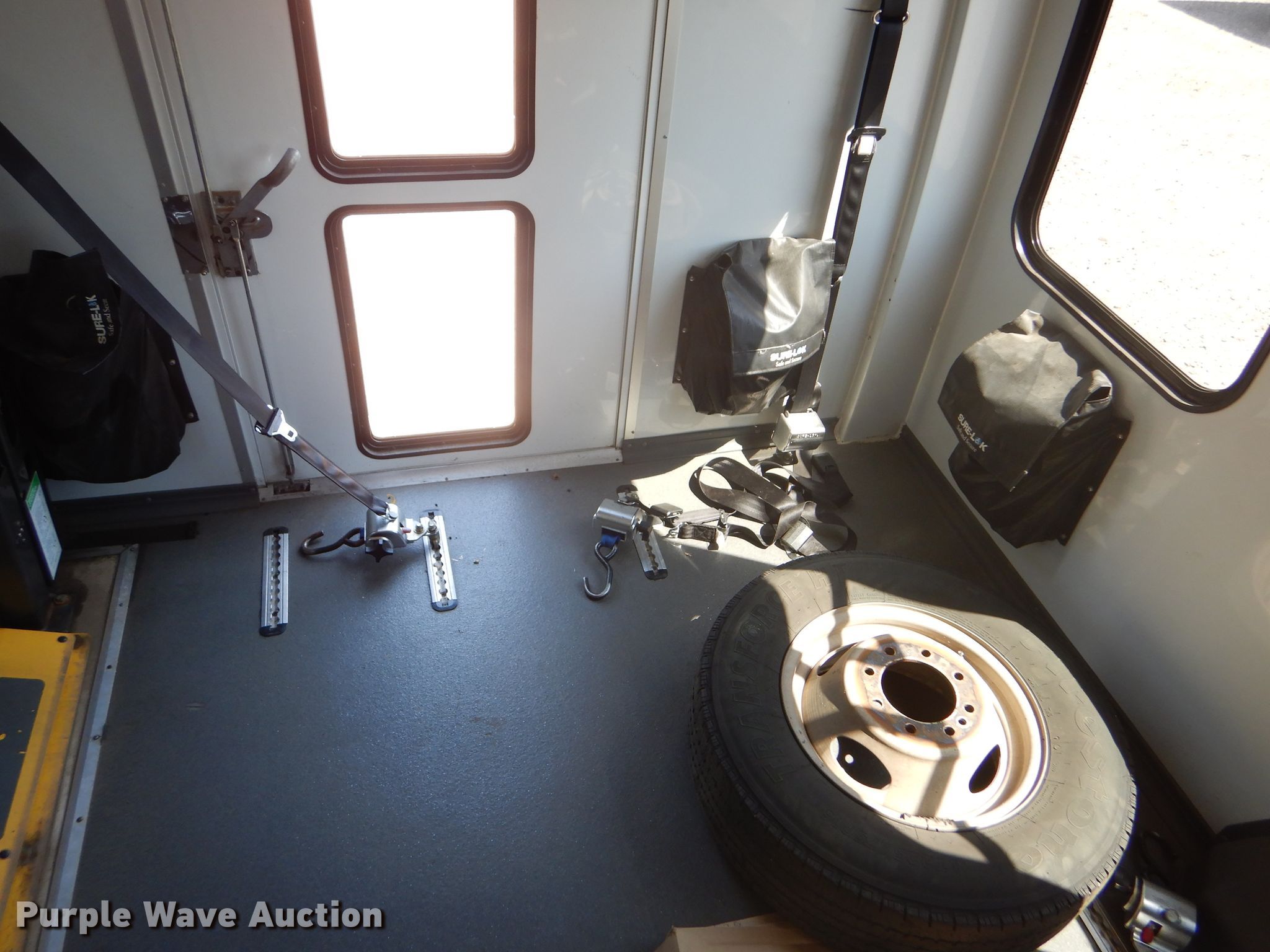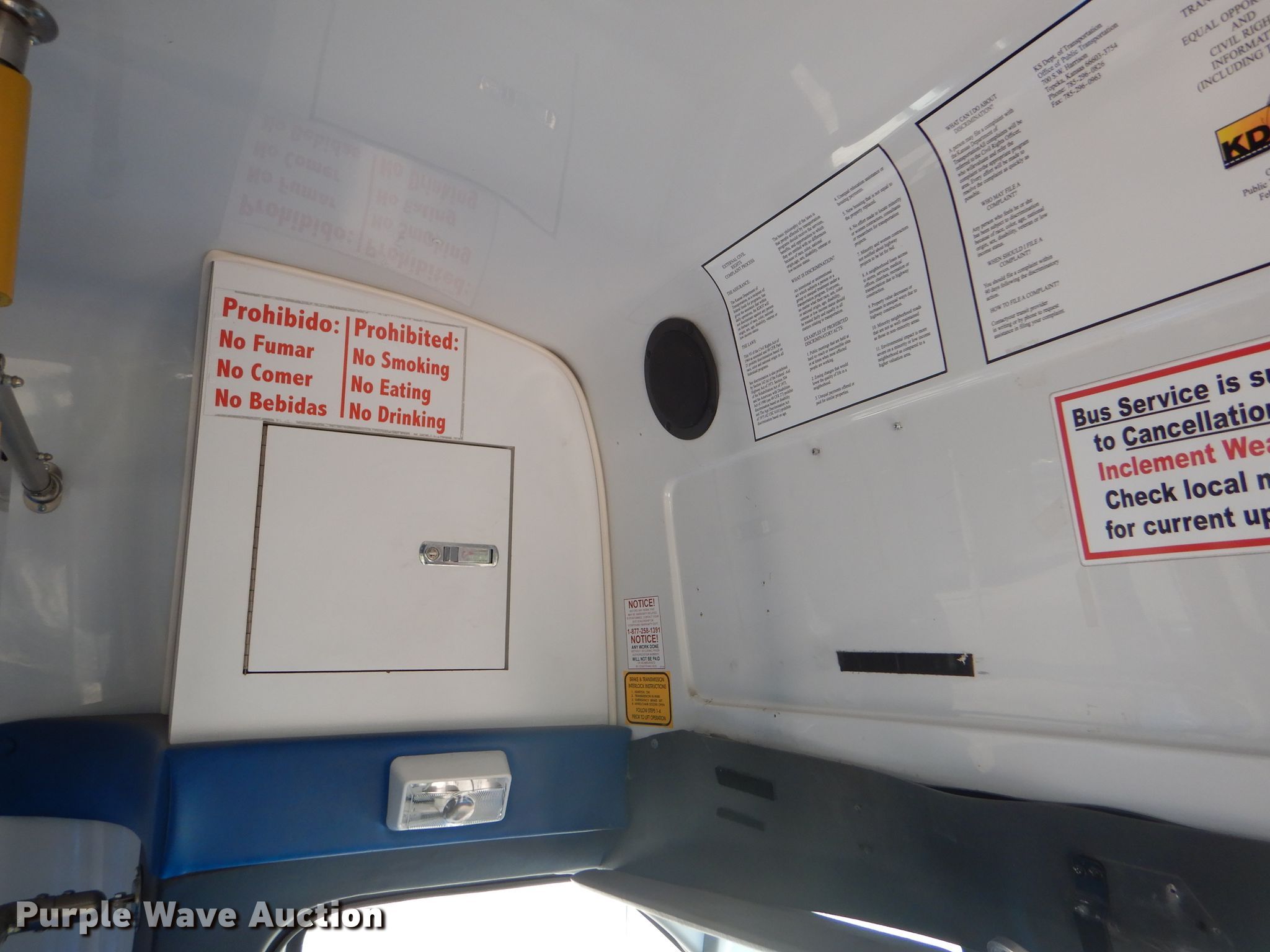 Purple Wave is selling a used Bus in Kansas. This item is a 2009 Ford E350 Super Duty shuttle bus with the following: 100,630 miles on odometer, 6.8L V10 SOHC 20V gas engine, Automatic transmission, Single axle, AC and heat, Auxiliary controls, Electric passenger sliding door, 12 passenger capacity, Braun wheelchair lift, Spring suspension, Hydraulic brakes, 158" wheelbase, 225/75R16 tires, GVWR 12,500 lbs