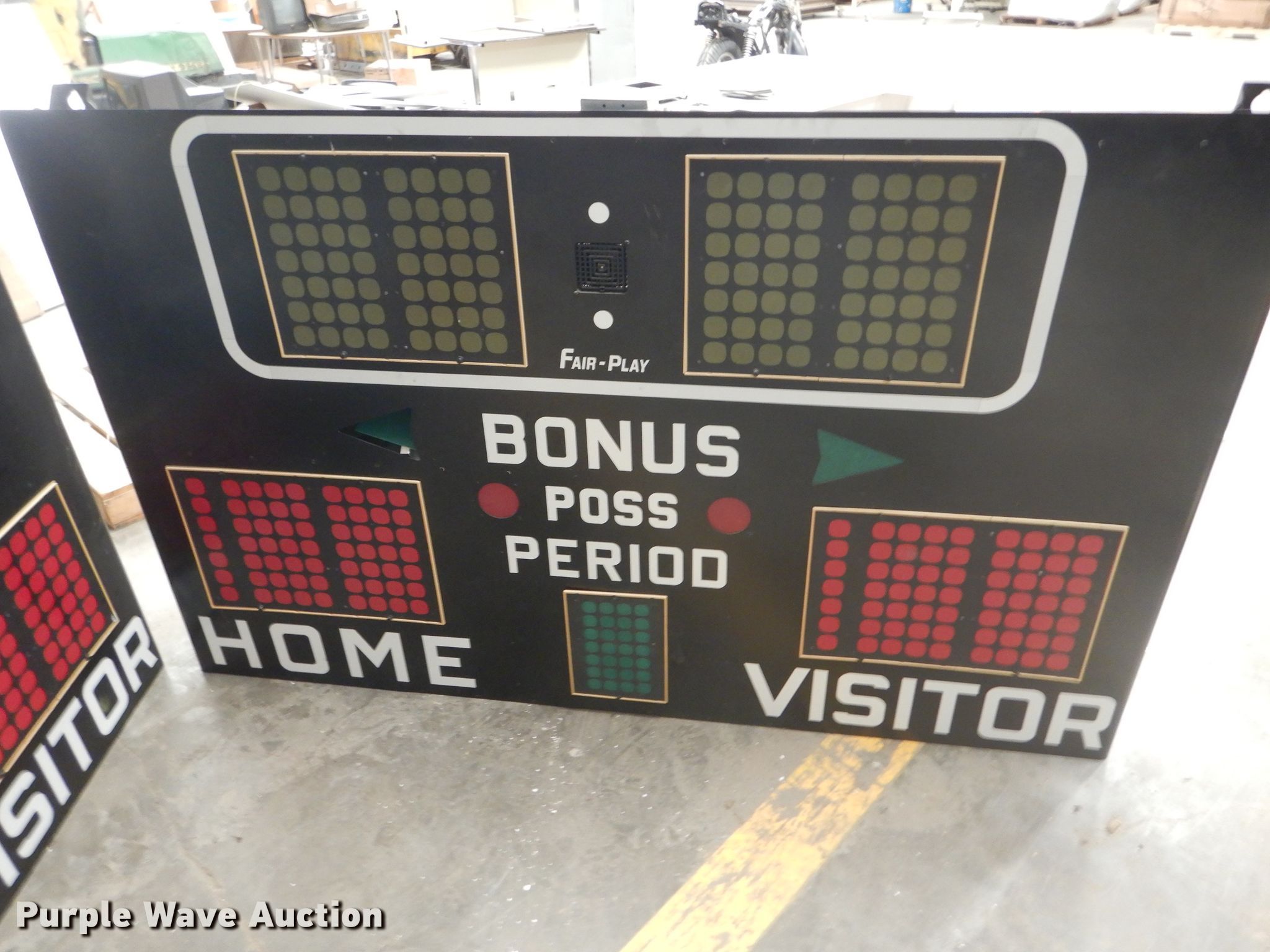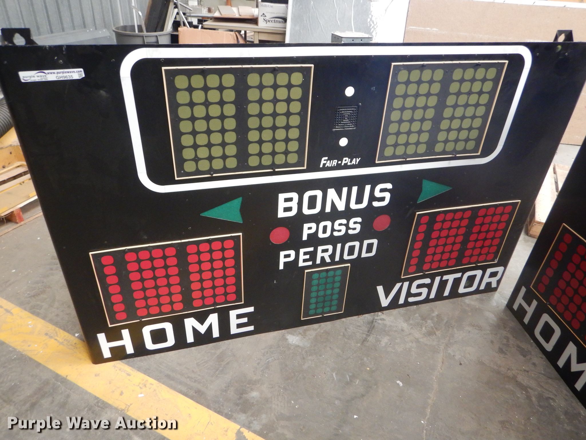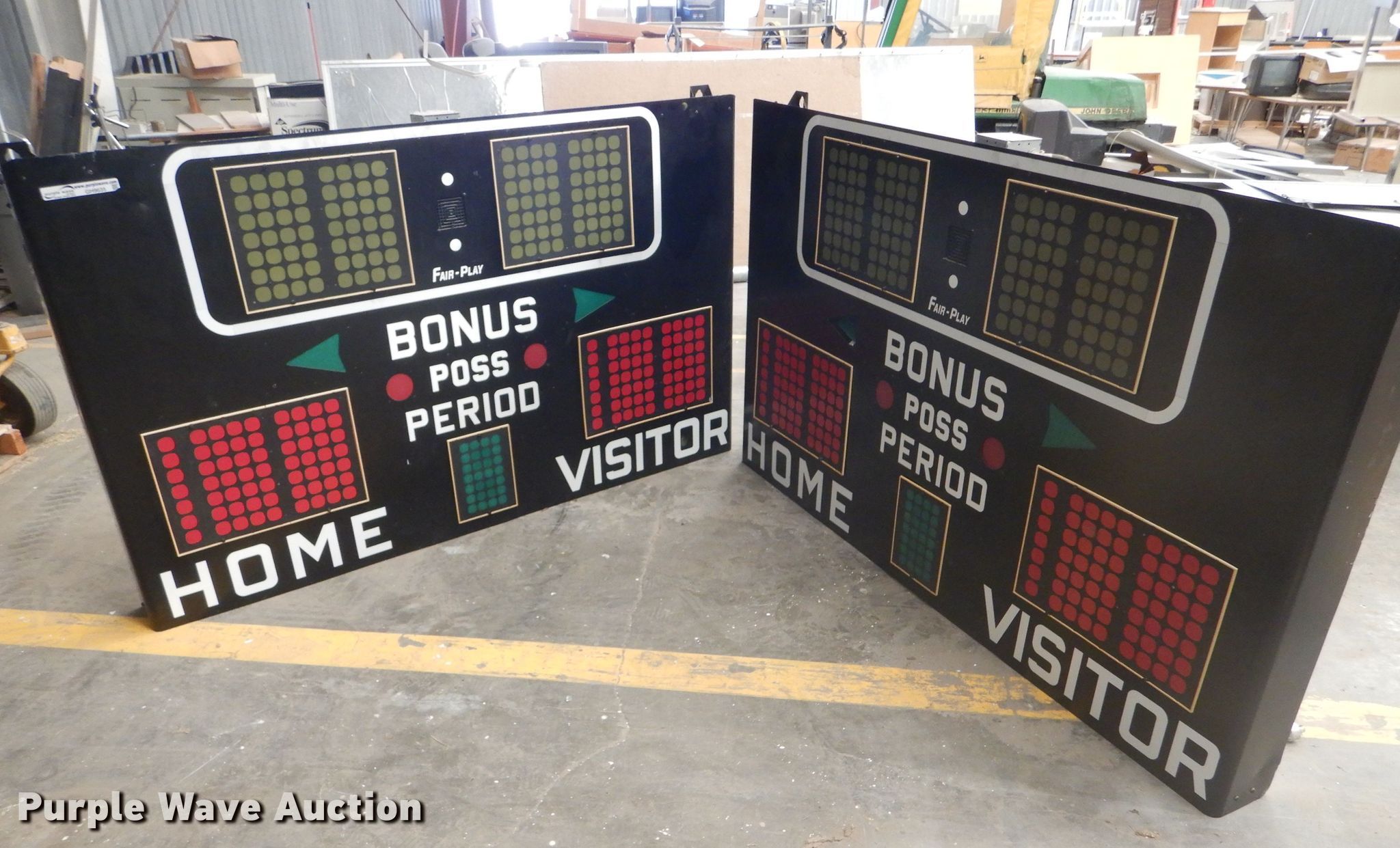 Purple Wave is selling a used Sporting Goods in Kansas. This item is a (2) Fairtron BB6500 scoreboards with the following: 78"W x 4'H, 120V, (3) Fairplay controller
