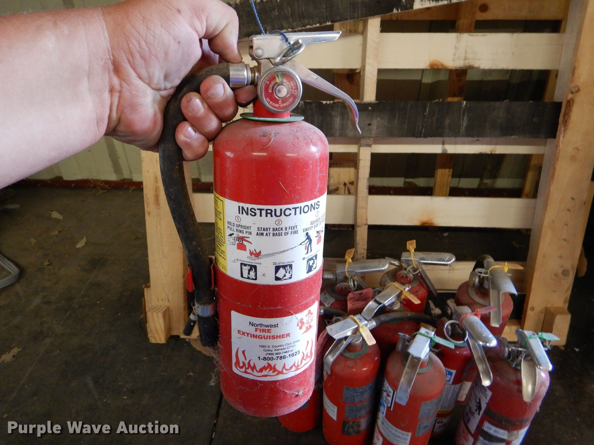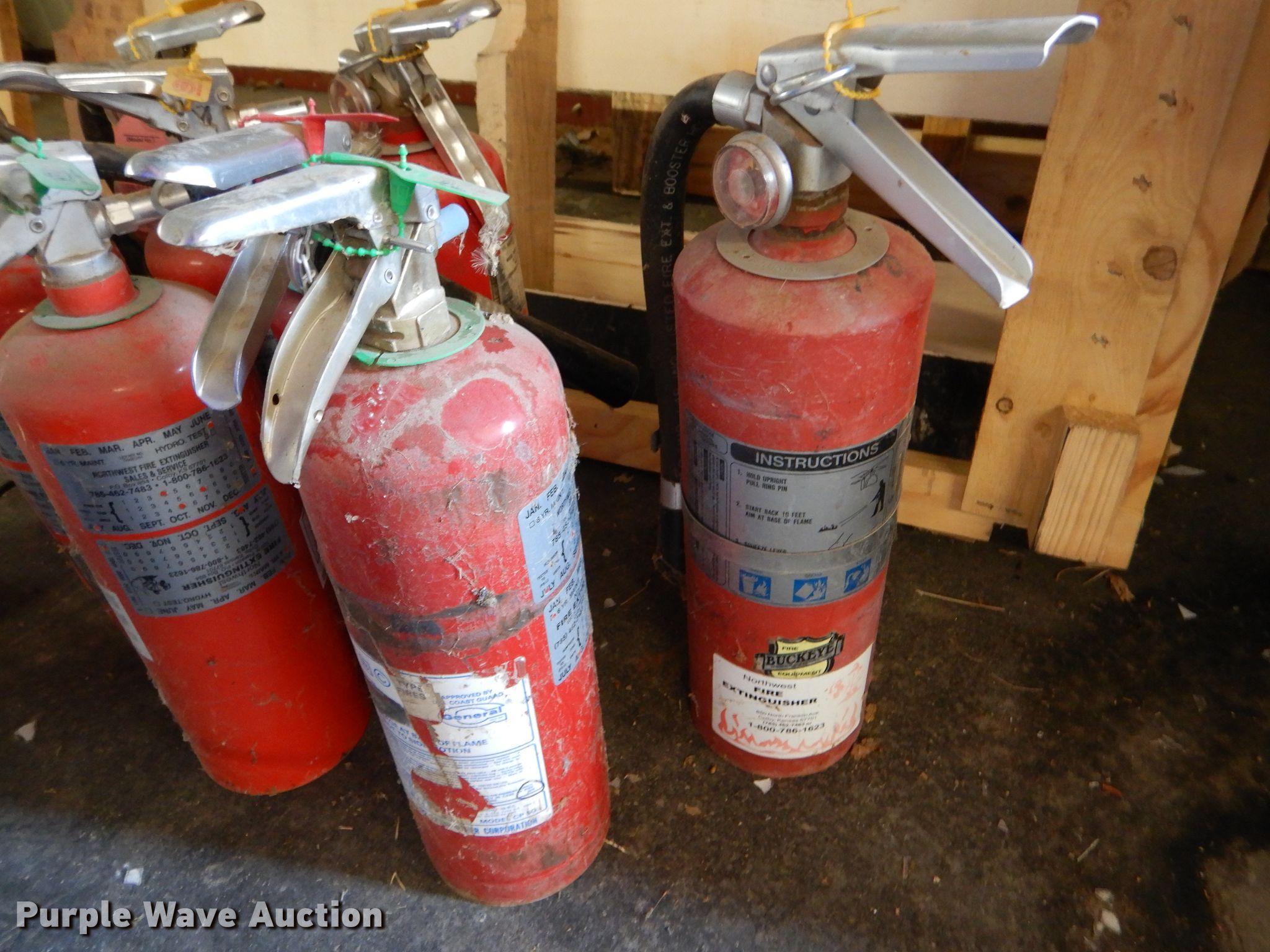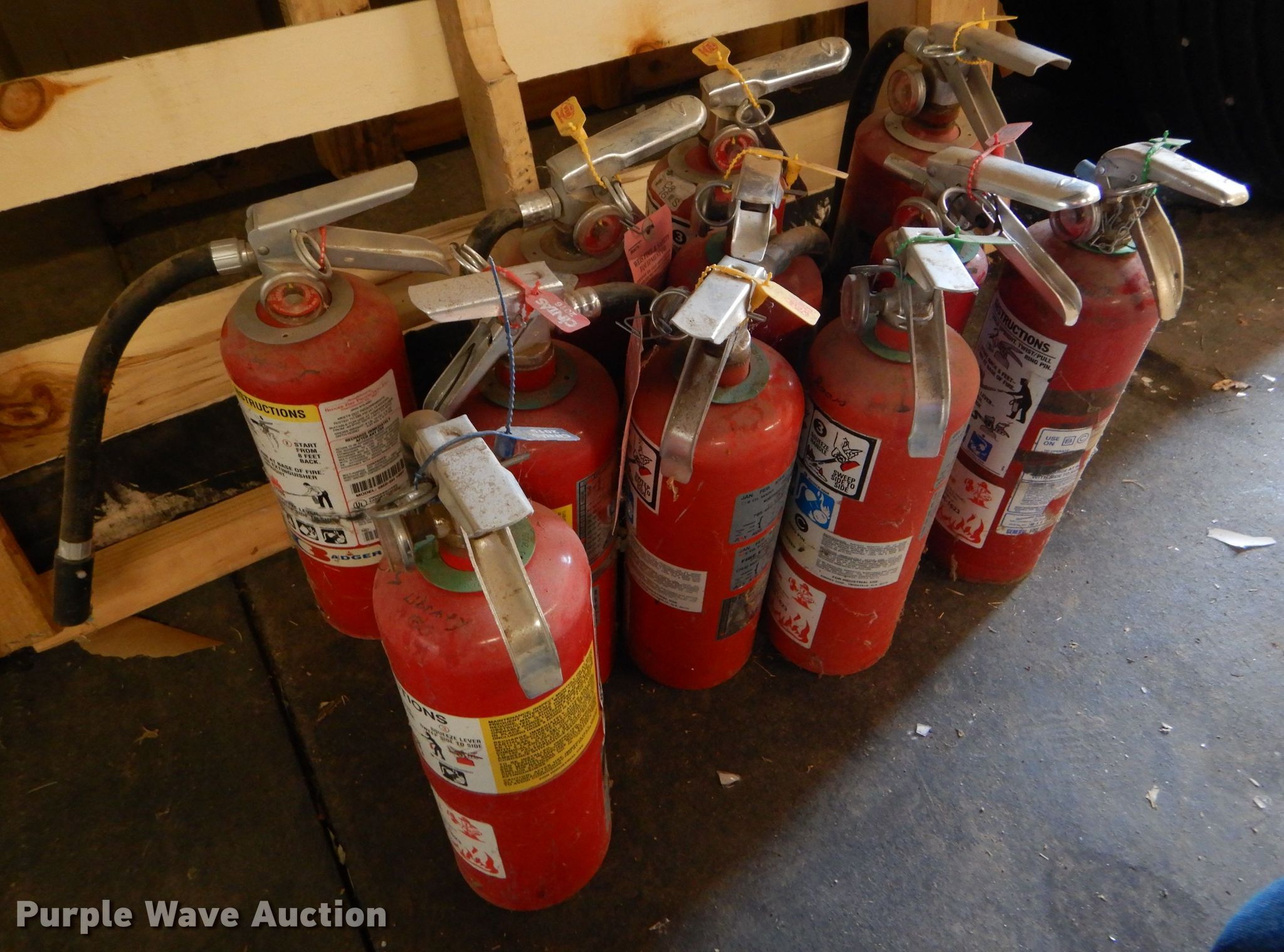 Purple Wave is selling a used Tools in Kansas. This item is a (11) fire extinguishers with the following: Out of service date