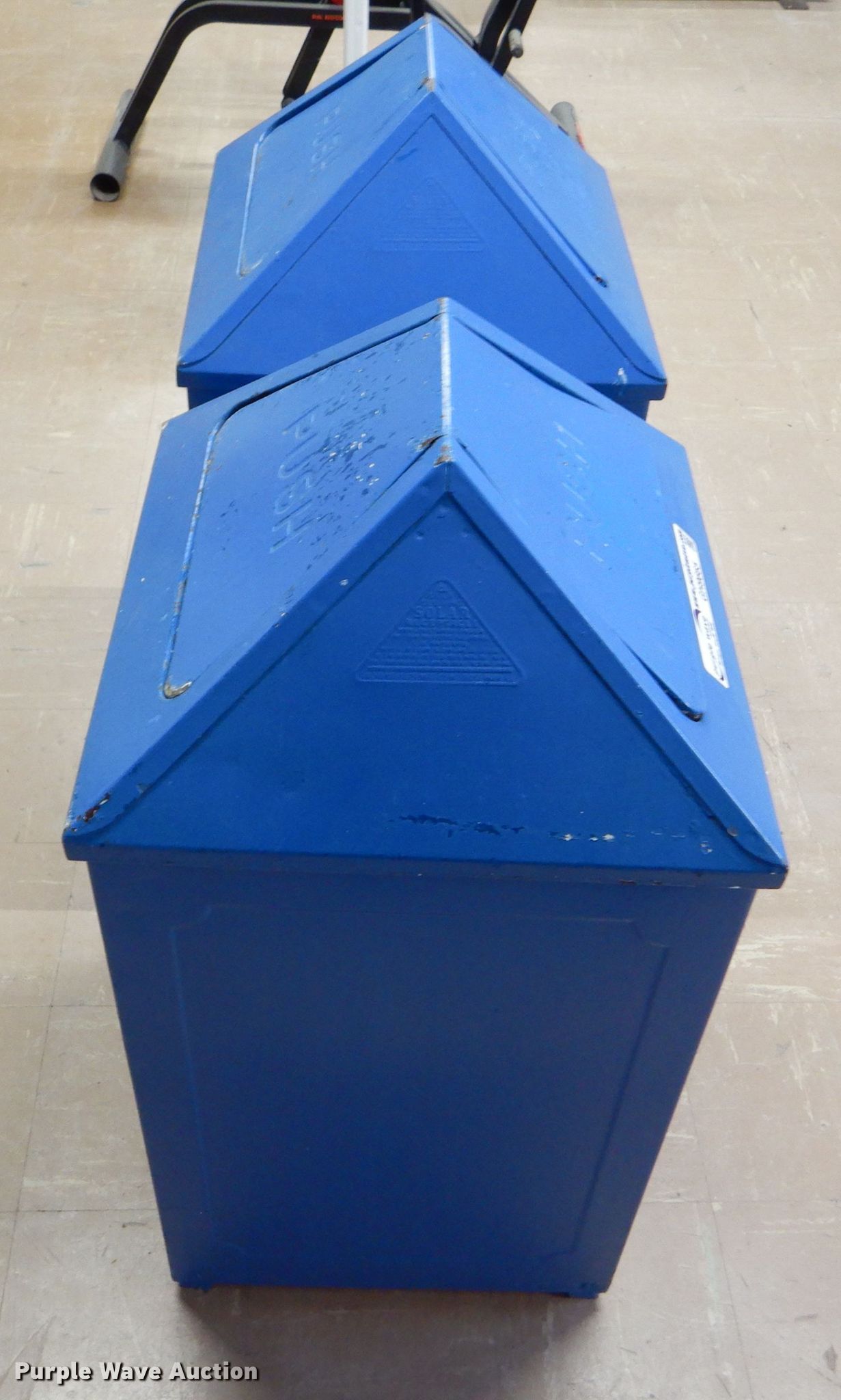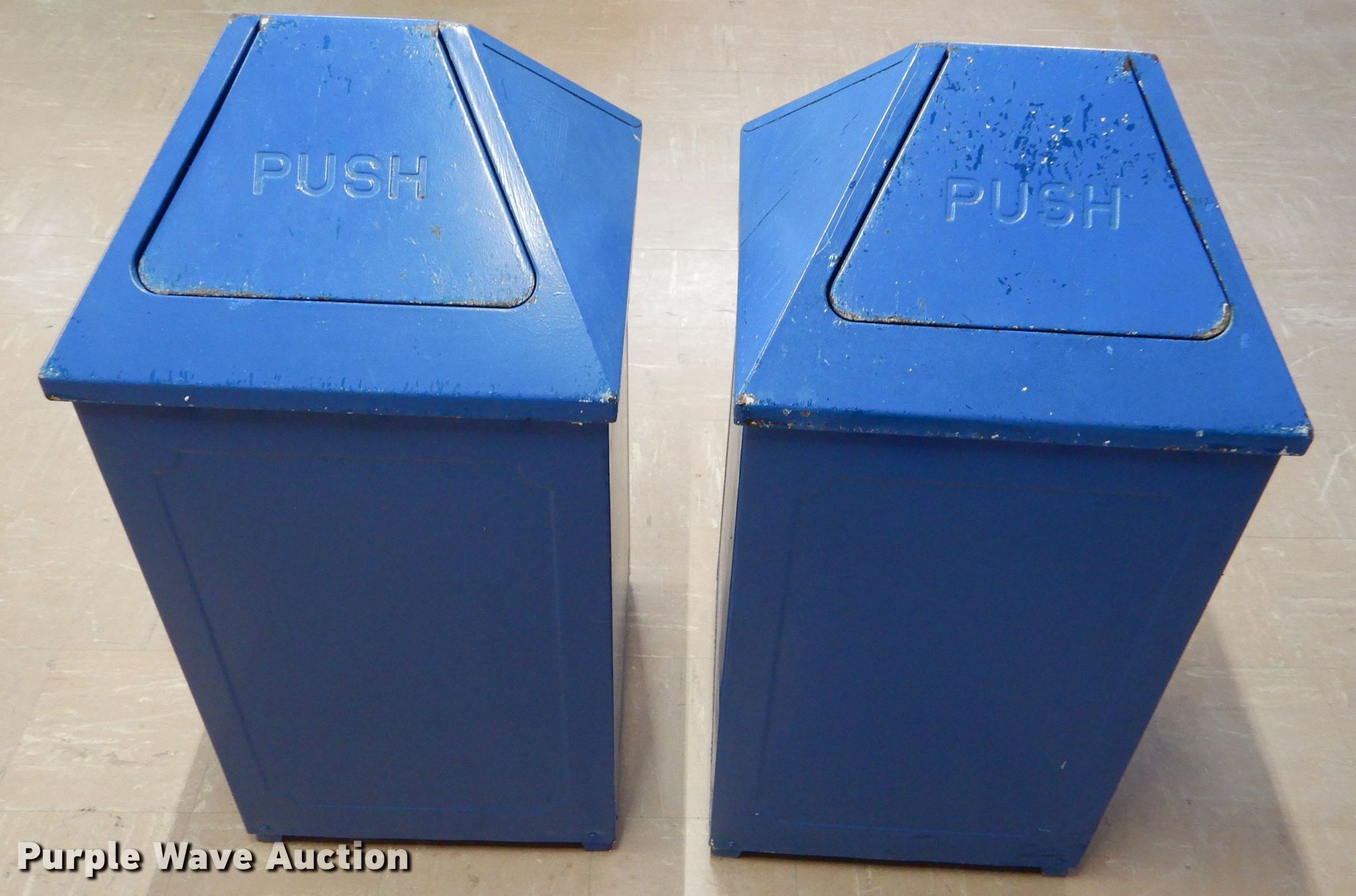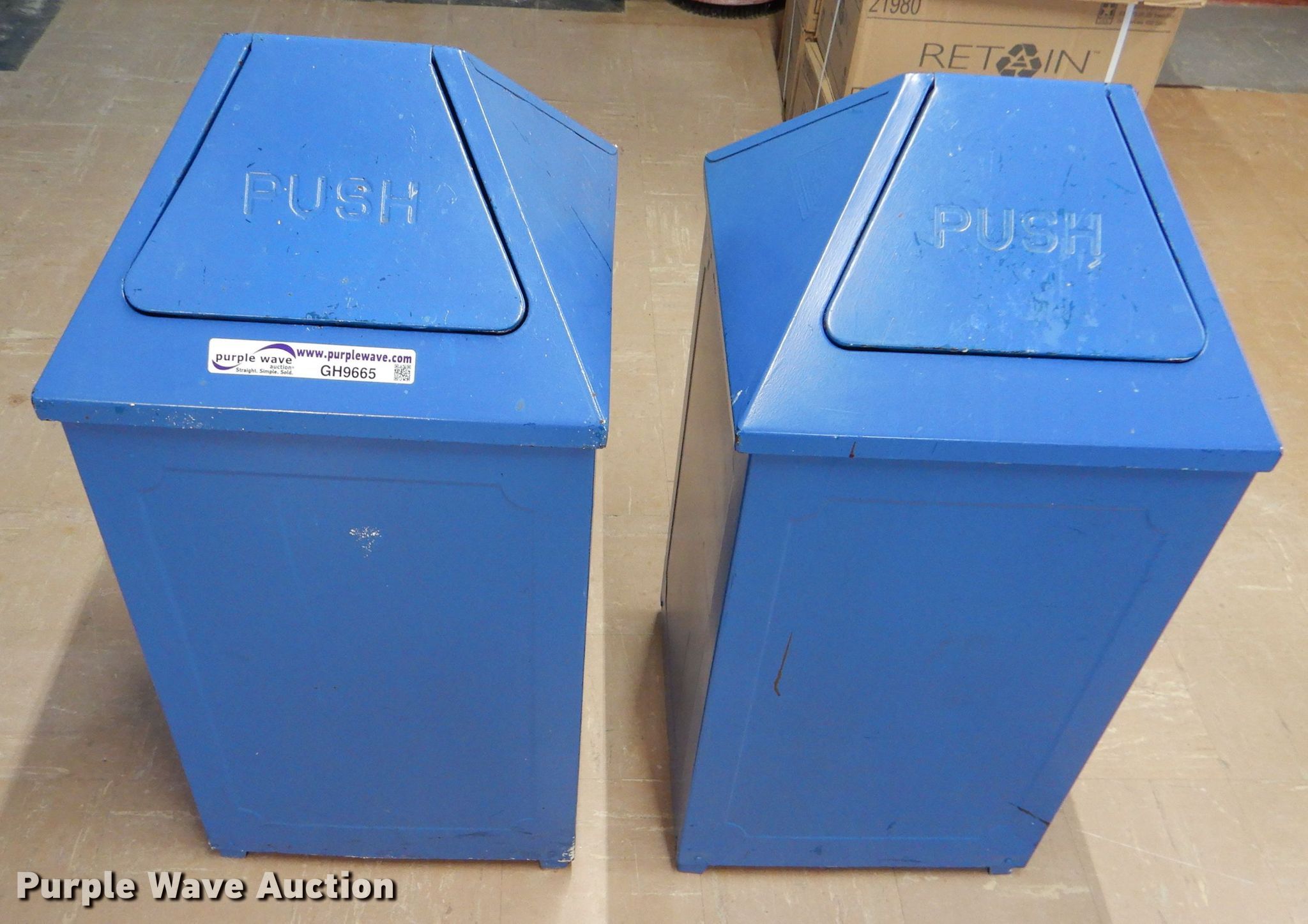 Purple Wave is selling a used Office Supplies and Equip. in Kansas. This item is a (2) metal trash bins with the following: Hinged lids