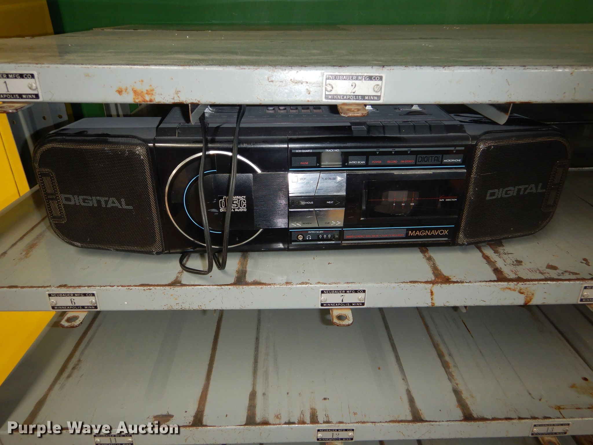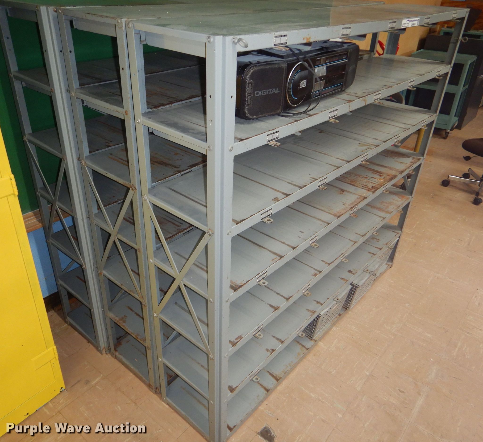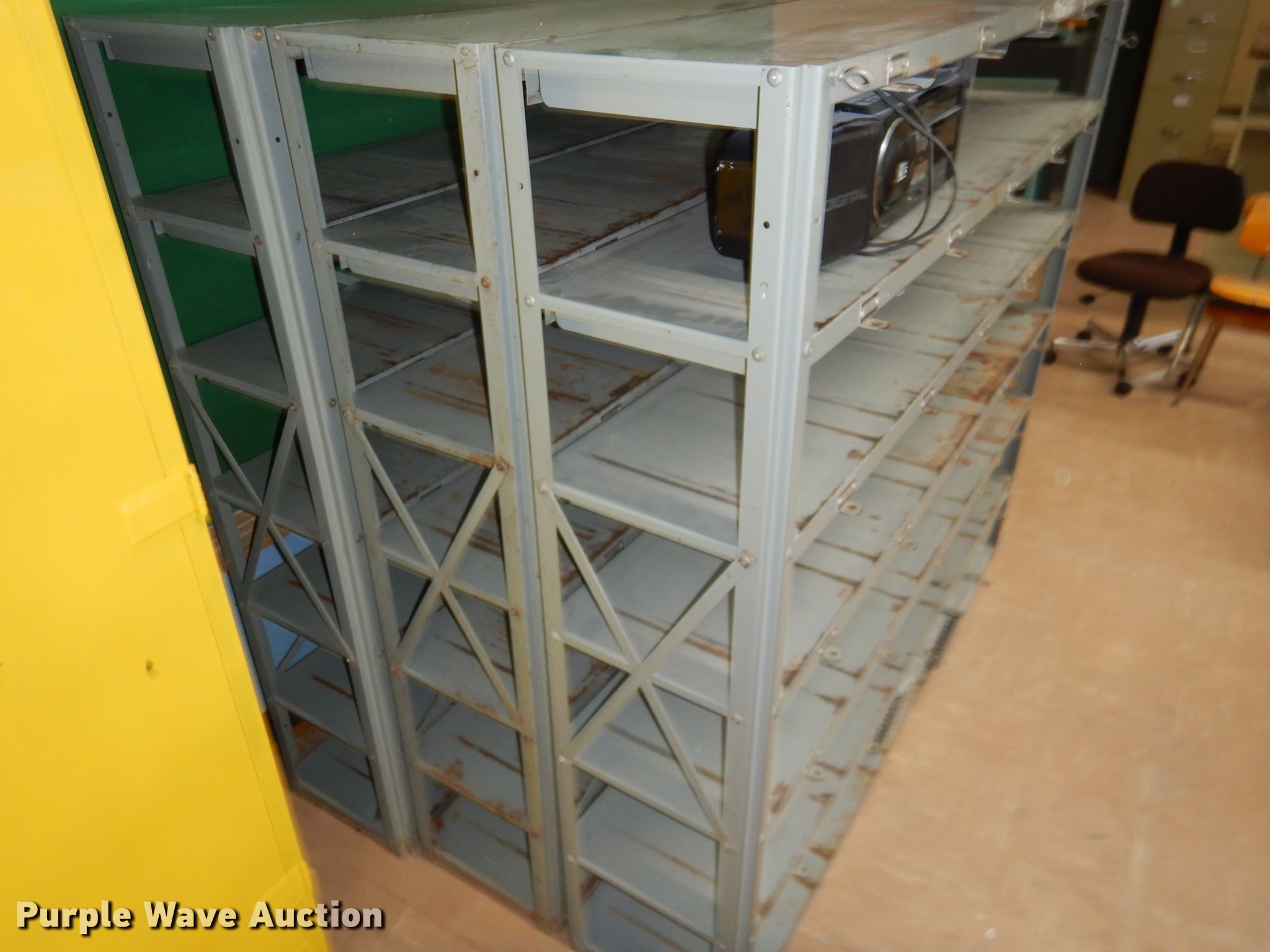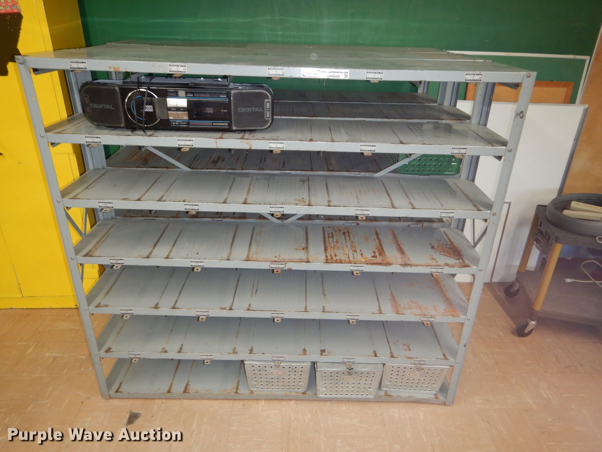 Purple Wave is selling a used Shelving and Storage in Kansas. This item is a (3) metal shelves with the following: 65.5"W x 14"D x 59"H, Boom box included