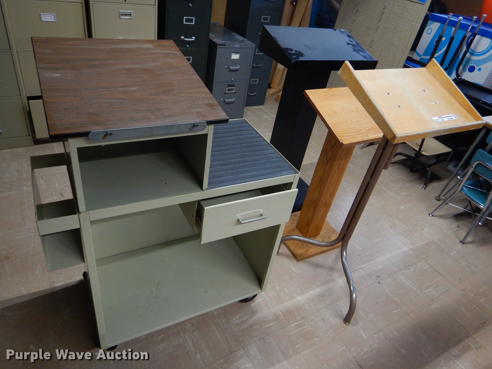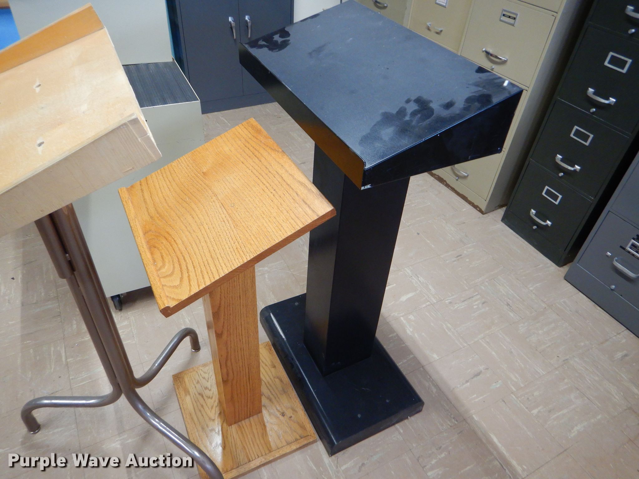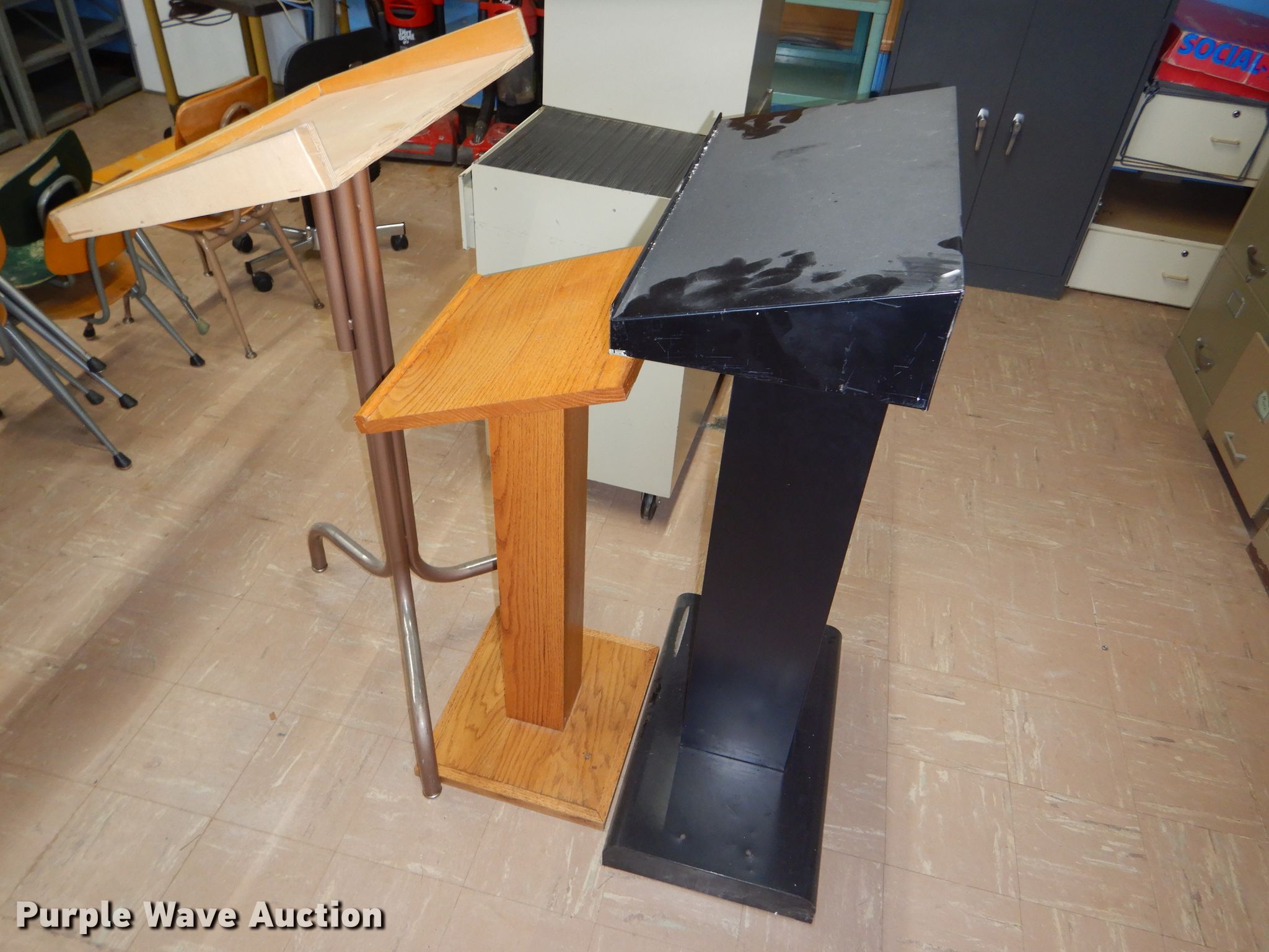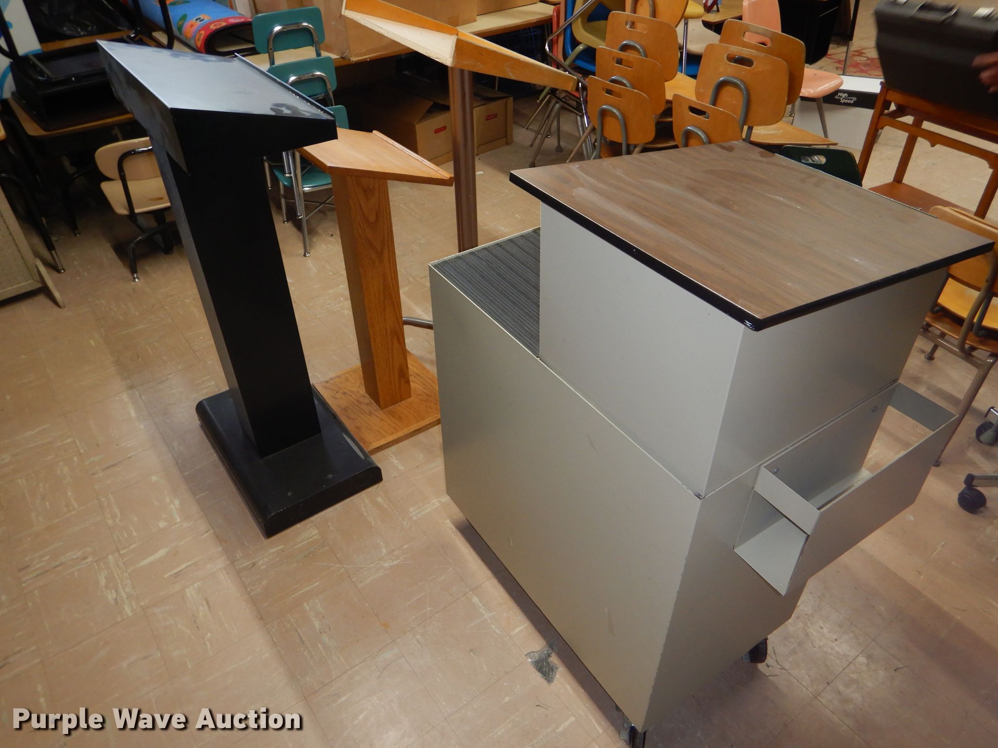 Purple Wave is selling a used Furniture in Kansas. This item is a (4) podiums with the following: (4) podiums. USD 103 Cheylin Elementary. 605 Bird Ave. Bird City, KS 67731