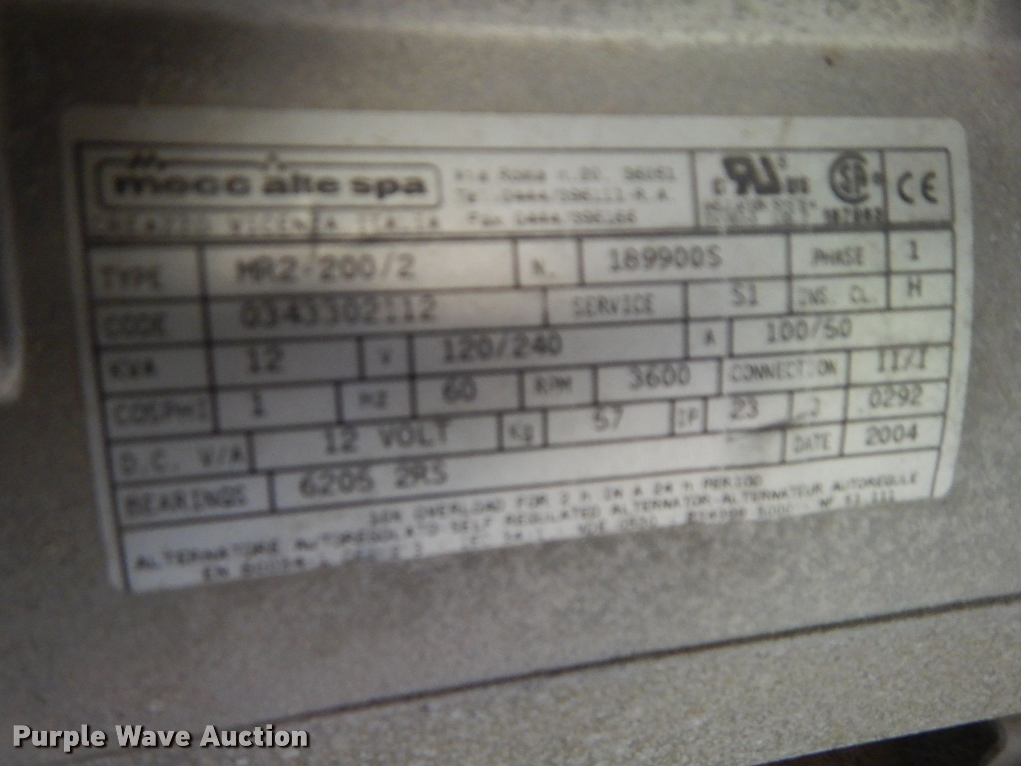 Purple Wave is selling a used Generator Set in Kansas. This item is a Briggs & Stratton 01815 generator with the following: Unknown hours on meter, Briggs & Stratton Vanguard 384445 627cc two cylinder propane engine, Mecc Alte Spa MR2 generator, 12 kVA, Single phase, Skid mounted, Unknown operating condition, Serial 1011093883