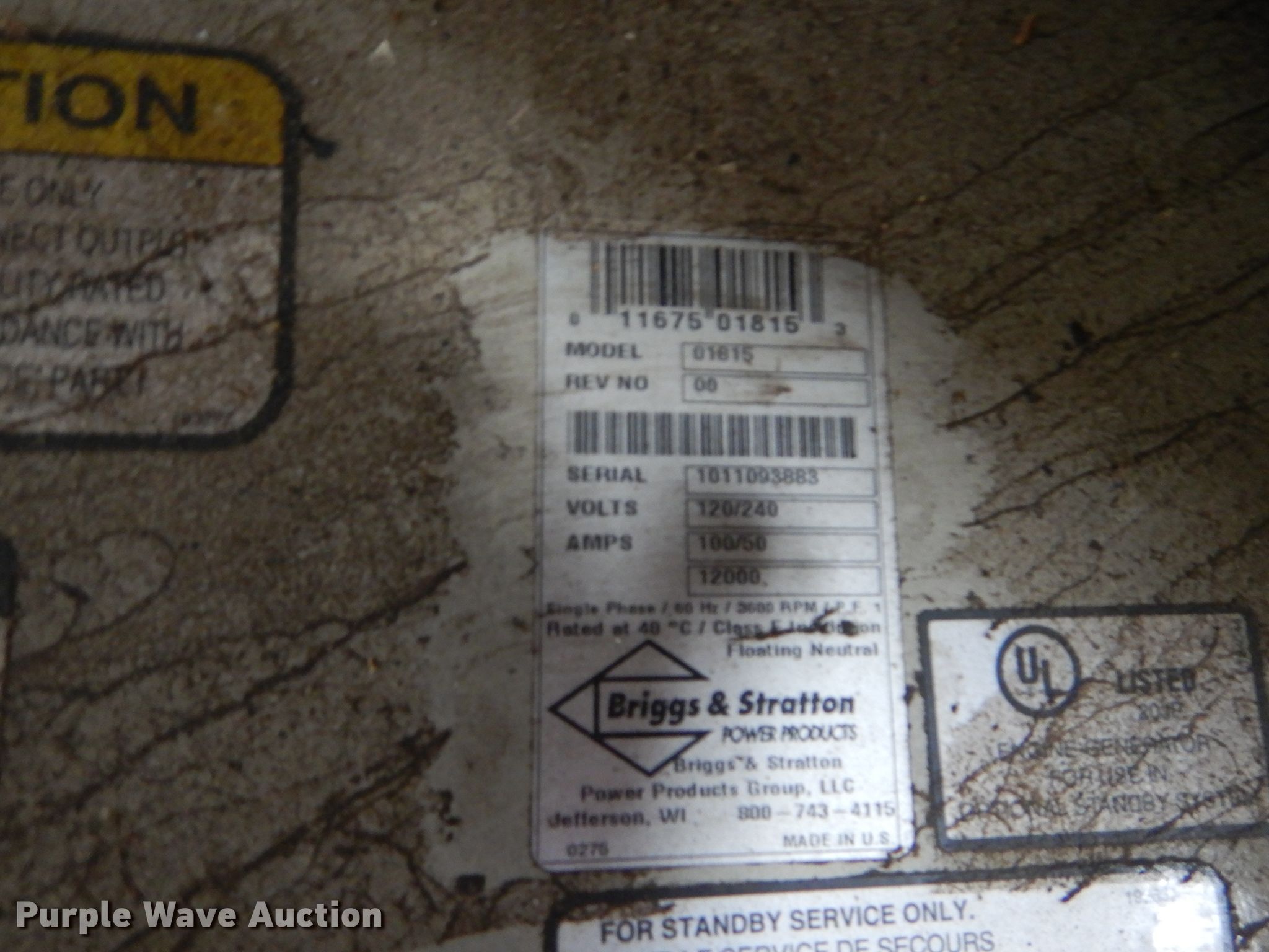 Briggs & Stratton 01815 generator has sold in Lawrence, Kansas for $522.50. Item GJ9811 sold on September 24th, 2019.