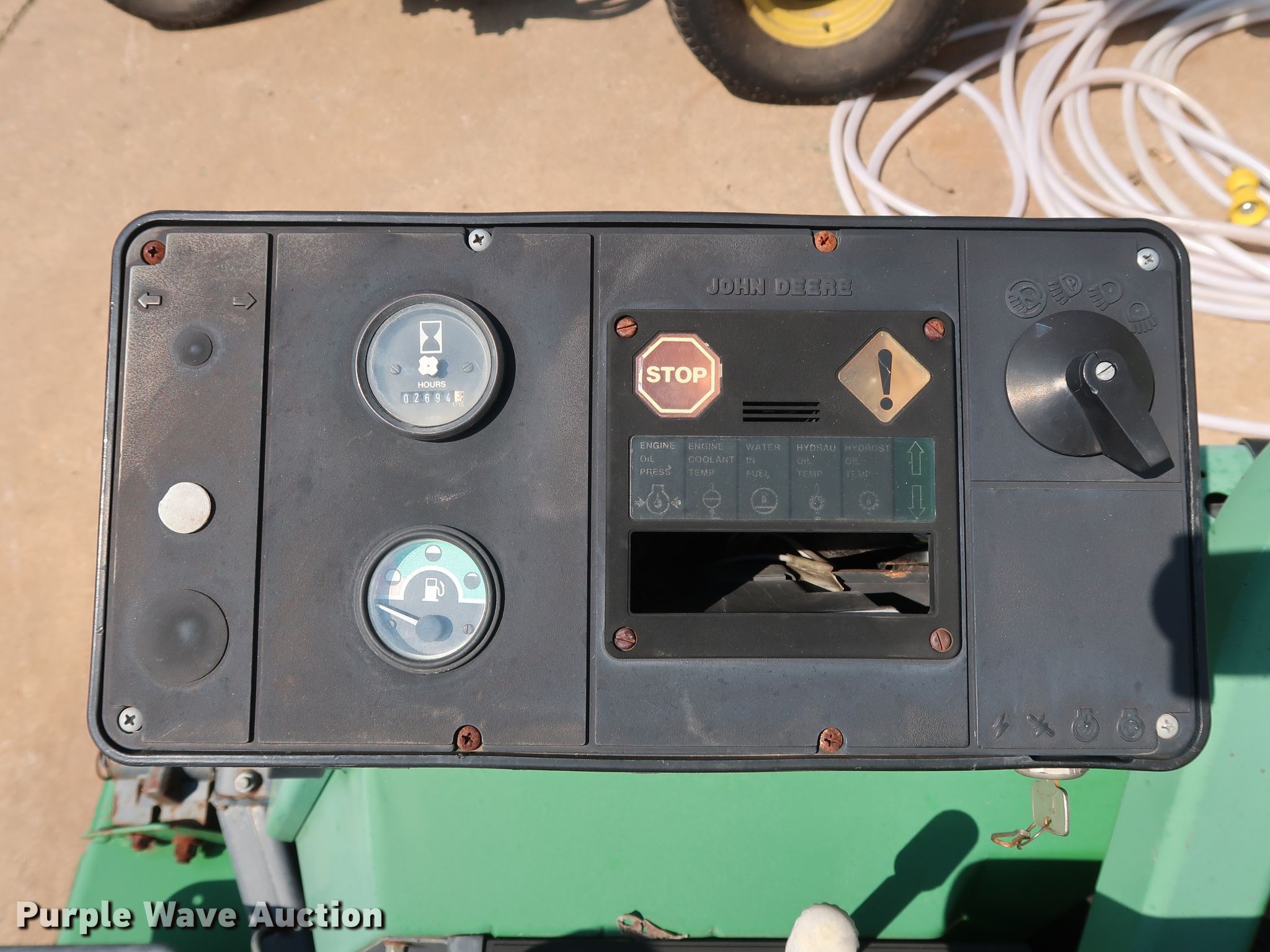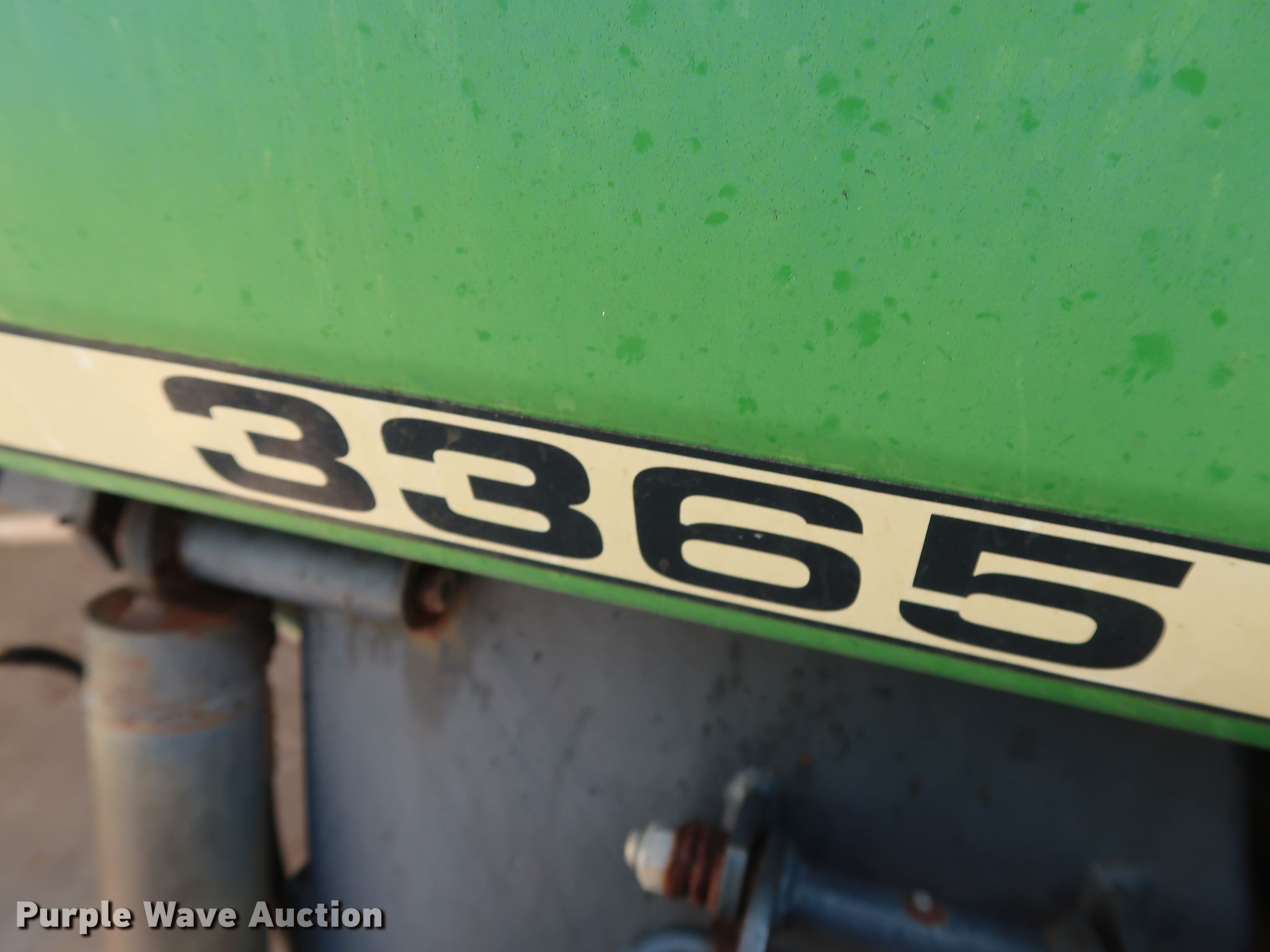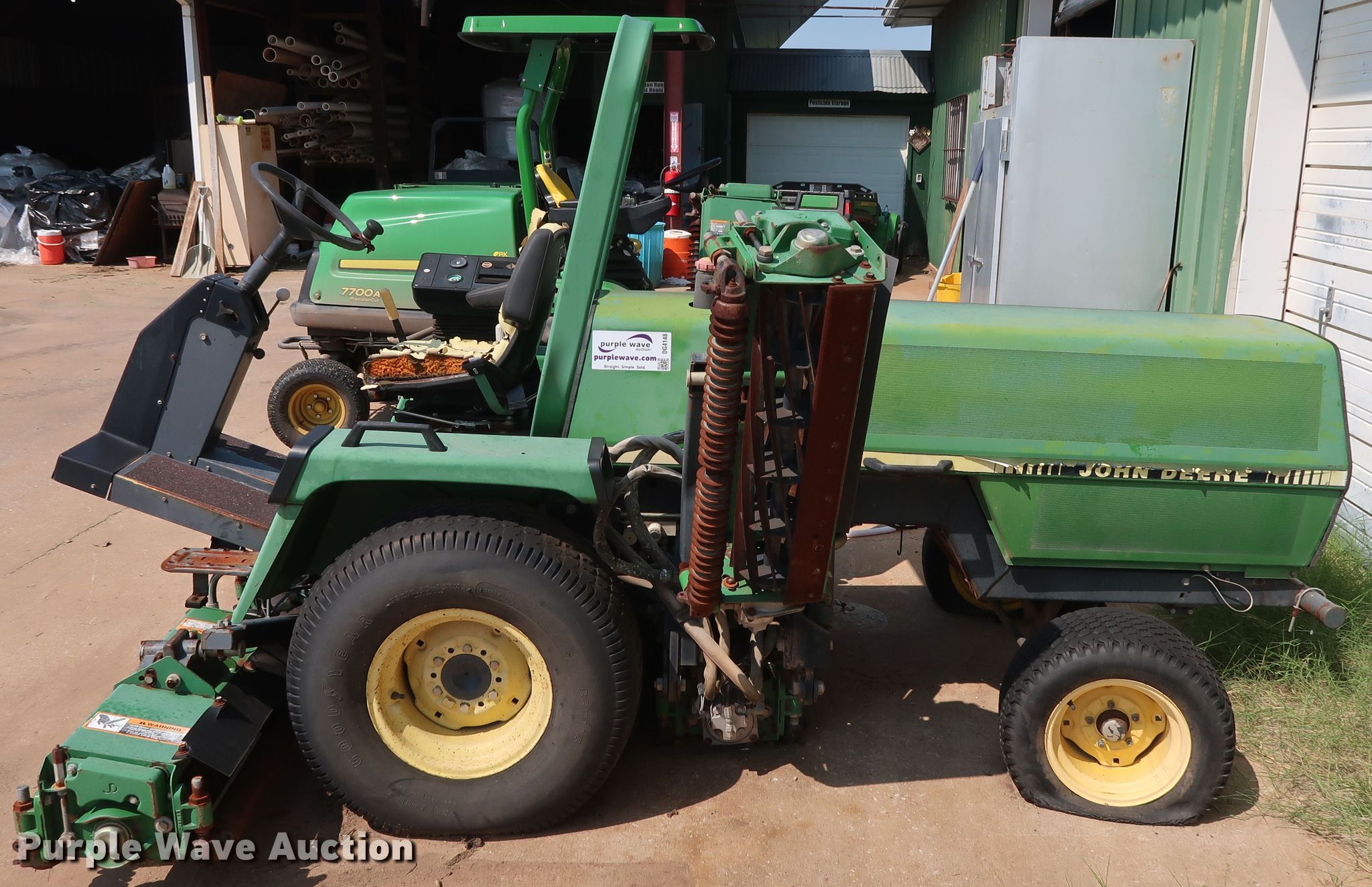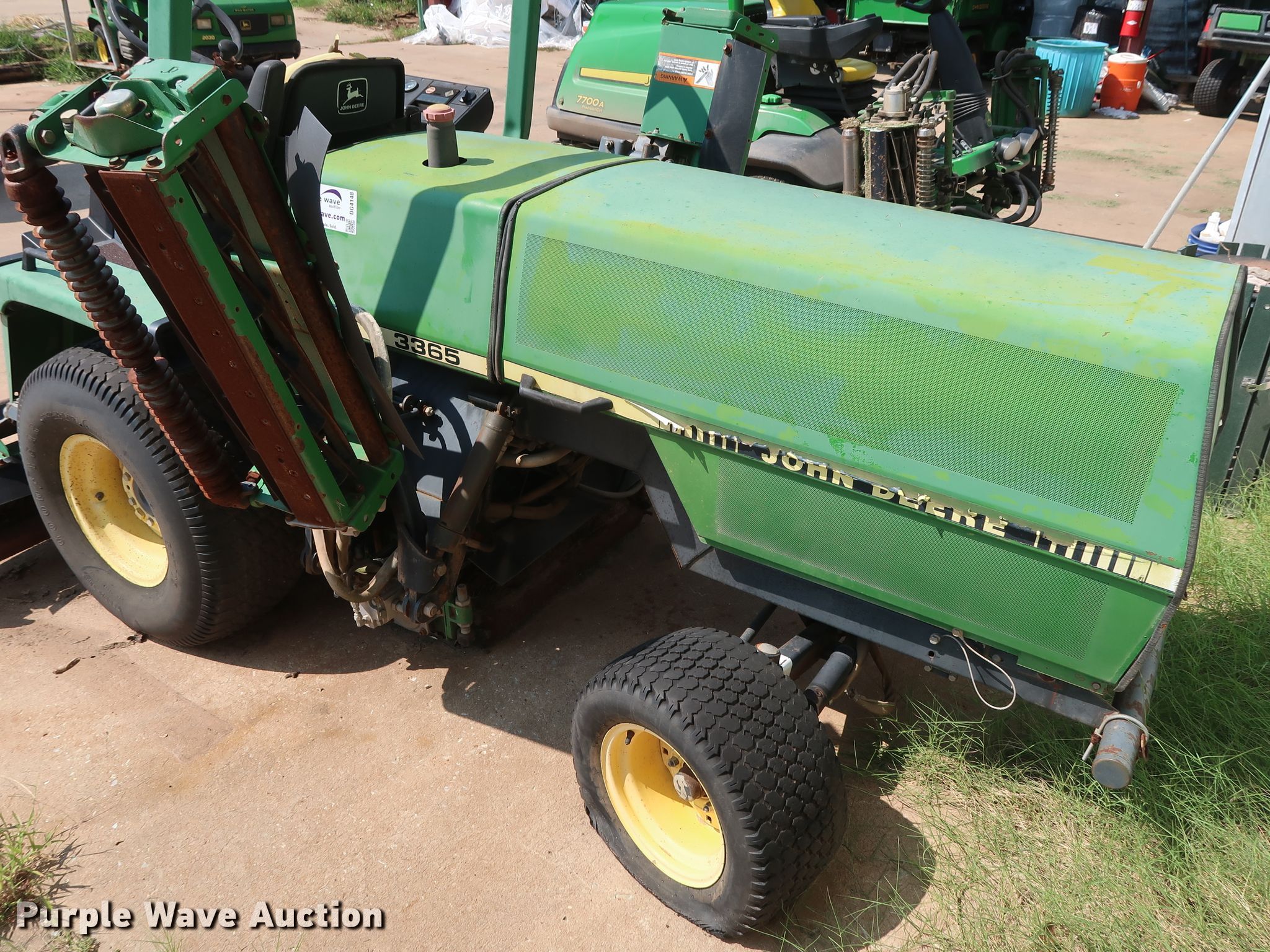 Purple Wave is selling a used Commercial Turf Mower in Oklahoma. This item is a 1998 John Deere 3365 reel mower with the following: 2,694 hours on meter, 11.5' overall cutting width, John Deere 4TN82-RJE four cylinder diesel engine, Serial CH4045D007950, Hydrostatic transmission, (5) 30"W cutting reels, 33 x 12.50-15 NHS front tires, 23 x 10.50-12 NHS rear tires, Serial M03365X956190