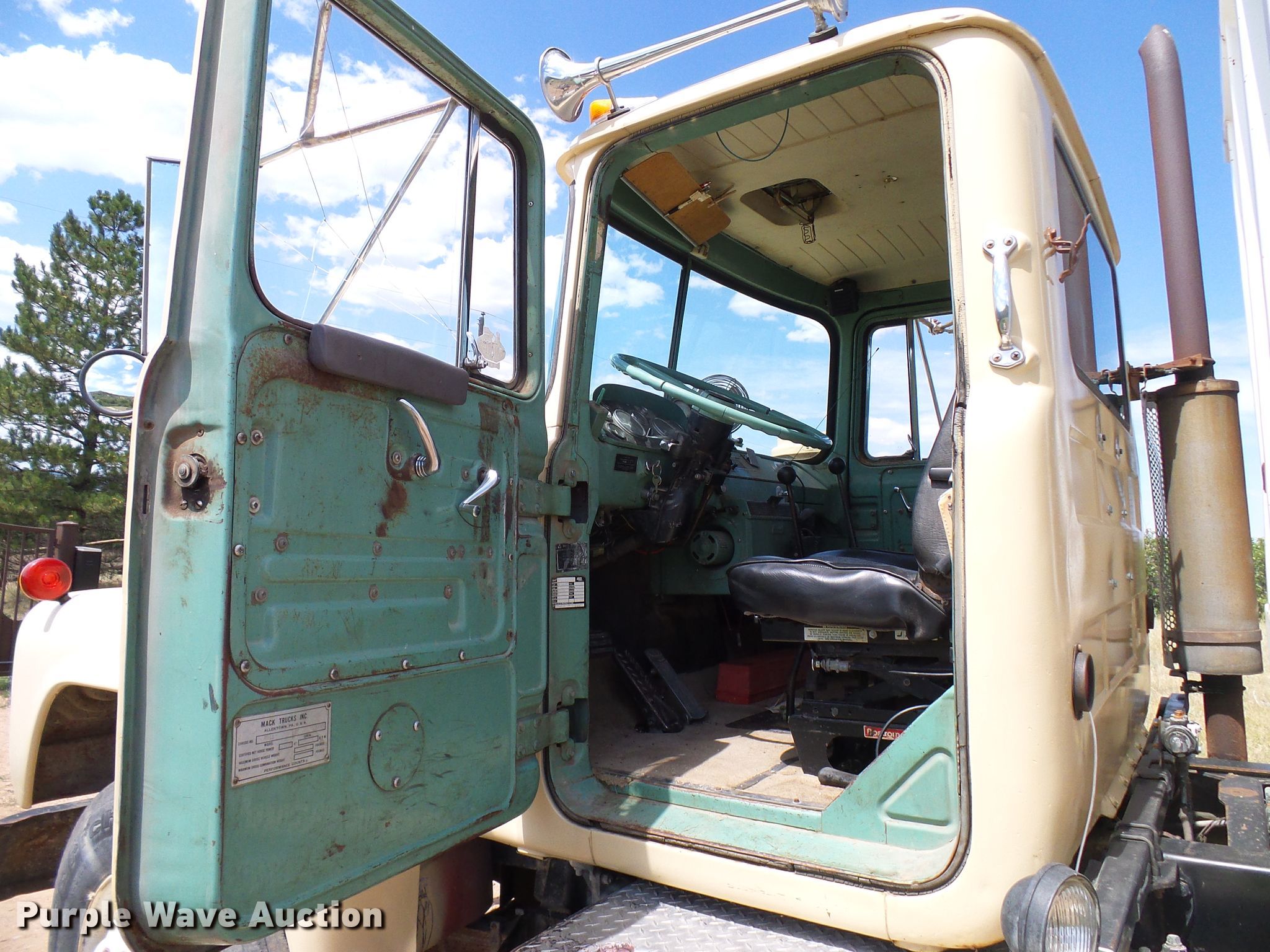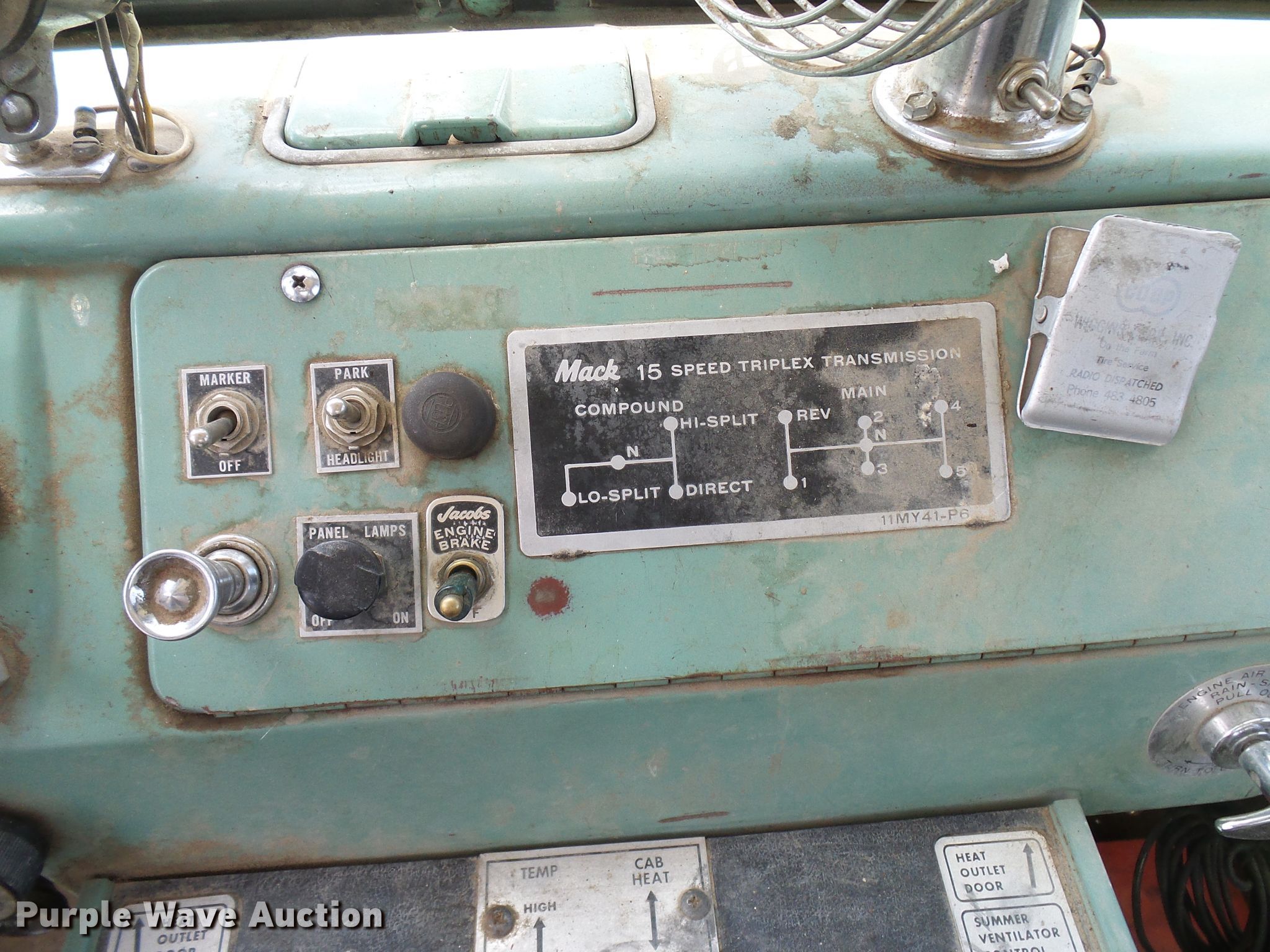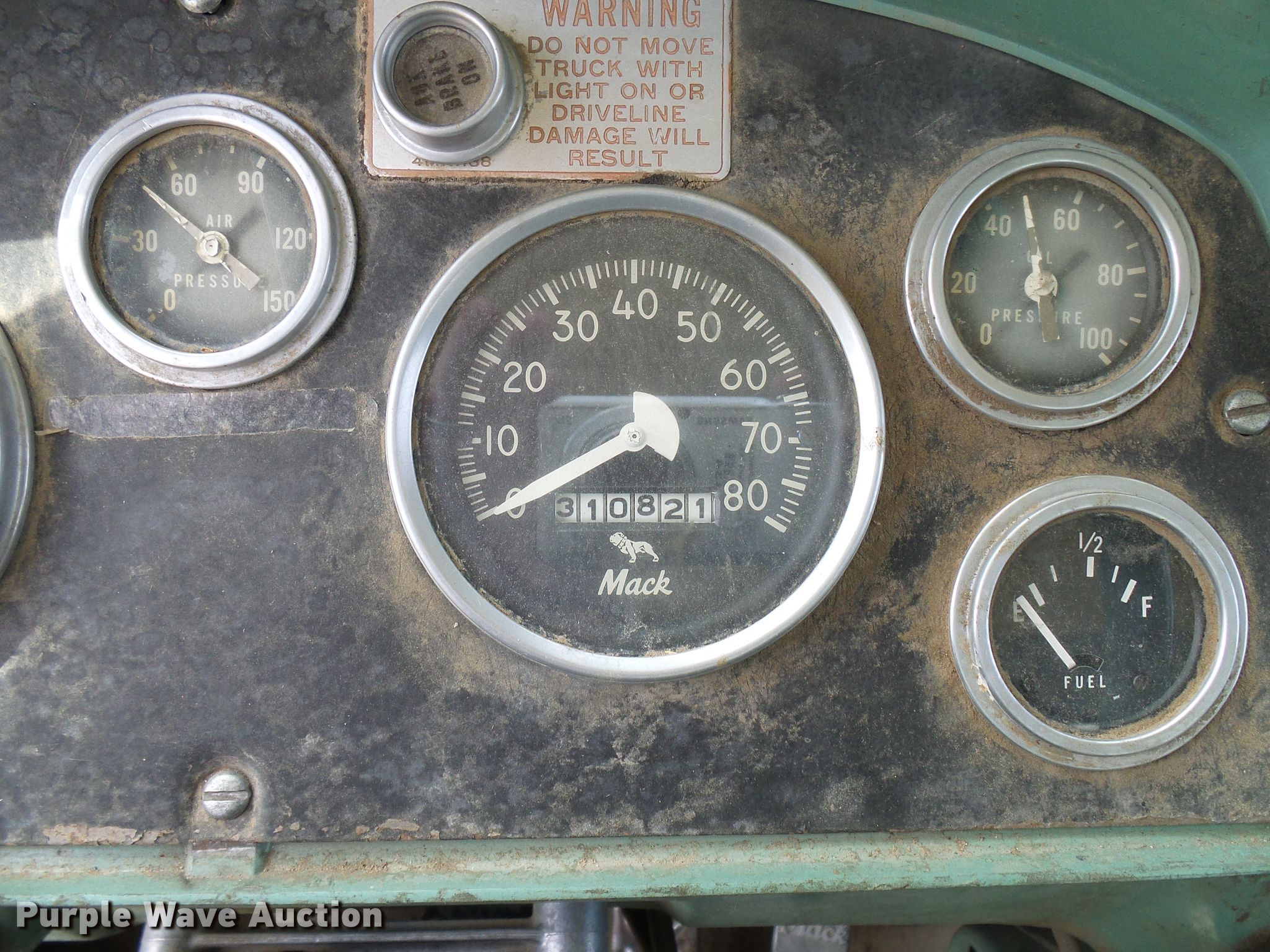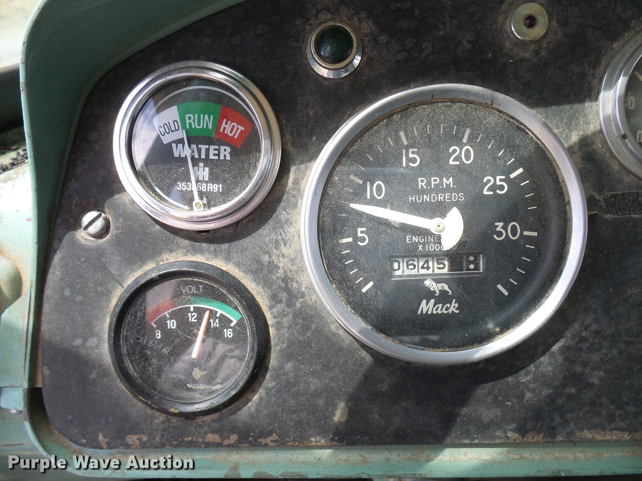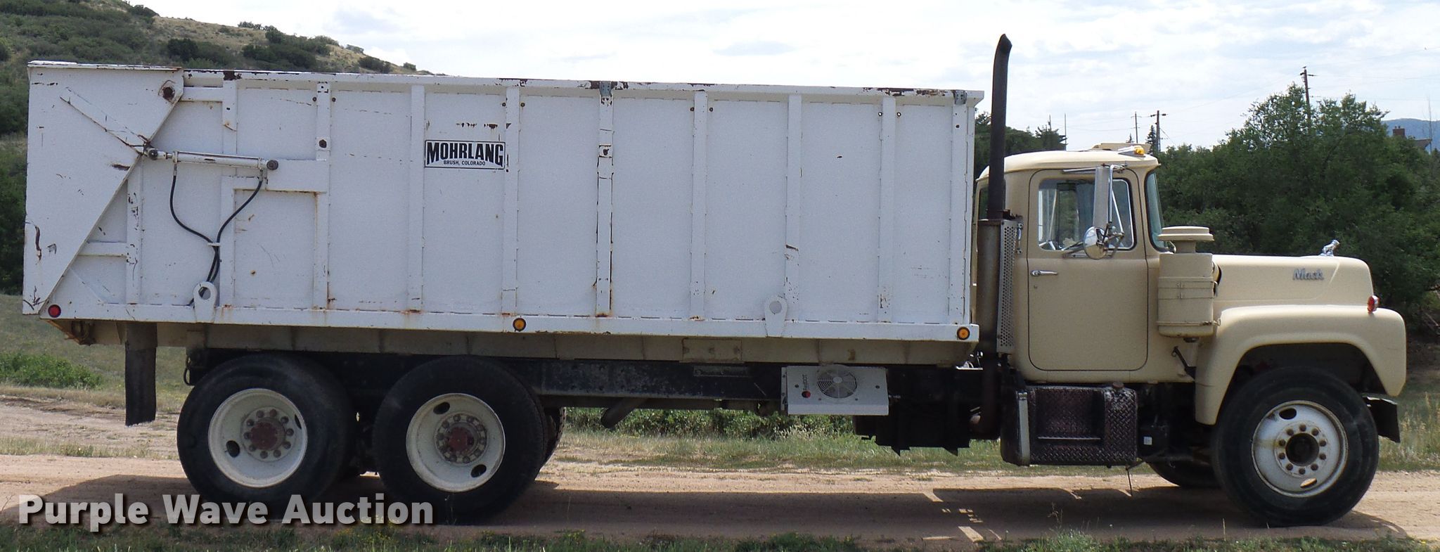 Purple Wave is selling a used Grain Truck in Colorado. This item is a 1966 Mack R611 grain truck with the following: 310,821 miles on odometer, 645 hours on meter, Mack six cylinder diesel engine, Mack Triplex 15 speed manual transmission, Single axle, AC and heat, Mohrlang 20SLIP steel grain bed, 20'L, 64" side height, 16" side board height, Dual ram hoist, Hydraulic end gate, Spring suspension, Air brakes, Engine brake, 245" wheelbase, 11R24.5 tires, Drivers door glass cracked, Unknown operating condition of AC