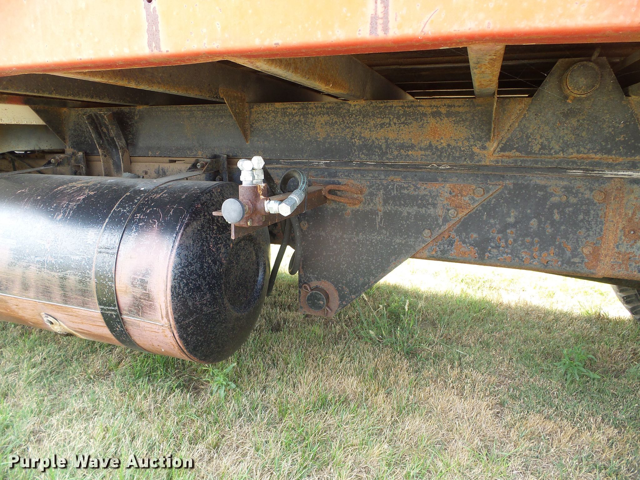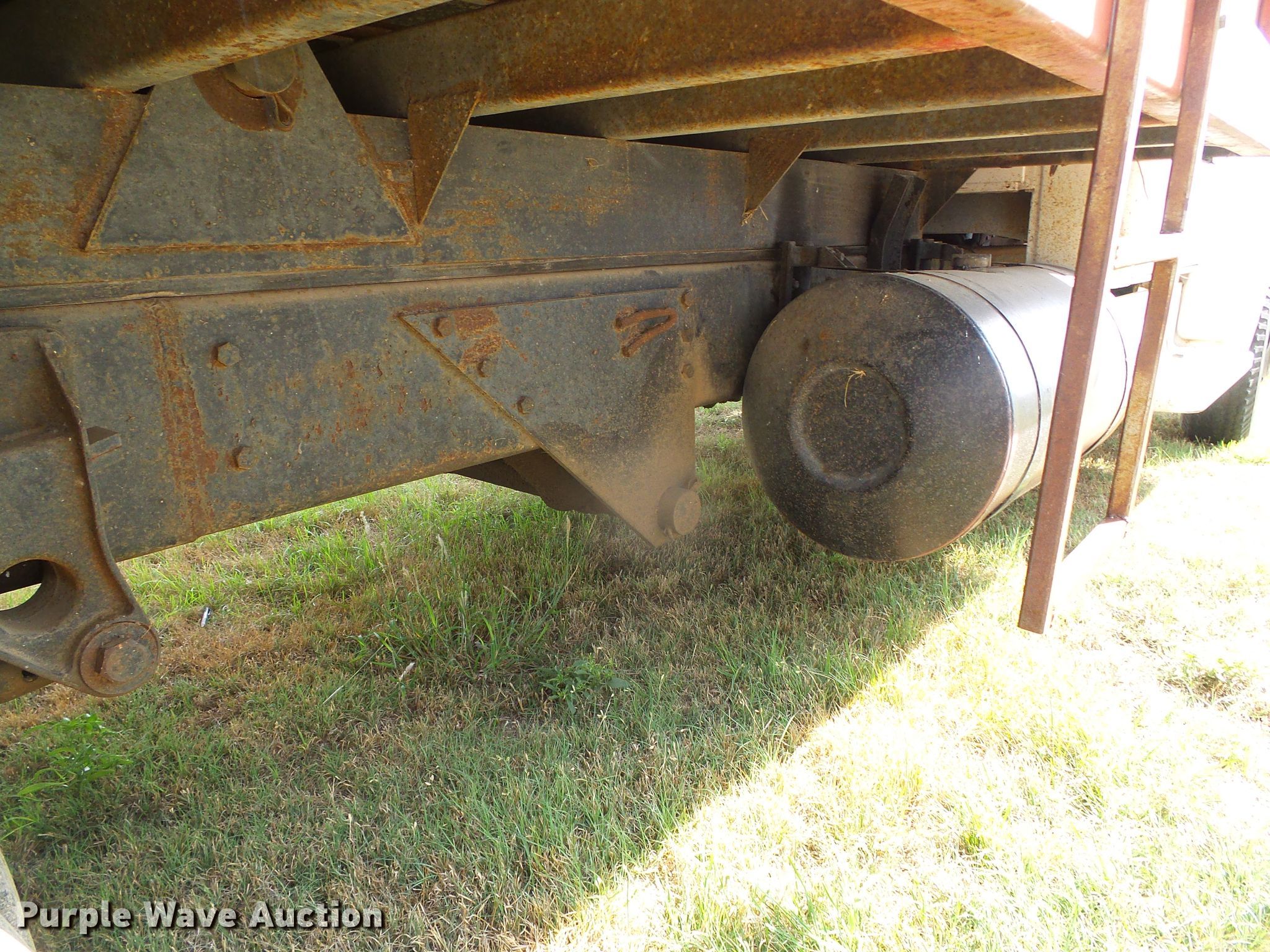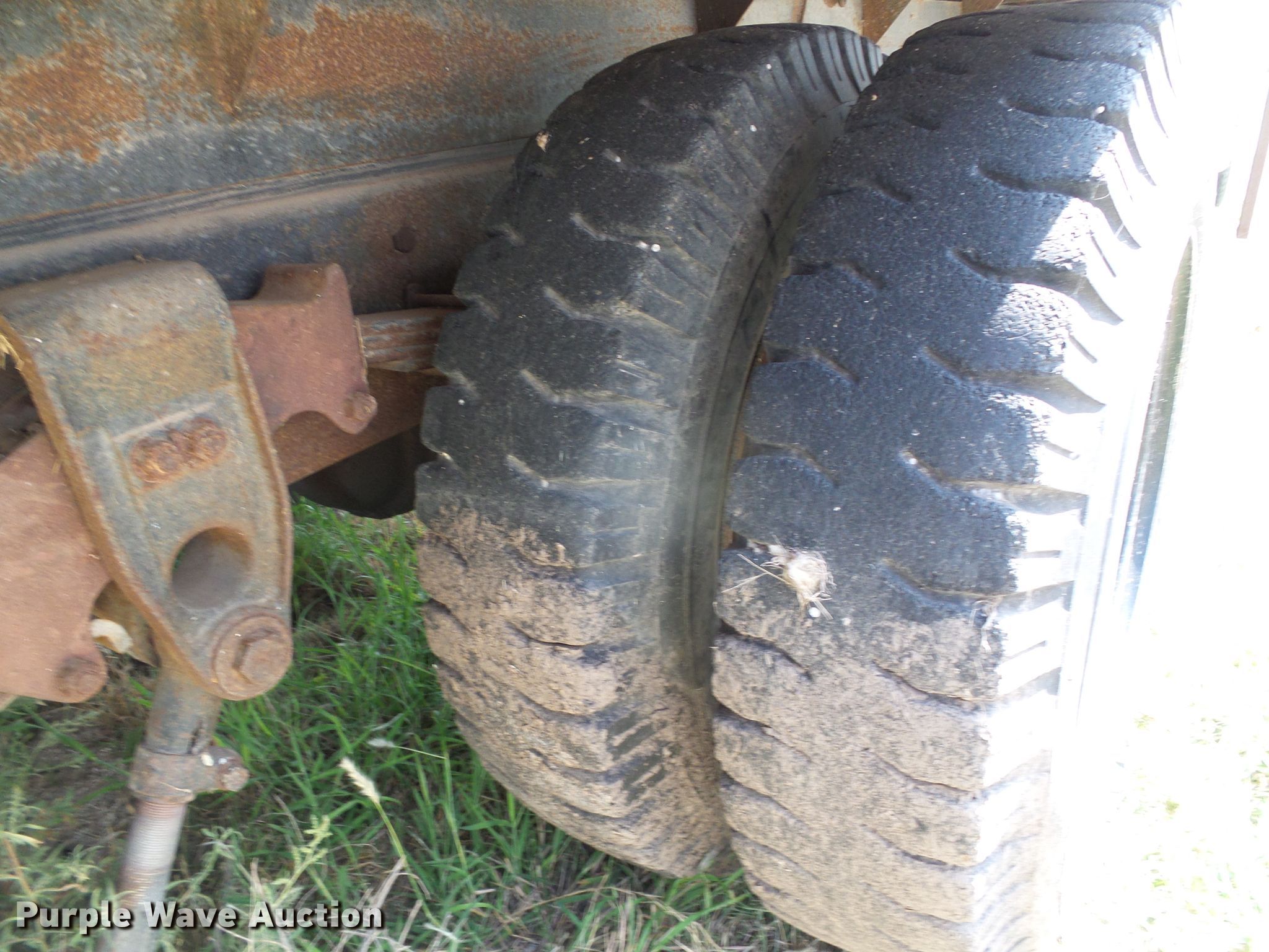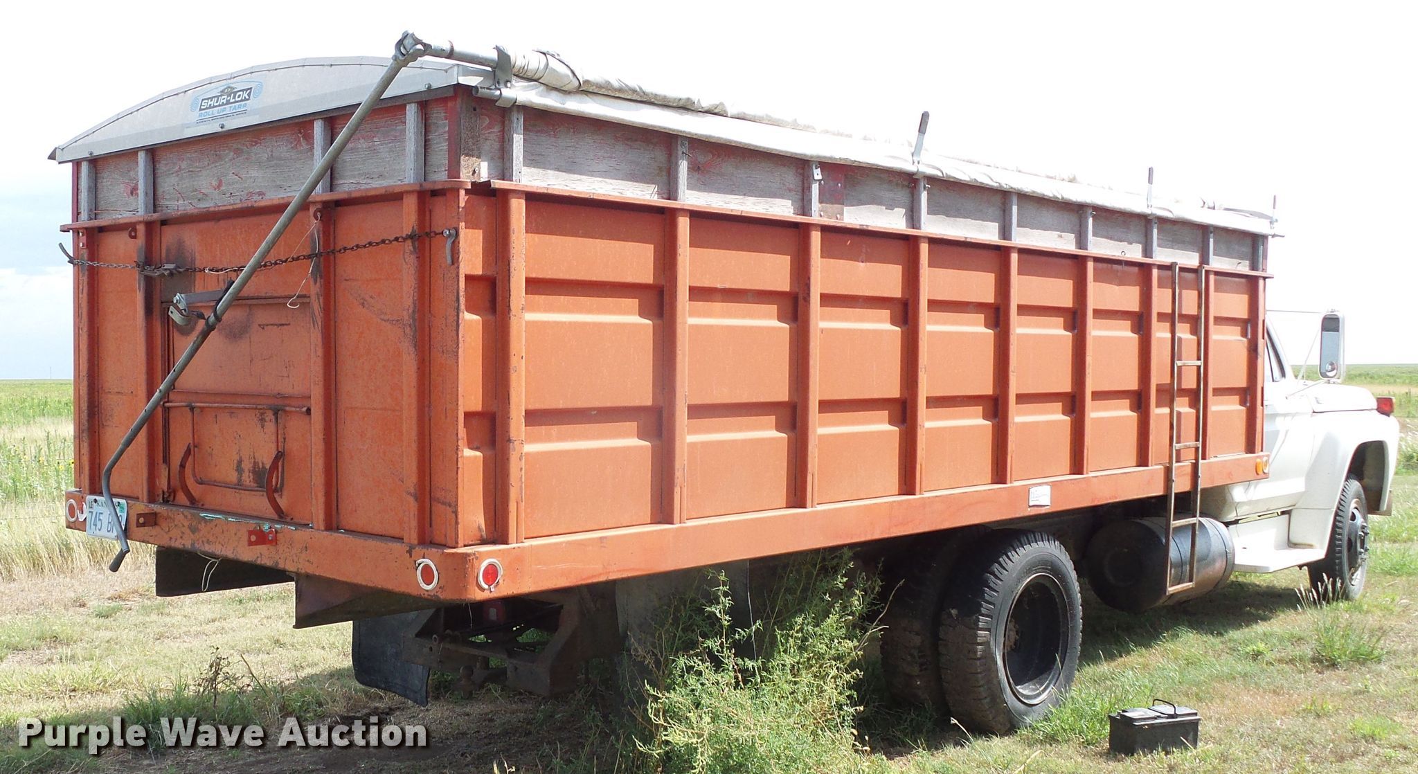 Purple Wave is selling a used Grain Truck in Kansas. This item is a 1973 Ford F600 grain truck with the following: 49,304 miles on odometer, Ford eight cylinder gas engine, Five speed manual transmission, Single axle, PTO, King grain bed, 20'L x 93"W, 40" side height, 12" side board height, Roll tarp, Dual ram hoist, Spring suspension, Hydraulic brakes, 8.25-20 front tires, 9.00-20 rear tires, GVWR 19,200 lbs, Non-operational unit, Rear axle removed, included