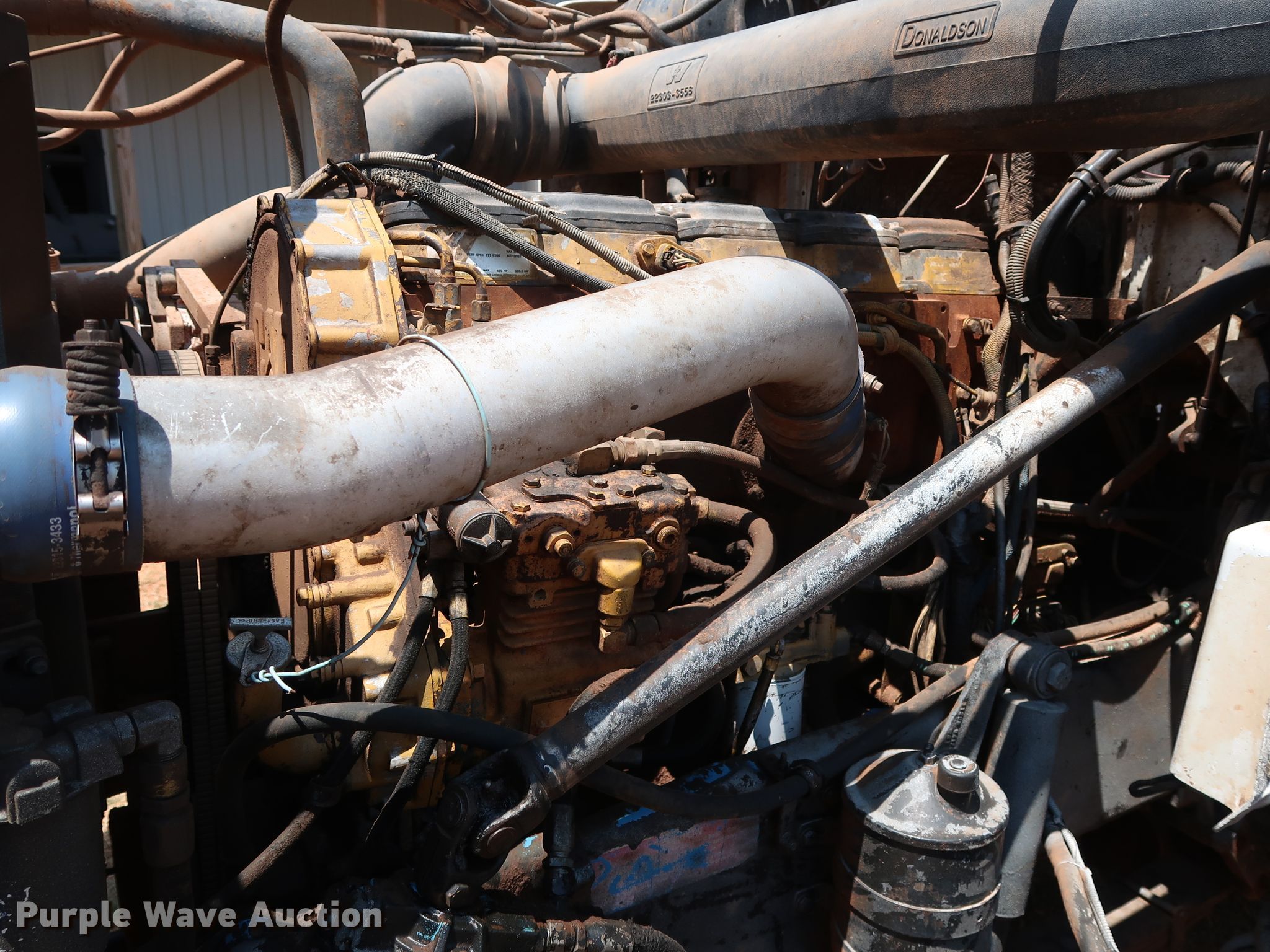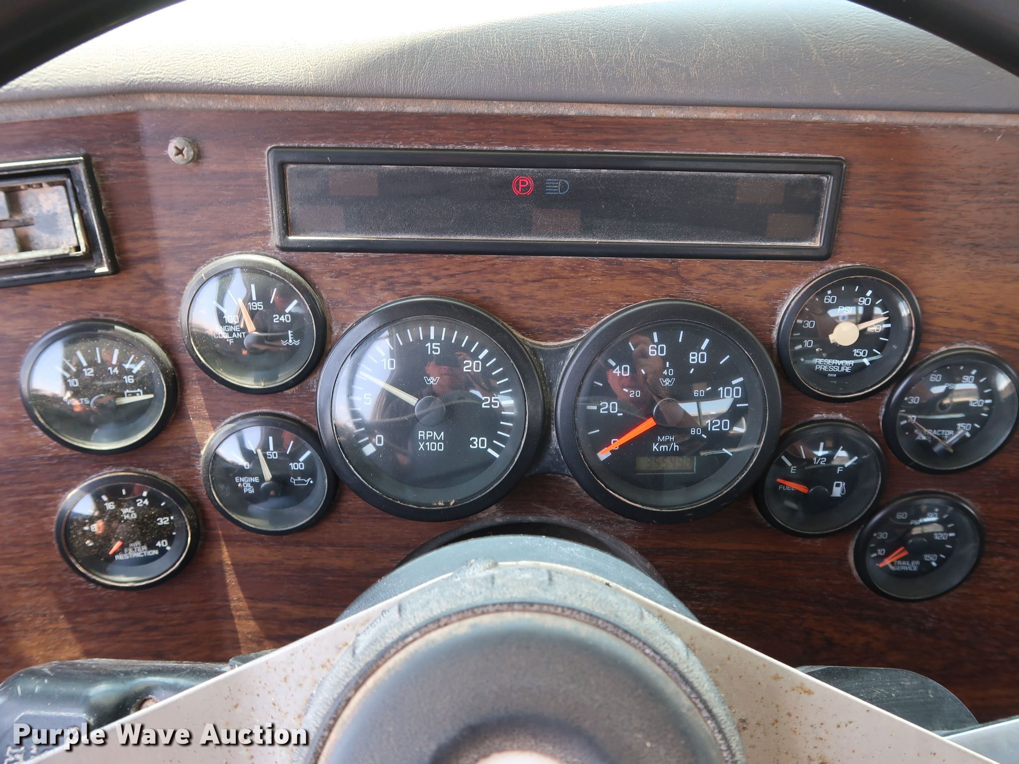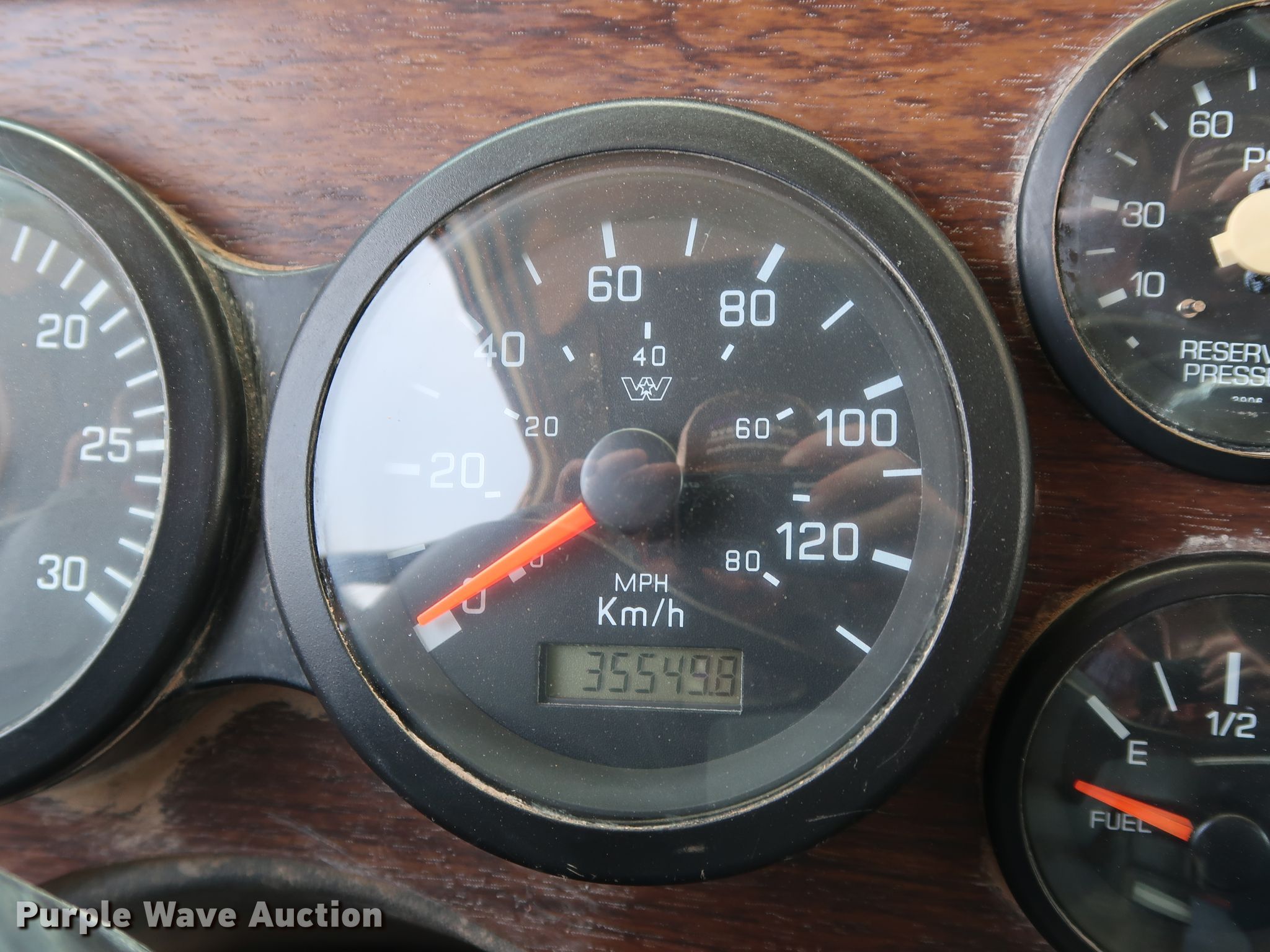 Purple Wave is selling a used Oilfield Truck in Oklahoma. This item is a 2001 Western Star 4964SX spreader truck with the following: 35,550 miles on odometer, Caterpillar C15 15.2L L6 diesel engine, 490 HP, Serial 6NZ14937, Eaton Fuller RTO16908LL 10 speed manual transmission, Spread tandem axle, Differential lock, AC and heat, Heated mirrors, Air ride cab, PTO, Wet kit, Khun Knight 8032 ProTwin Slinger spreader bed, 16'L, 40"W adjustable side discharge, In-cab controls, Dual fuel tanks, Air suspension, Air brakes, Engine brake, 11R22.5 front tires, 11R24.5 rear tires, GVWR 60,600 lbs