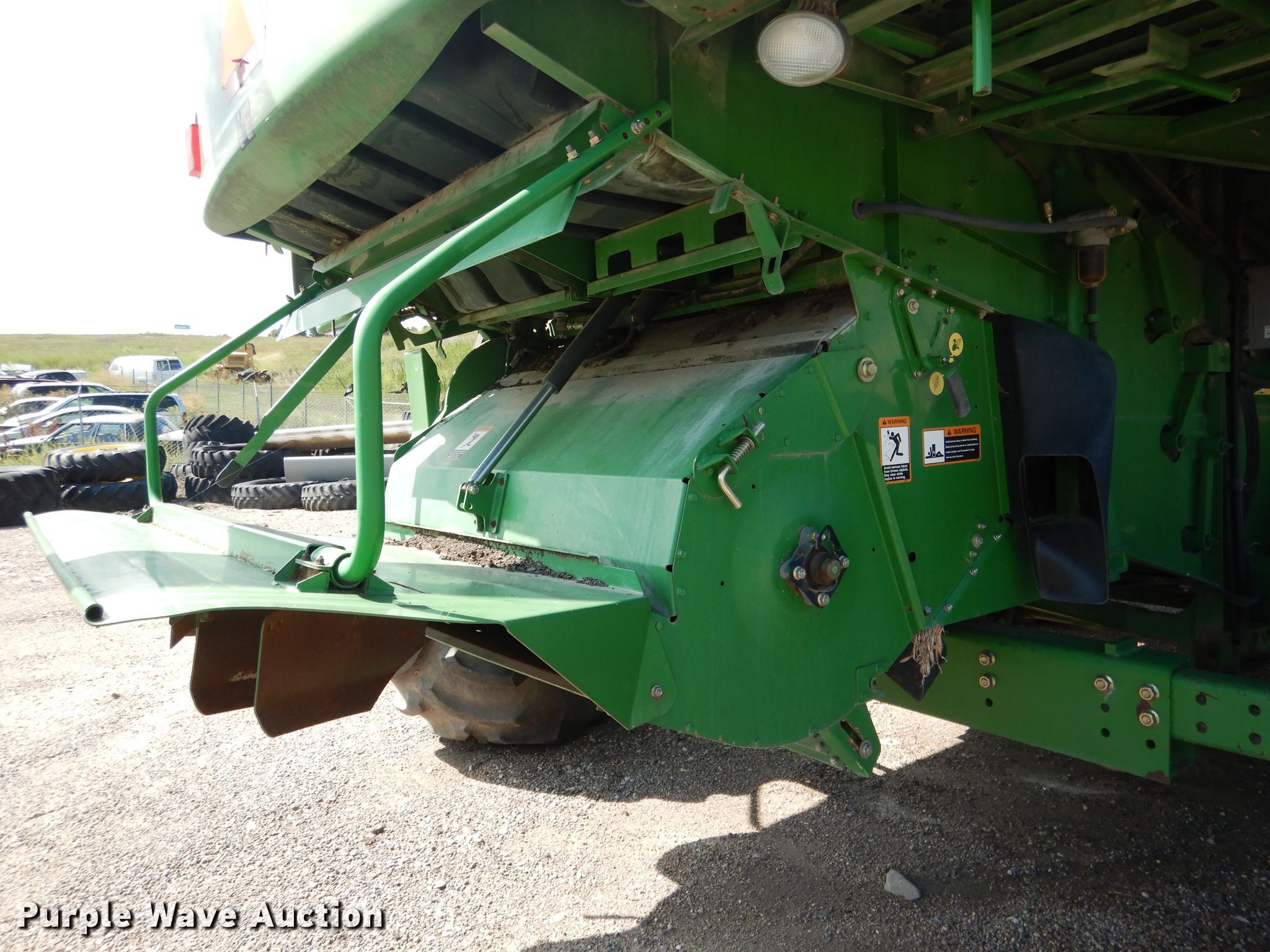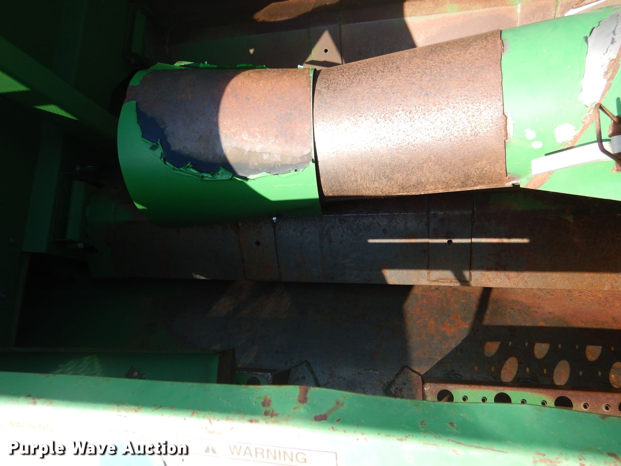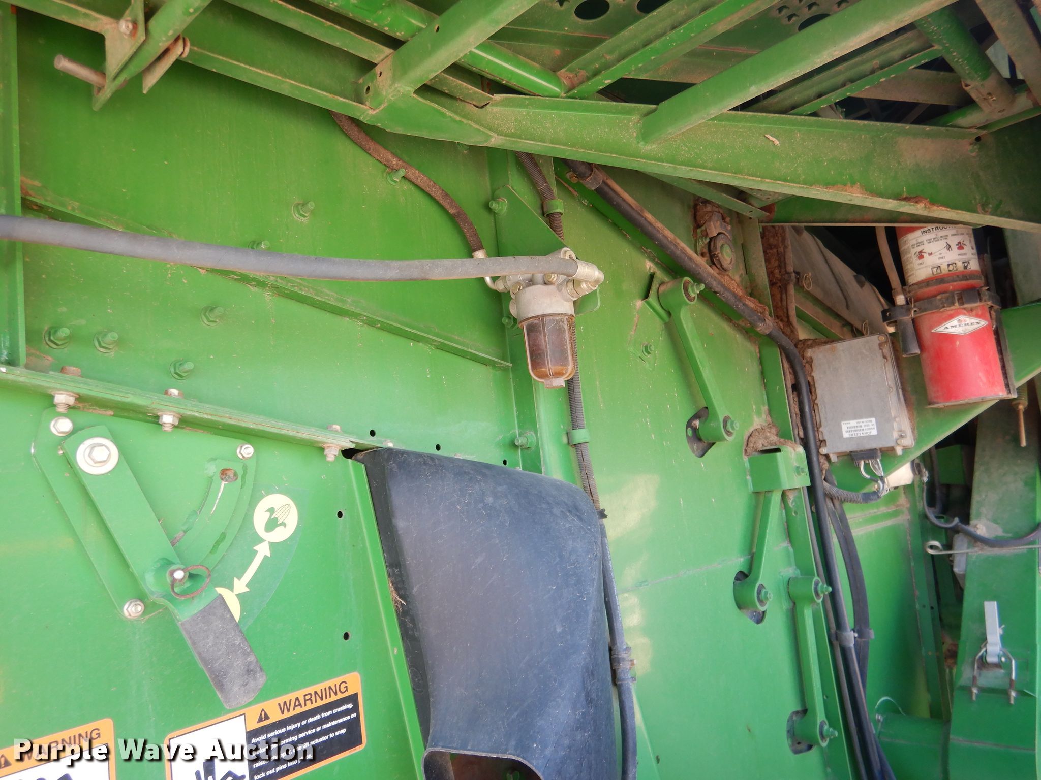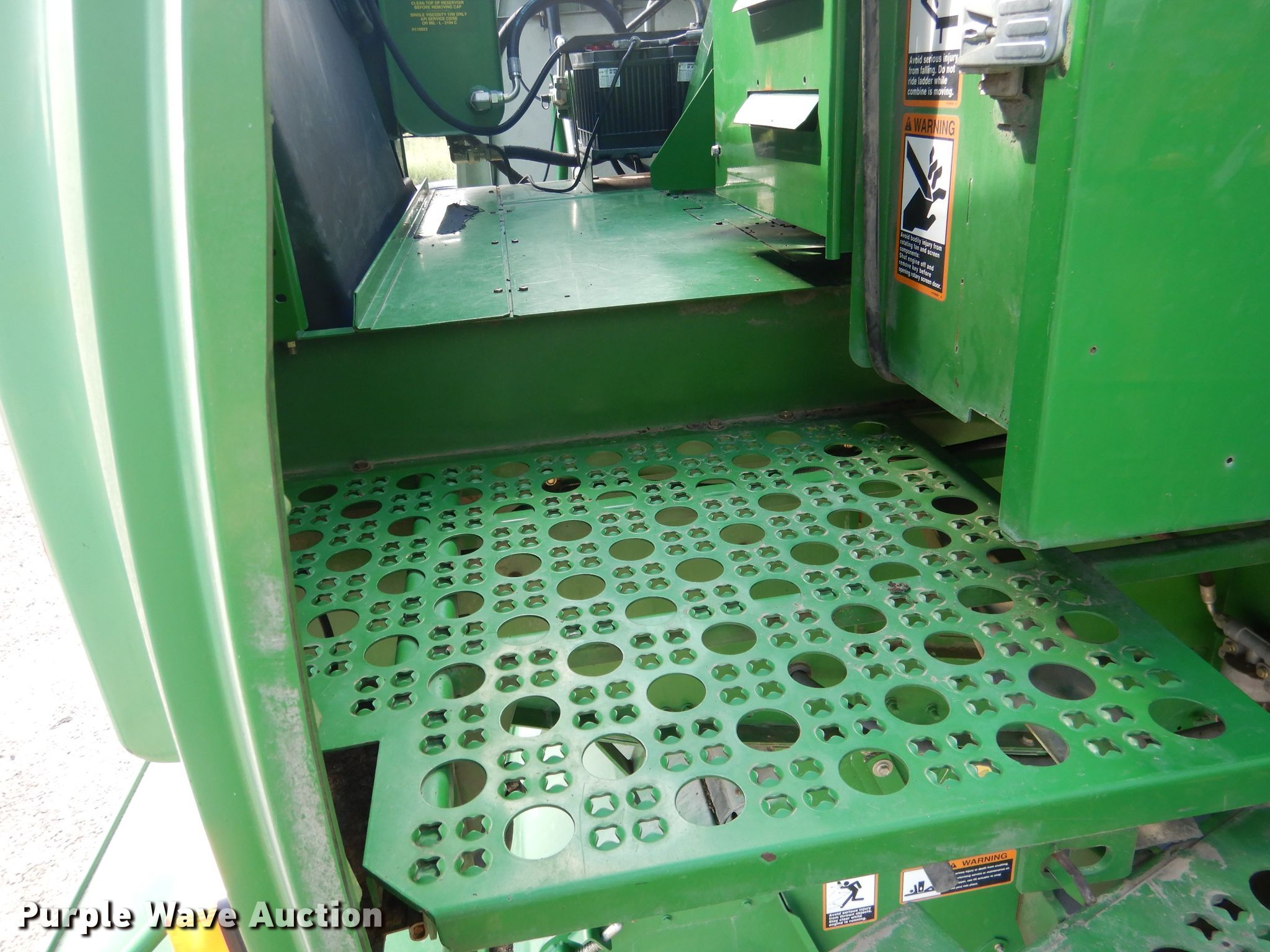 Purple Wave is selling a used Combine in Nebraska. This item is a 2005 John Deere 9860 STS combine with the following: 2,614 engine hours on meter, 1,768 separator hours on meter, 12.5L six cylinder diesel engine, Hydrostatic transmission, 3F-1R gears, Feederhouse, Lateral tilt, Variable speed, Multi-speed, Reverser, Single point header coupler, AC and heat, Small wire concaves, Chaff spreader, Straw chopper, Bin extensions, 22.5'L unloading auger, Goodyear 20.8R42 dual front tires, Goodyear 28L-26 rear tires, Operator manual, Tools not included, Service records available upon request, Serial H09860S7107