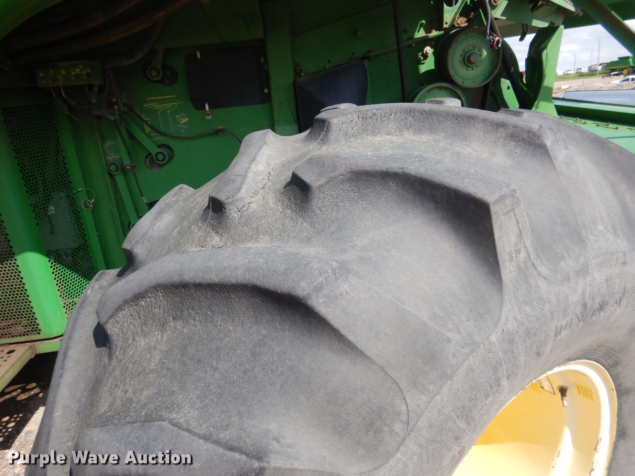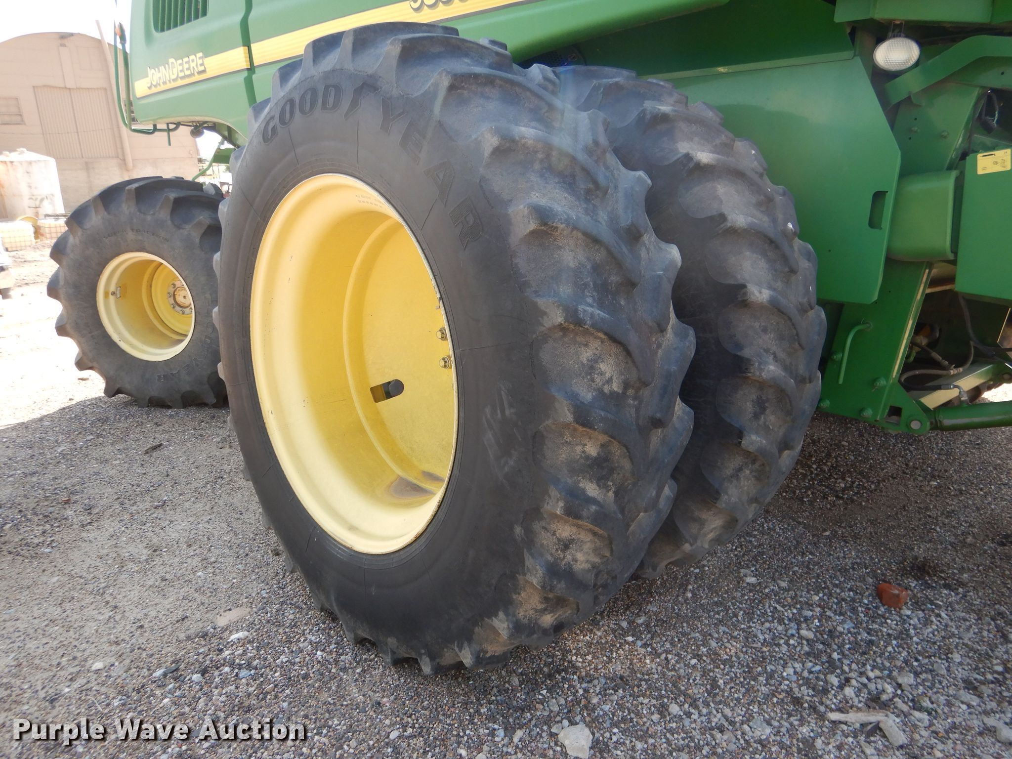 2005 John Deere 9860 STS combine. 2,614 engine hours on meter, 1,768 separator hours on meter, 12.5L six cylinder diesel engine, Hydrostatic transmission 3F-1R gears, Feederhouse Lateral tilt, Variable speed, Multi-speed, Reverser, Single point header coupler, AC and heat, Small wire concaves, Chaff spreader, Straw chopper, Bin extensions, 22.5'L unloading auger, Goodyear 20.8R42 dual front tires, Goodyear 28L-26 rear tires, Operator manual, Tools not included, Service records available upon request, Serial H09860S7107. Furnas County, NE. 71747 Meadowlark Trail. McCook, NE 69001