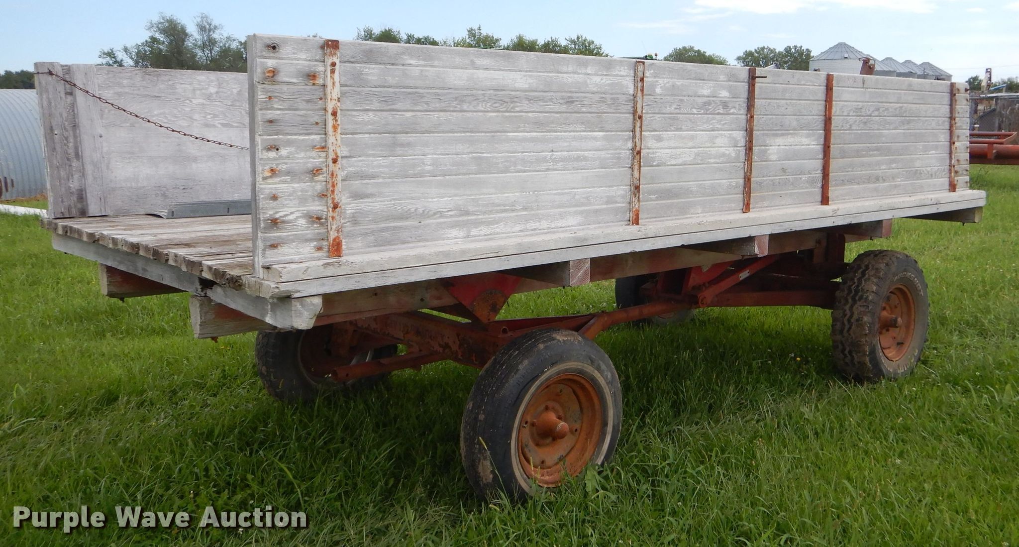 Purple Wave is selling a used Hay Handling in Kansas. This item is a Shop built hay trailer with the following: 14'L x 7'W, 24" side height, Hydraulic dump cylinder, No lines currently attached, Pin hitch