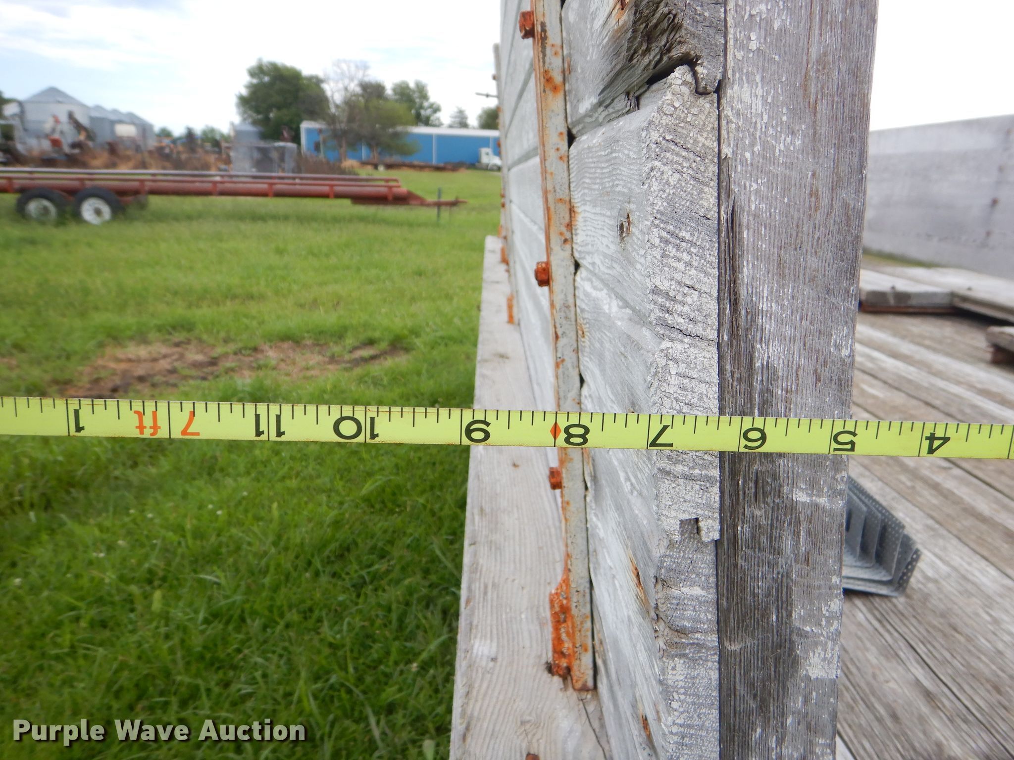 Shop built hay trailer. 14'L x 7'W, 24" side height, Hydraulic dump cylinder No lines currently attached, Pin hitch. Transfer of ownership documentation will be a bill of sale. Greg Lair Farms. 1331 Xylan Rd. Piqua, KS 66761
