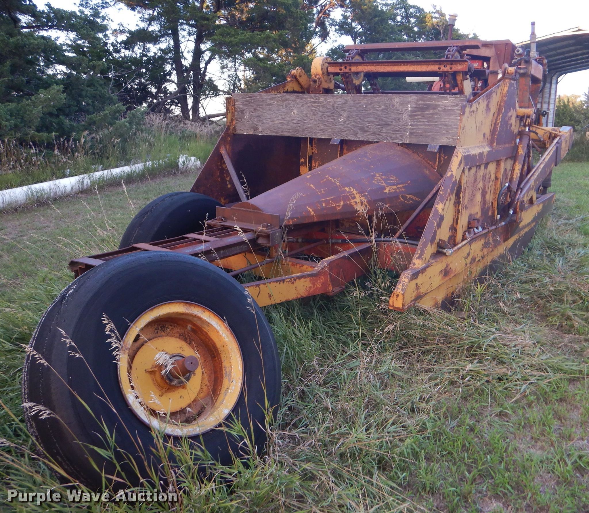 Purple Wave is selling a used Pull Type Scraper in Kansas. This item is a Soil Mover 90E scraper with the following: Ford B8PD-6006-G 172 C.I.D. four cylinder gas engine, Serial 9217-R21KK, 7'W, Hydraulic lift, 1000 PTO, 46x16 tires, Rear wheel removed, Unknown operating condition, Serial 296