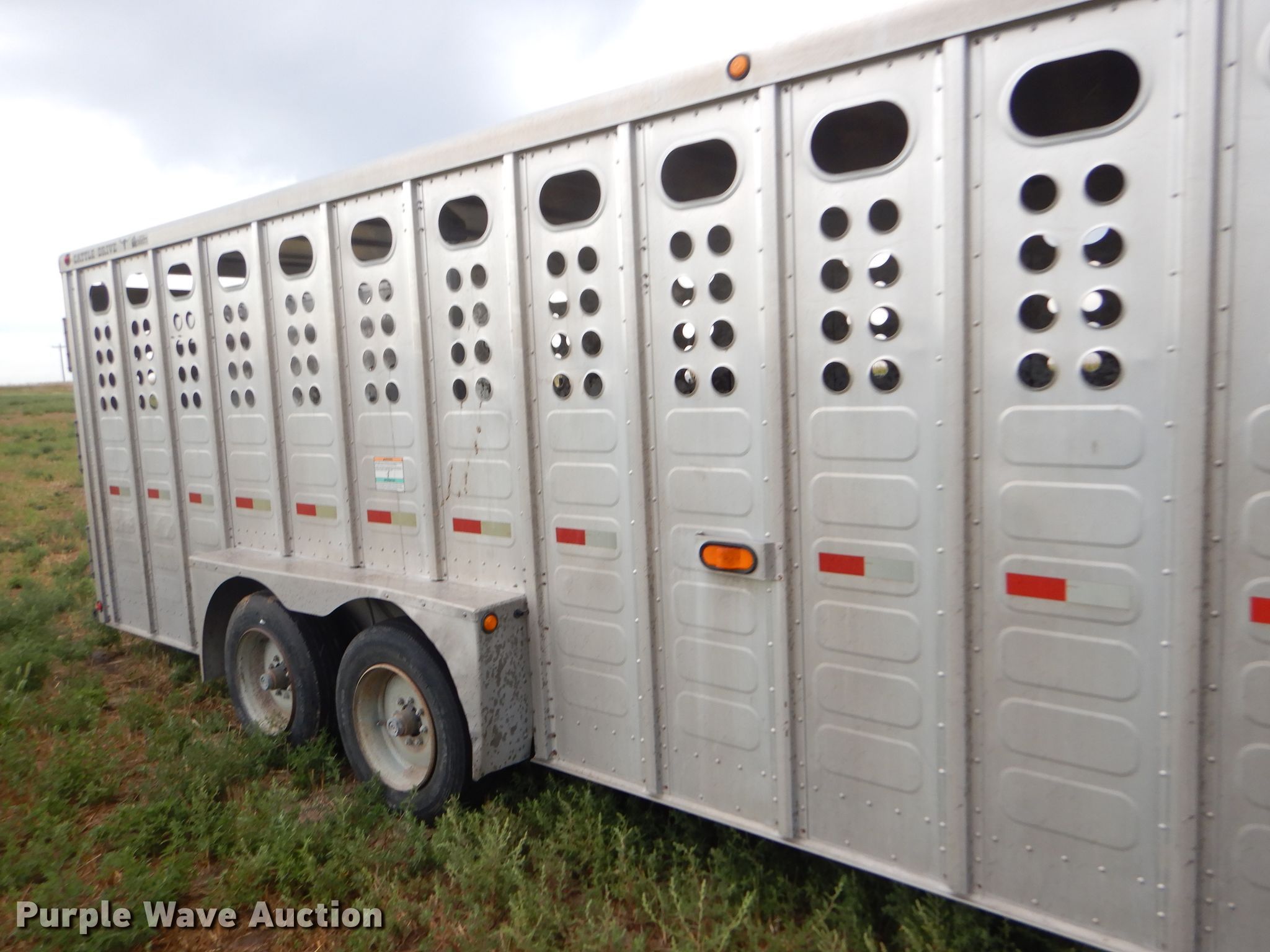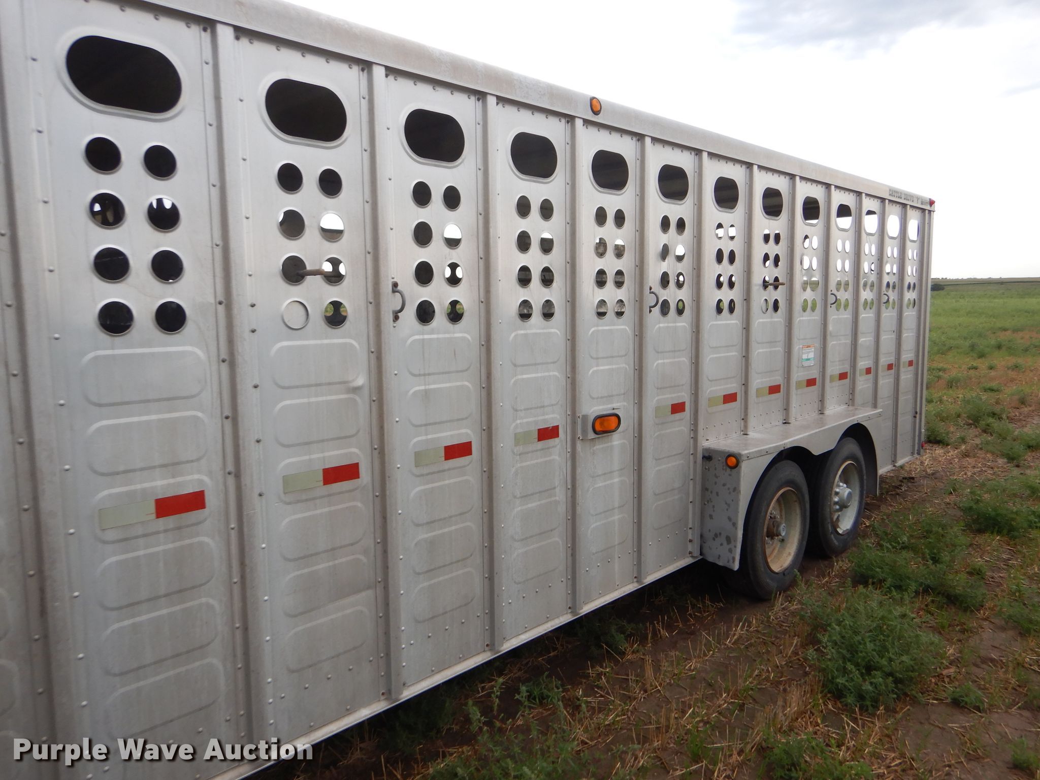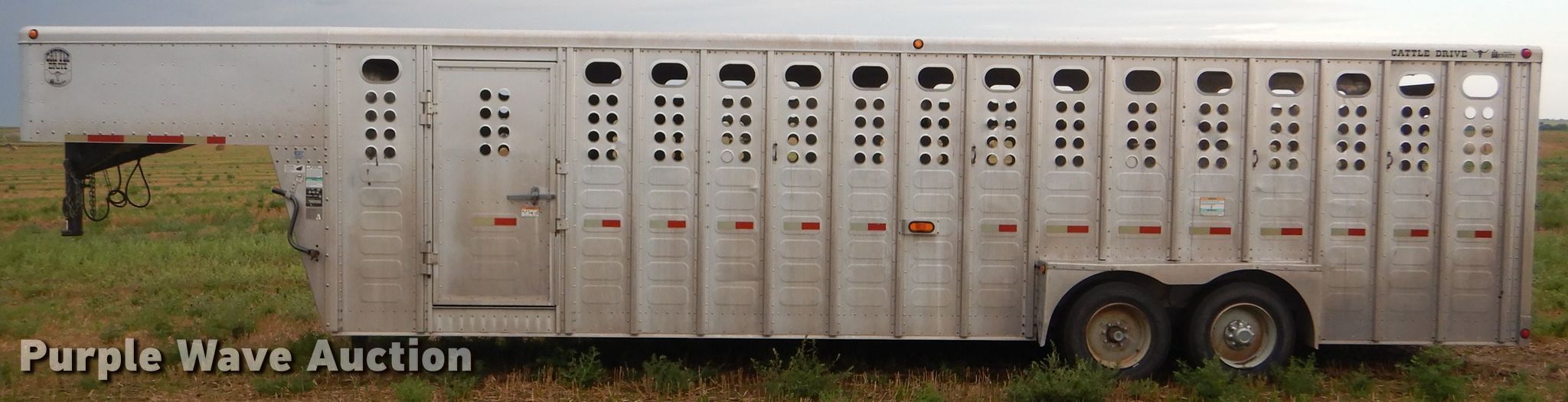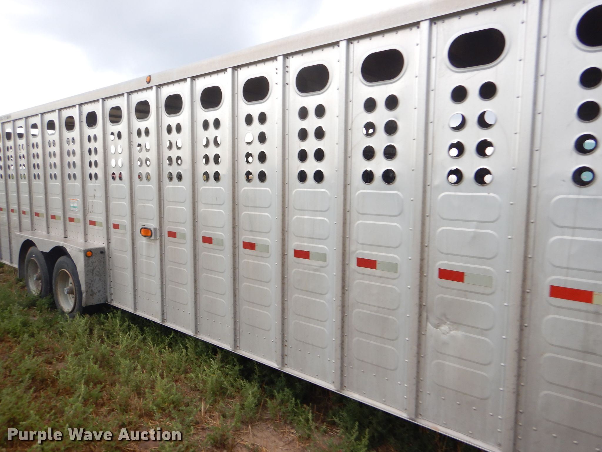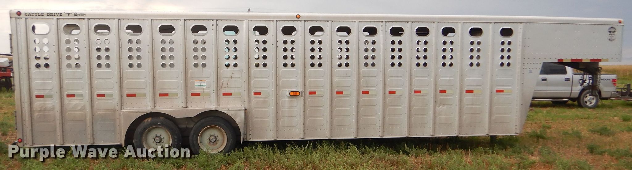 Purple Wave is selling a used Livestock Trailer in Kansas. This item is a 2007 Merritt Cattle Drive livestock trailer with the following: 36'L overall, 28'L x 84"W body, (2) center gates, Ground load, Aluminum construction, Single leg landing gear, Spring suspension, Electric brakes, Tandem axle, Aluminum wheels, 215/75R17.5 tires, GVWR 20,000 lbs