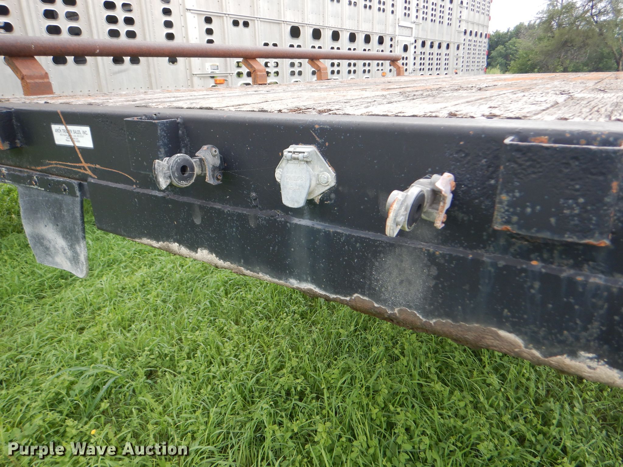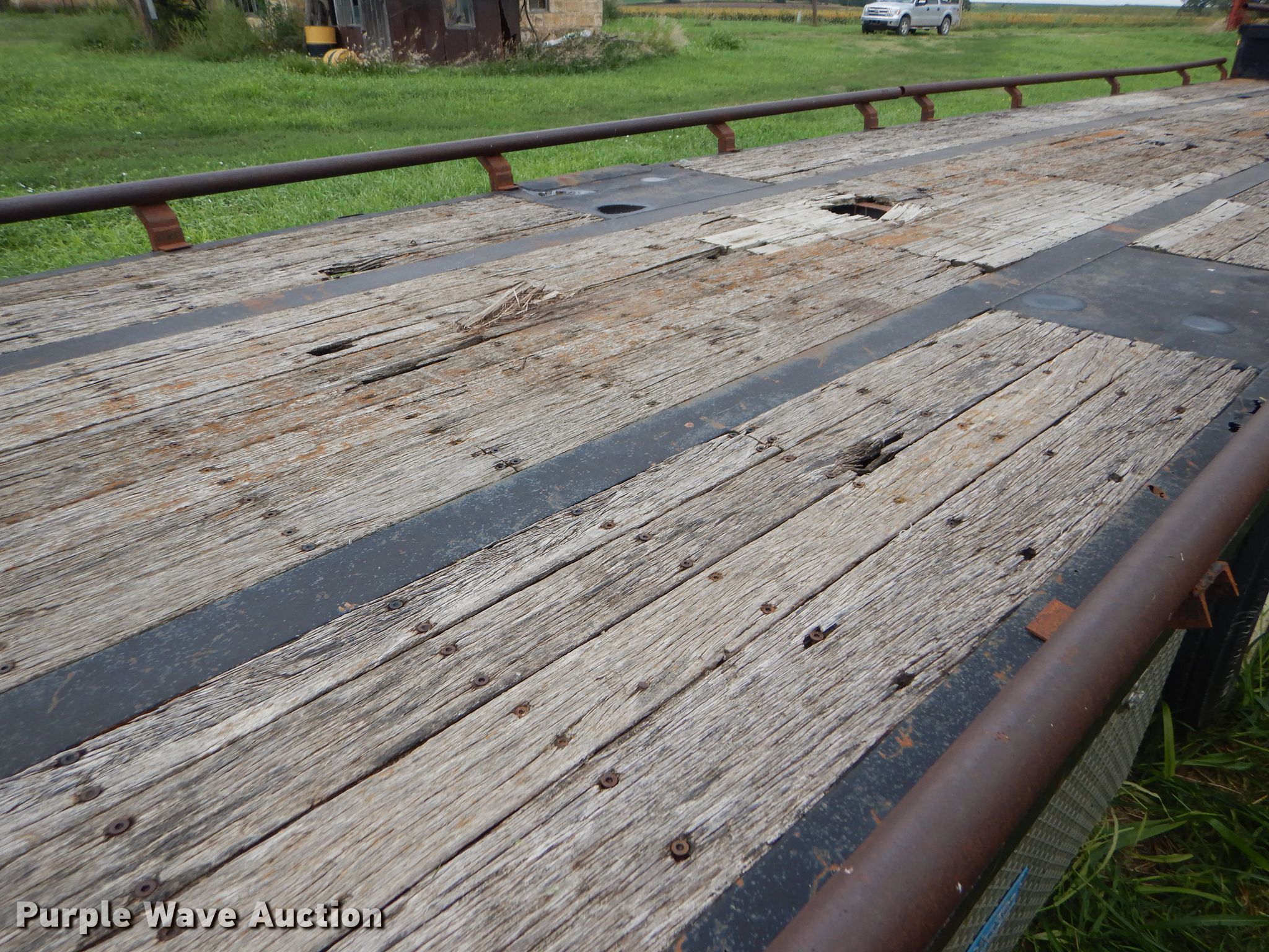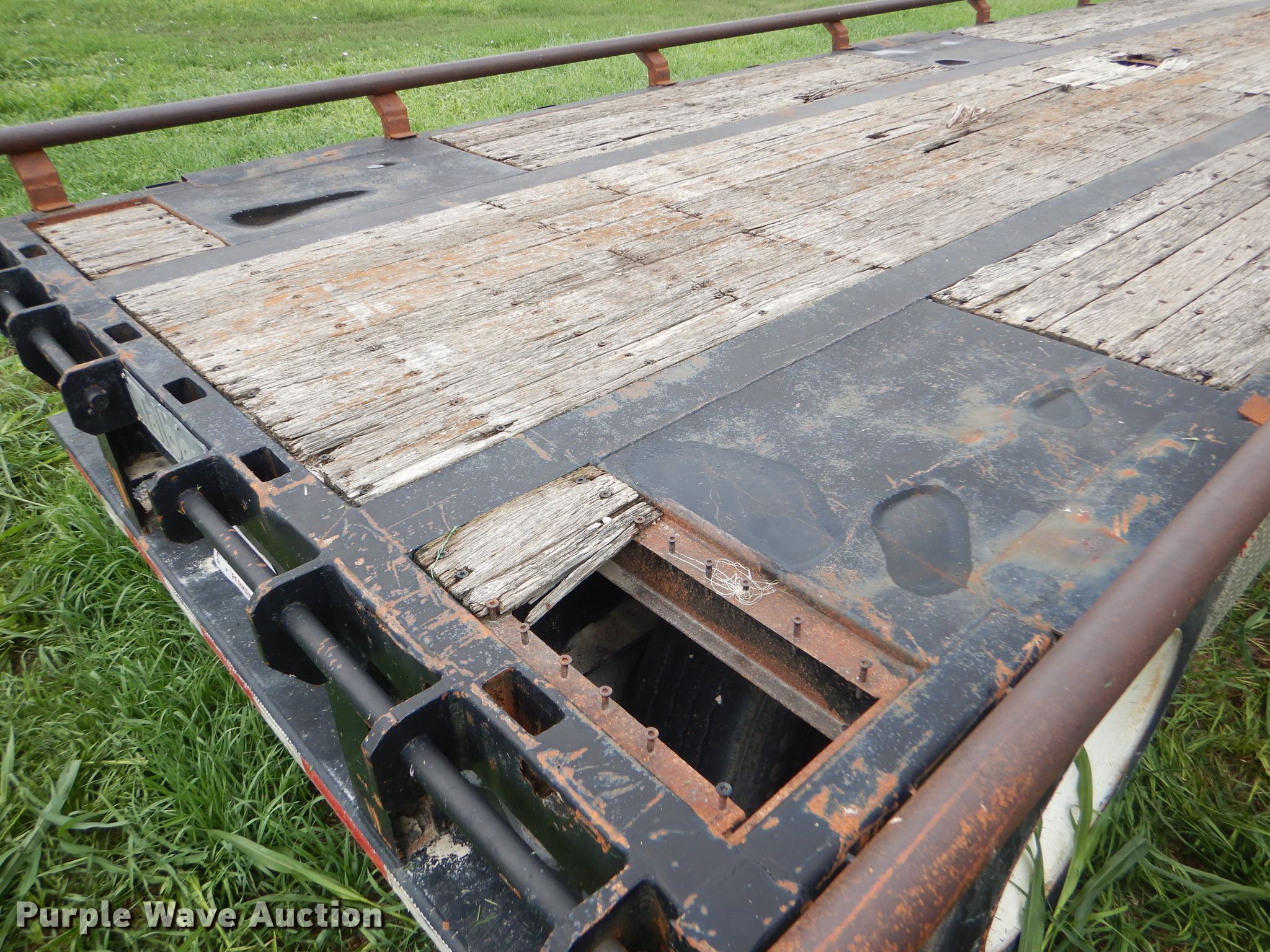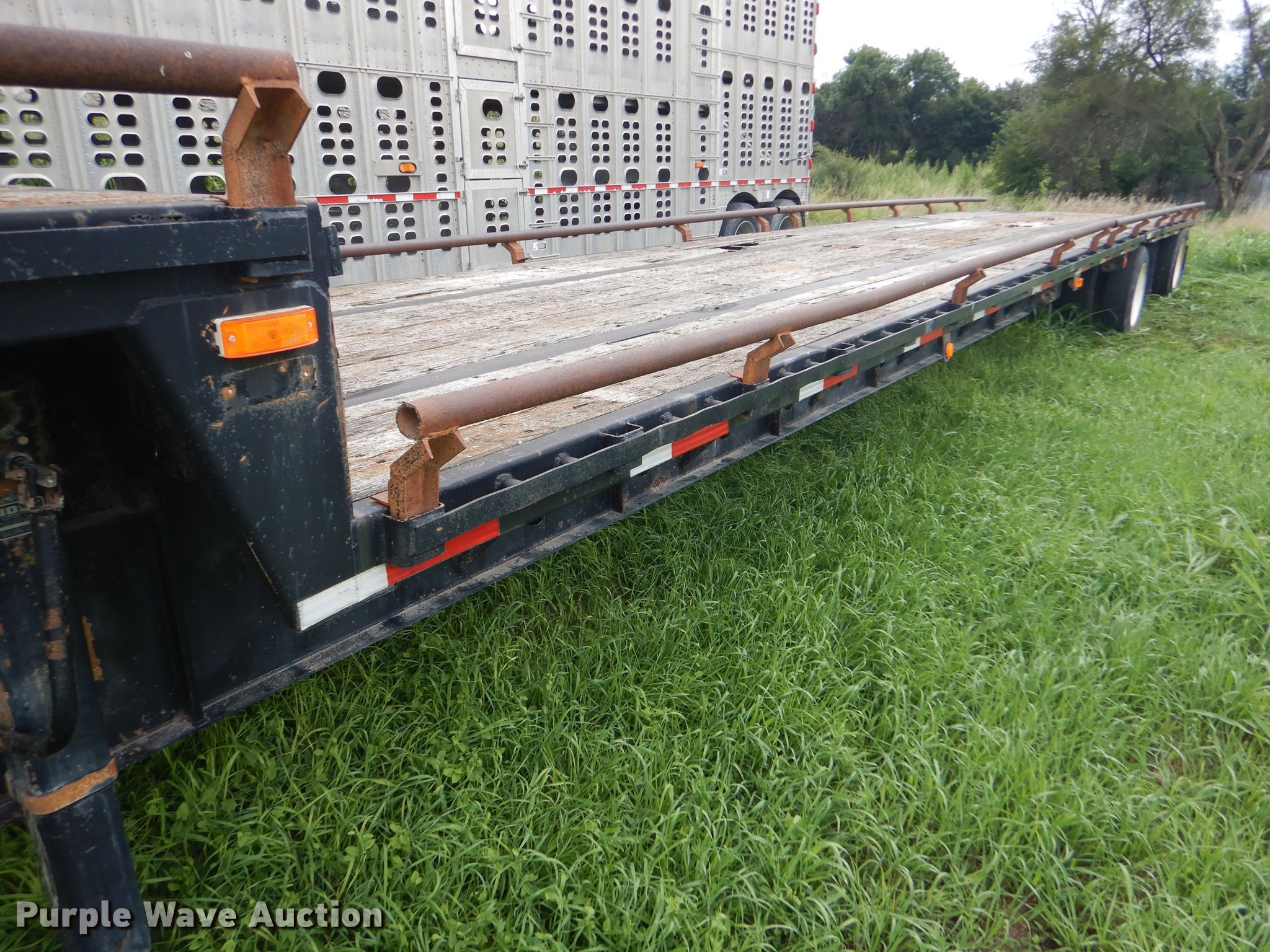 Purple Wave is selling a used Flat or Drop Deck Trailer in Kansas. This item is a 1997 Talbot drop deck trailer with the following: 53'L x 102"W overall, 11'L x 98"W top deck, 42'L x 98"W main deck, Wood deck, Bale extensions, Dual leg landing gear, Air suspension, Air brakes, Steel wheels, 225/70R22.5 tires