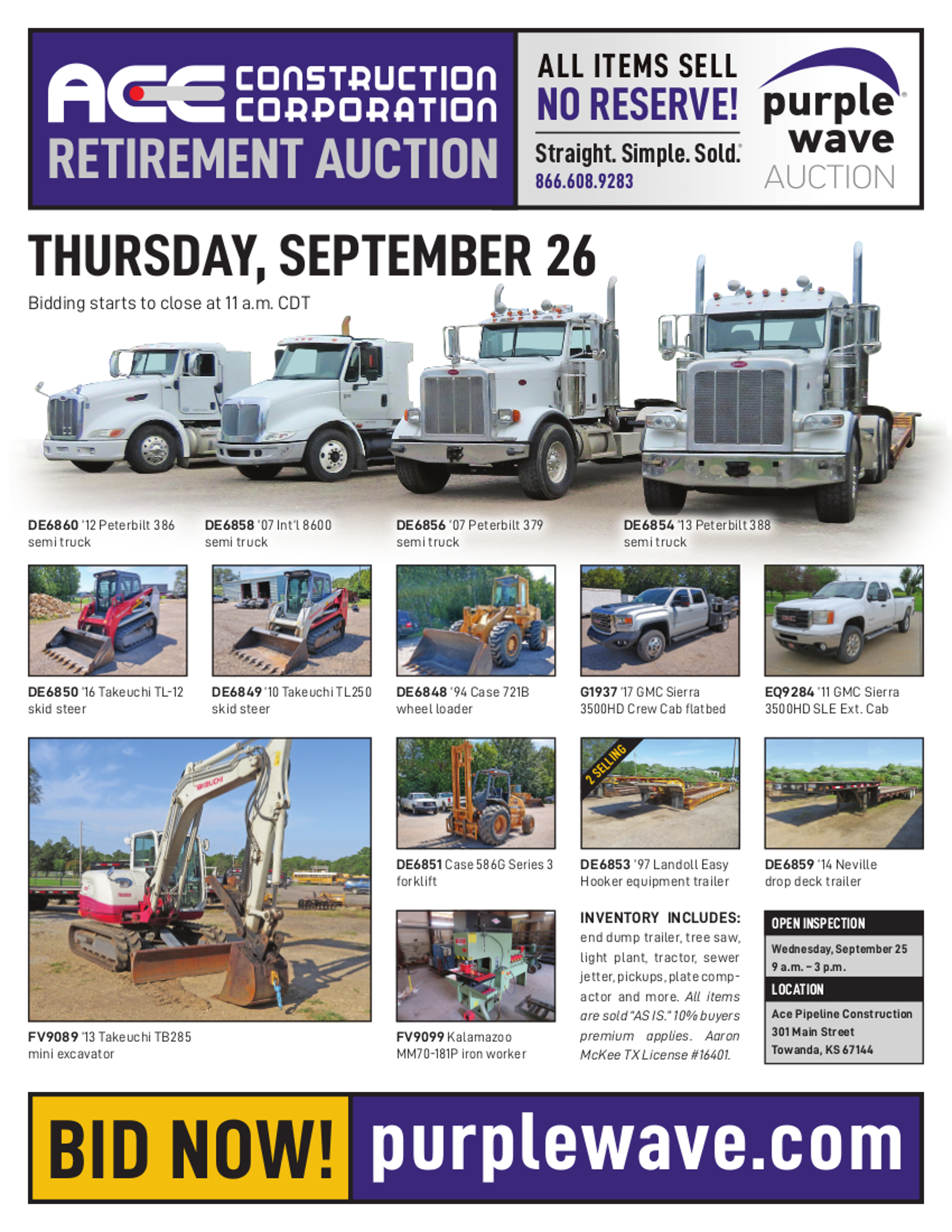 SOLD! ACE Pipeline Construction Retirement Auction | 9-26-2019