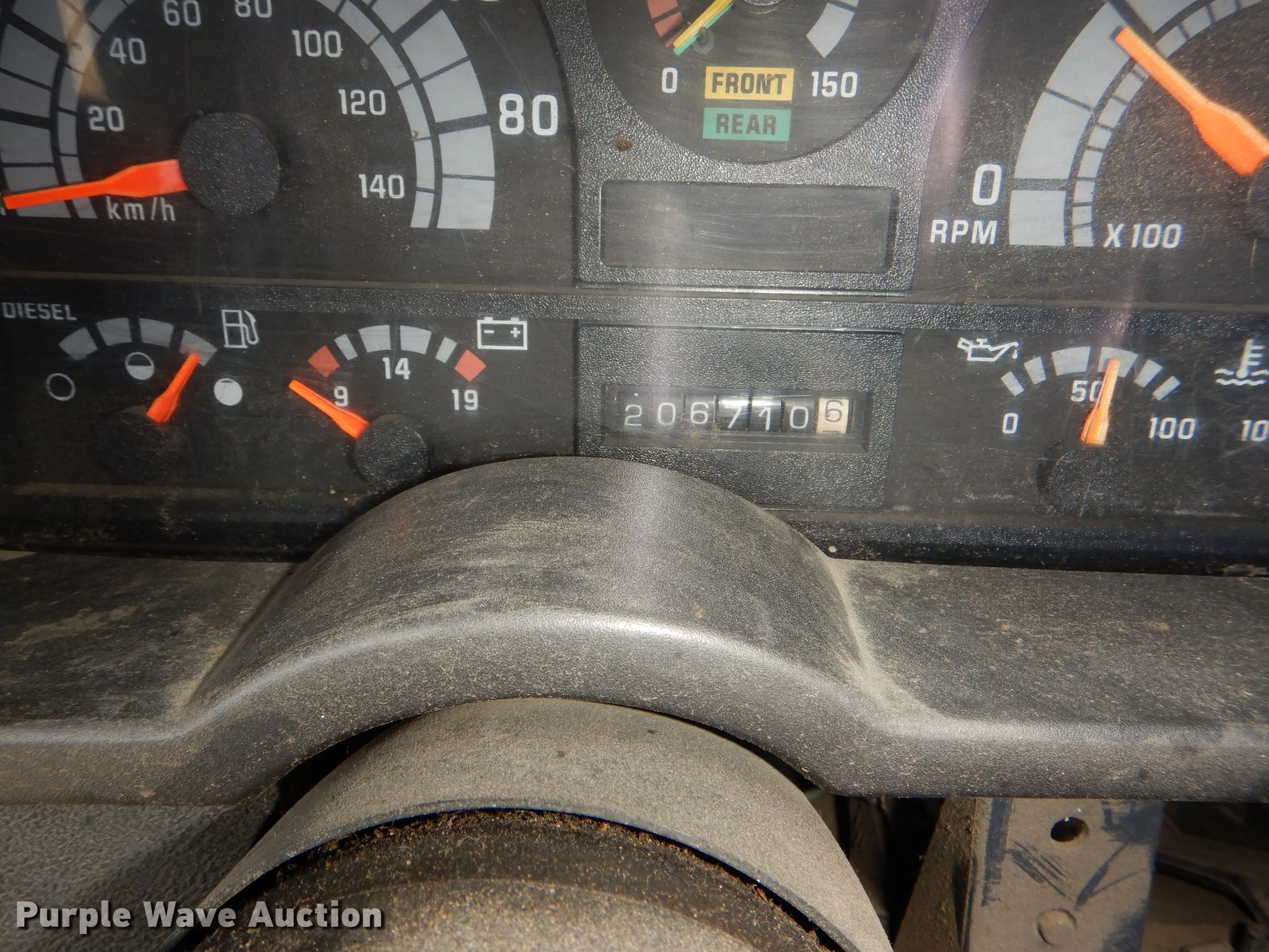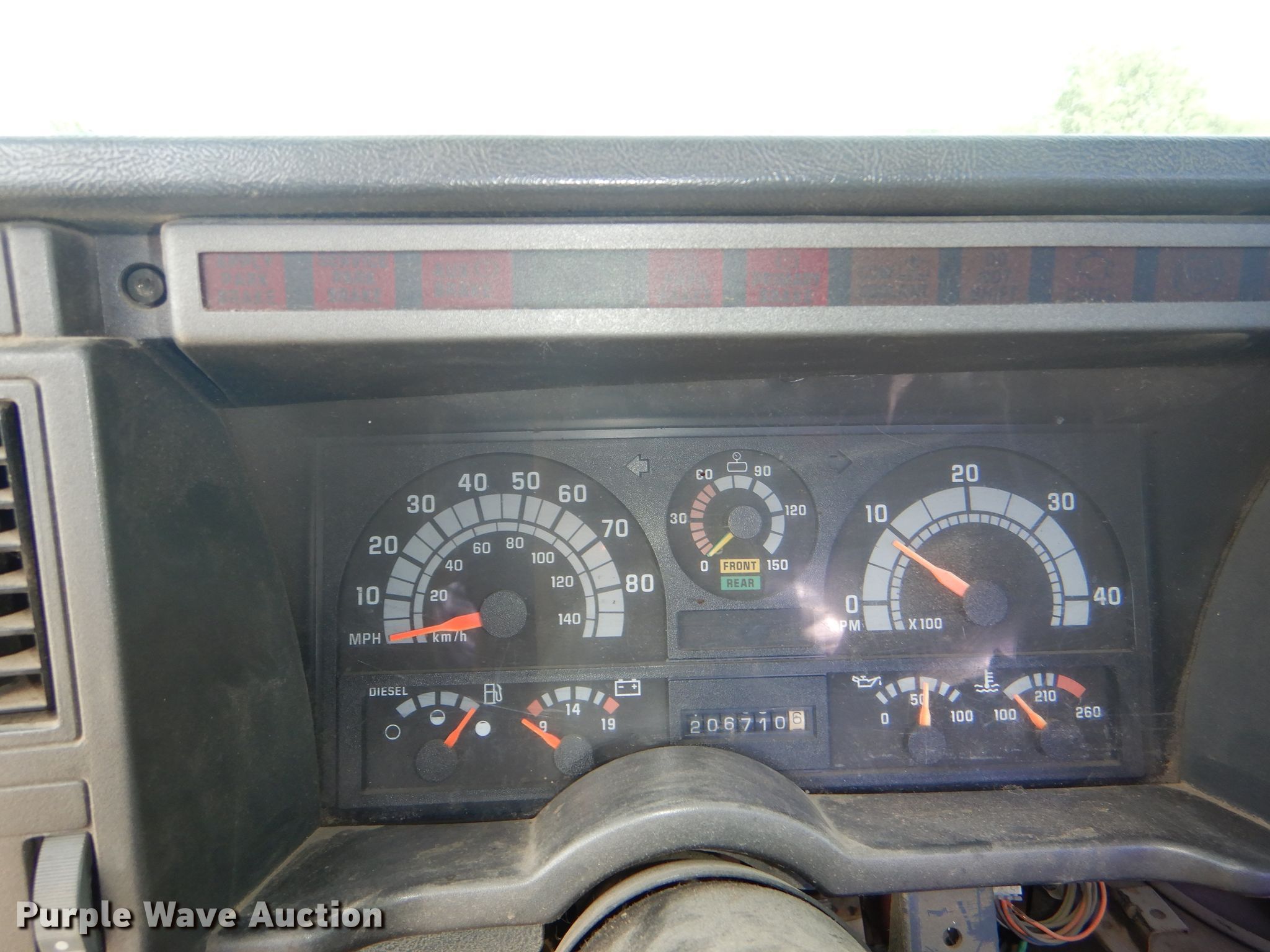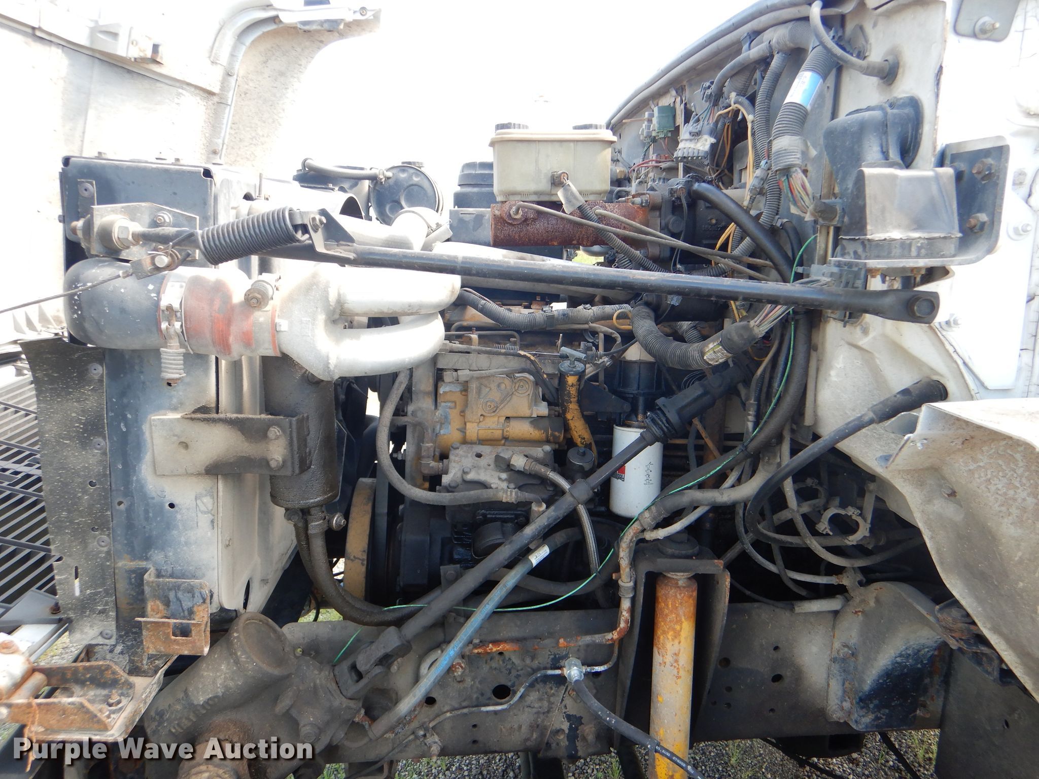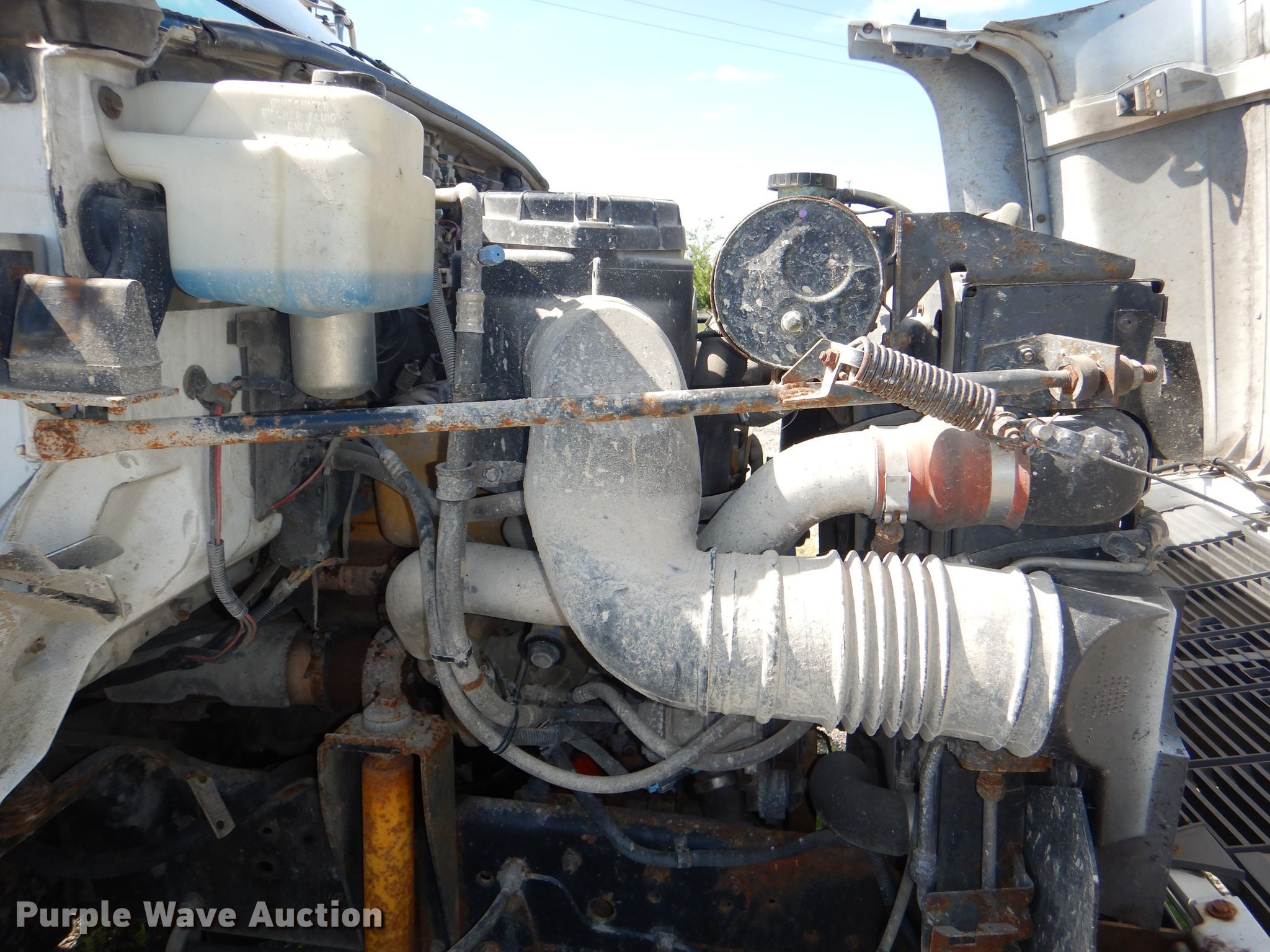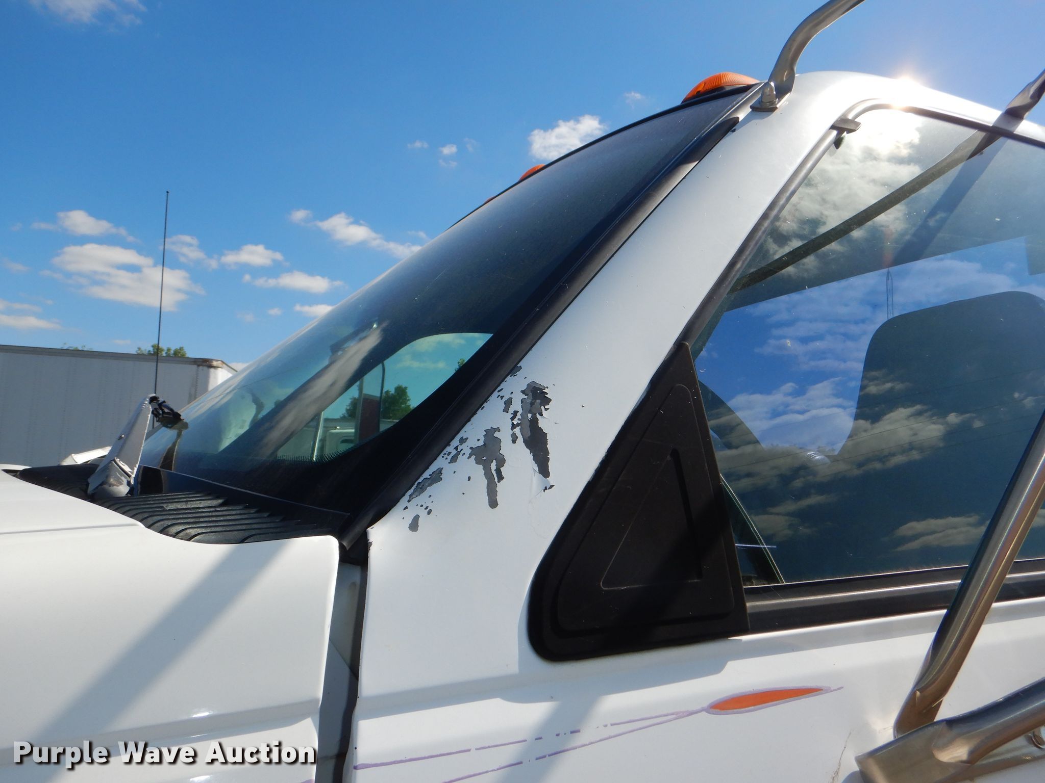 Purple Wave is selling a used Truck Chassis in Kansas. This item is a 1996 Chevrolet Kodiak C6500 truck cab and chassis with the following: 206,710 miles on odometer, Caterpillar 3116 DITA 6.6L six cylinder diesel engine, 280 HP, Serial 7HJ08370, Six speed manual transmission, Single axle, AC and heat, Power windows and locks, Air compressor lines for pneumatic tools, Spring suspension, Hydraulic brakes, 18' wheelbase, 245/70R19.5 tires, GVWR 23,900 lbs, Cracked windshield, No taillights, Some interior panels have been removed, but included