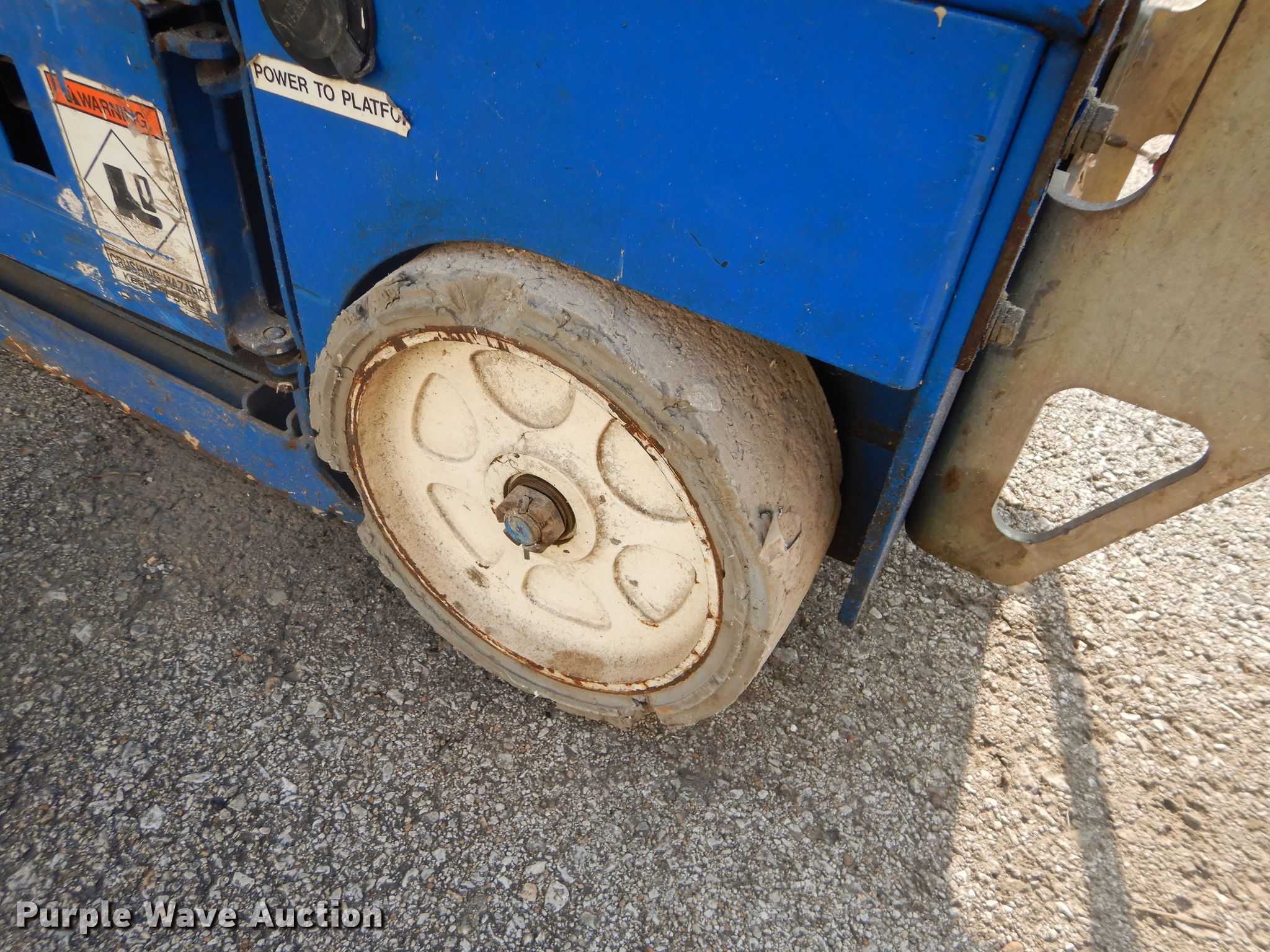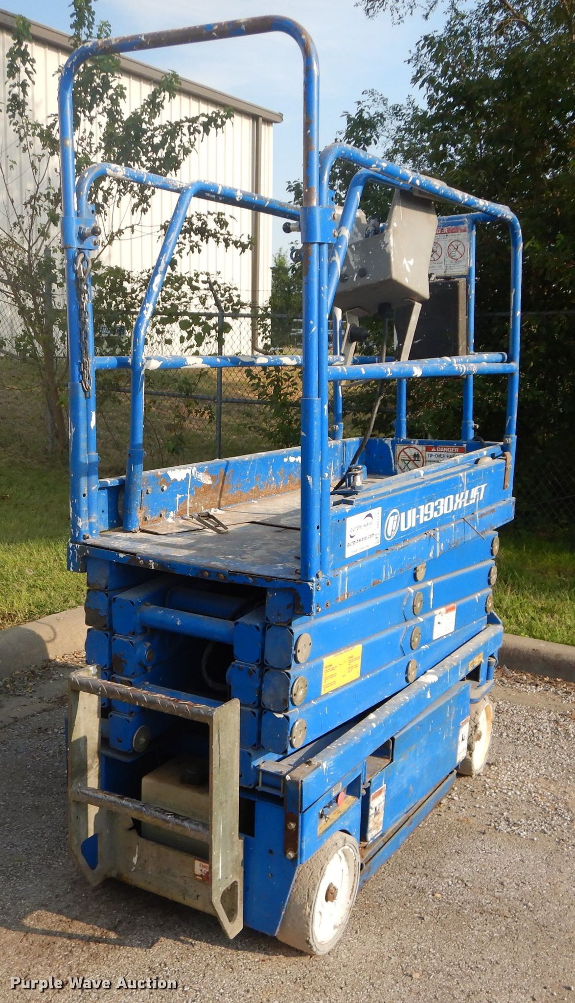 Purple Wave is selling a used Scissor or Vertical Lift in Kansas. This item is a Up Right UI-1930X-Lift scissor lift with the following: 340 hours on meter, 24V electric operation, 250 lbs maximum lift capacity, 19' maximum lift height, 5'L x 2.5'W platform, Platform and ground controls, Manual platform extensions, Solid non-marking tires, Batteries dead