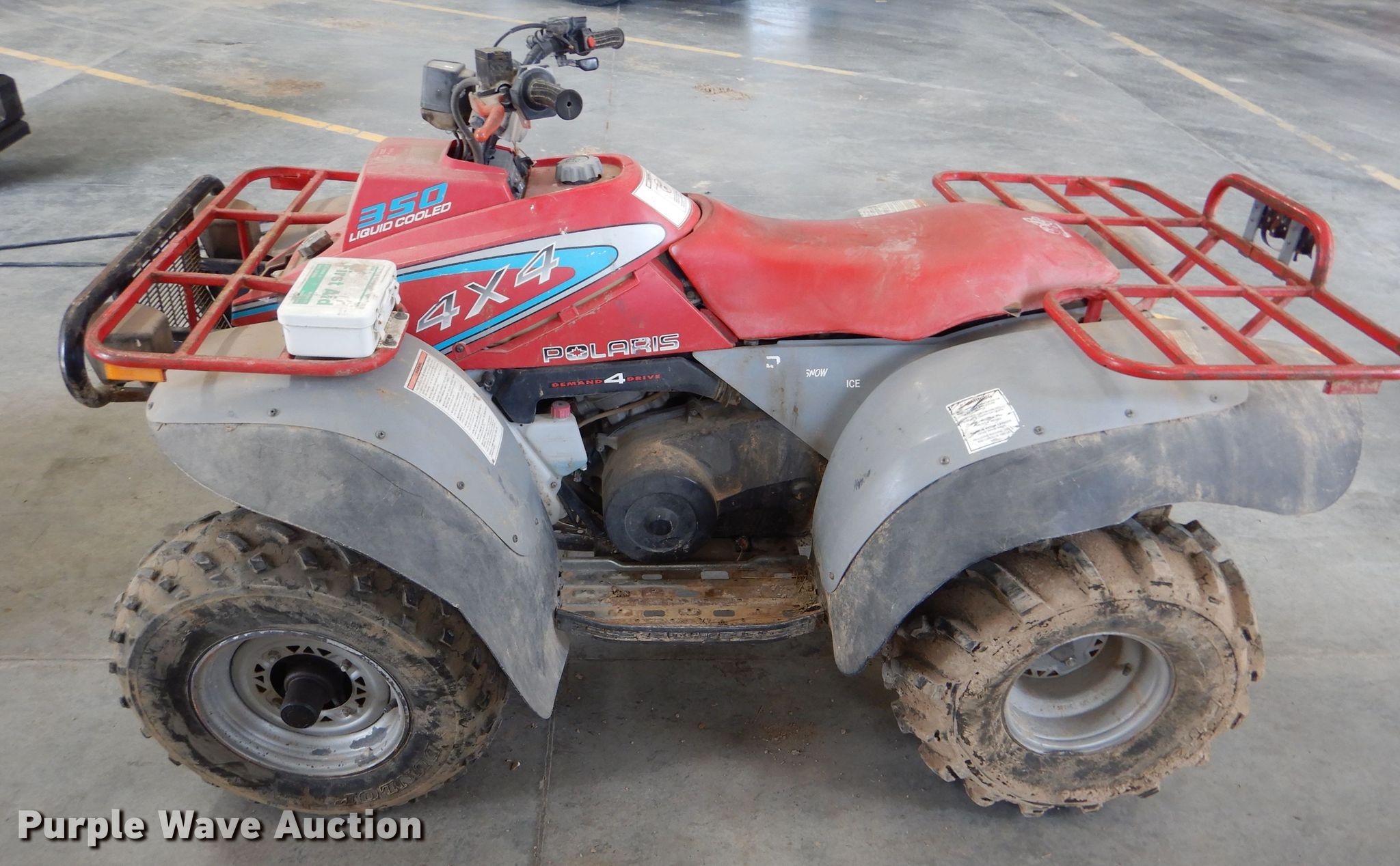 Purple Wave is selling a used ATV in Kansas. This item is a 1993 Polaris 350 ATV with the following: 1,166 miles on odometer, 350cc single cylinder gas engine, Automatic transmission, Four wheel drive, 25 x 8-12 front tires, 25 x 12-10 rear tires, Carburetor needs work, Battery dead