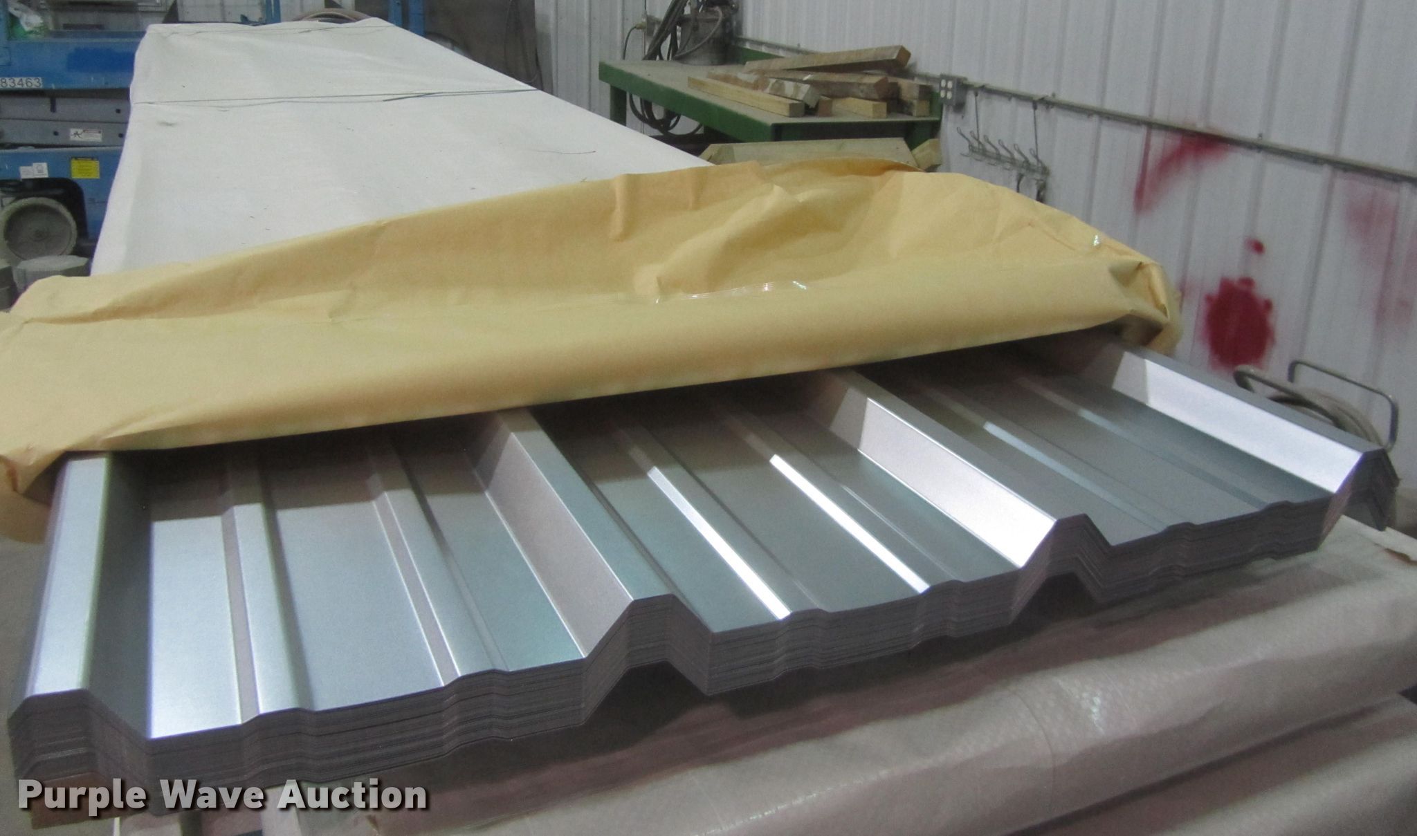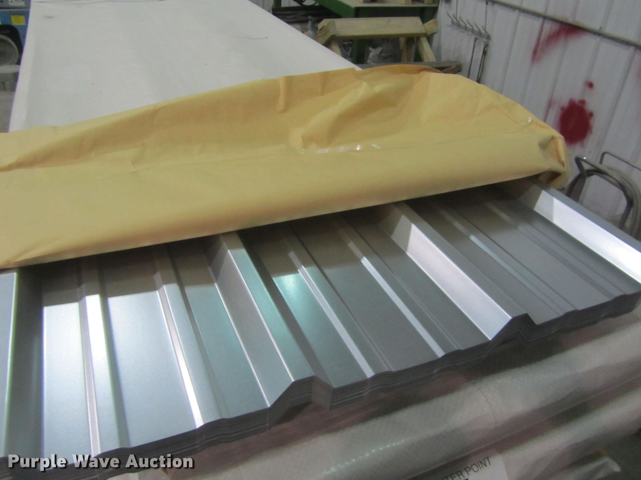 Purple Wave is selling a used Building Materials in Nebraska. This item is a (40) sheets of metal siding/roofing with the following: 16'4"L x 36" overlap coverage, R-Loc panel, 26 gauge ultra livestock, Stored inside, Color: Galvalume, Unused