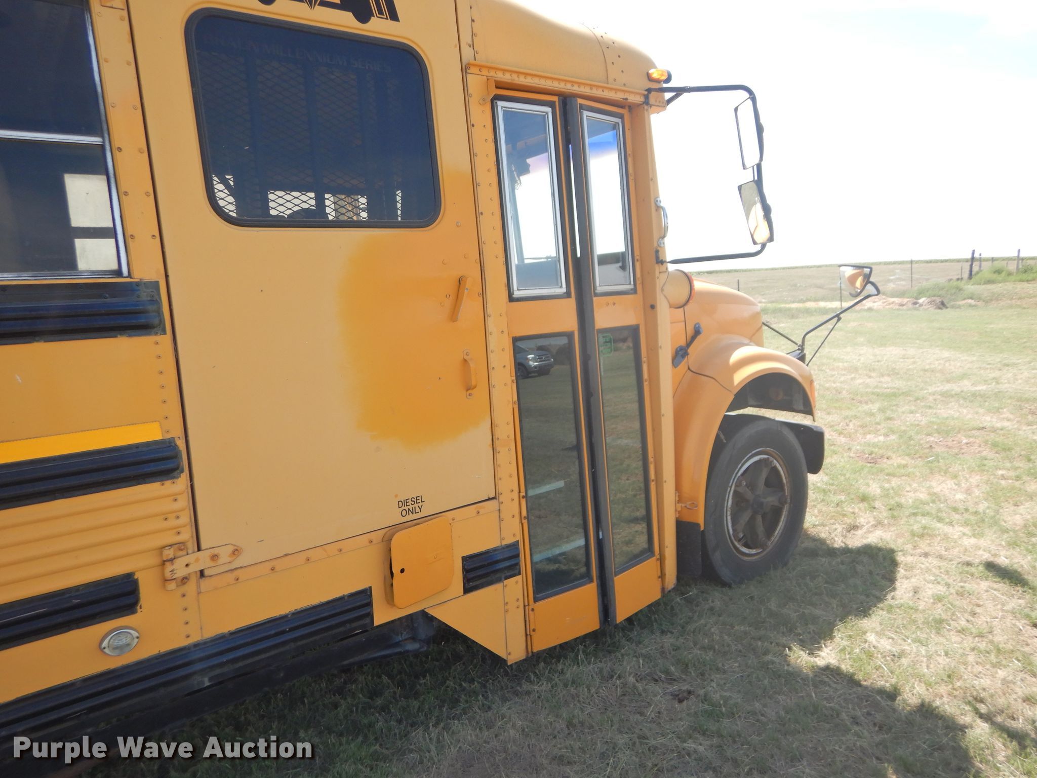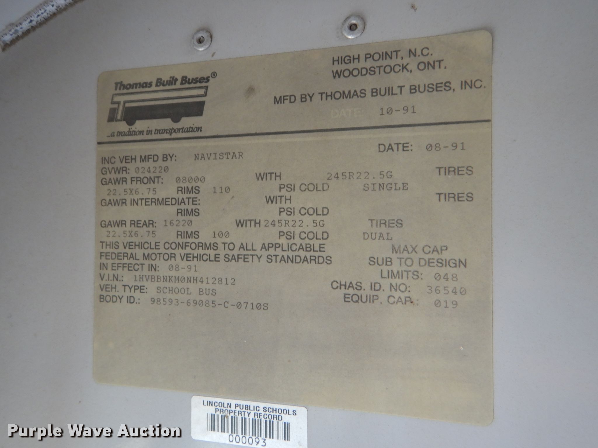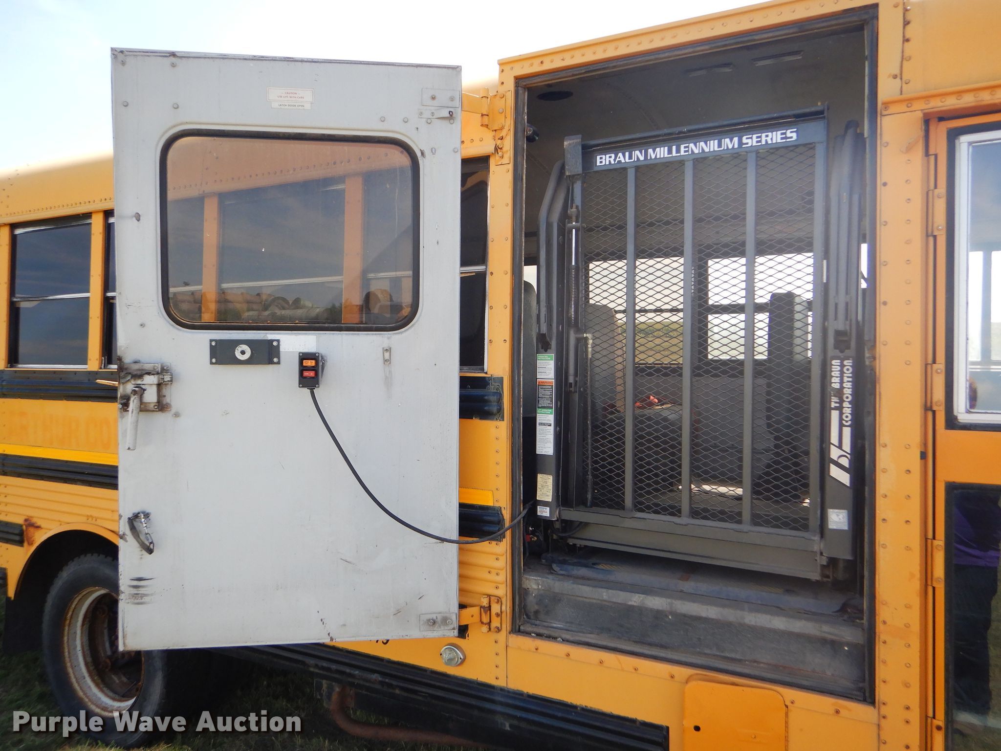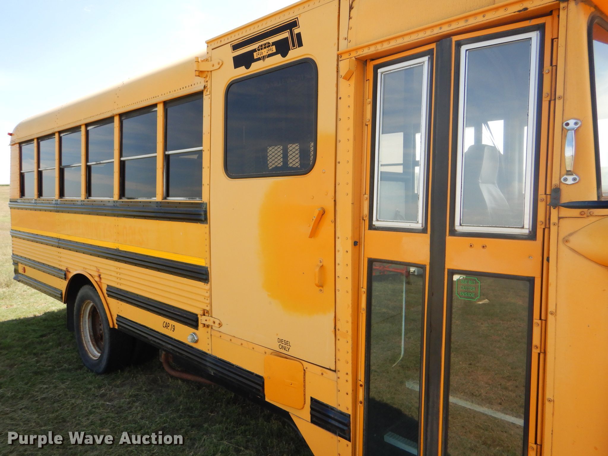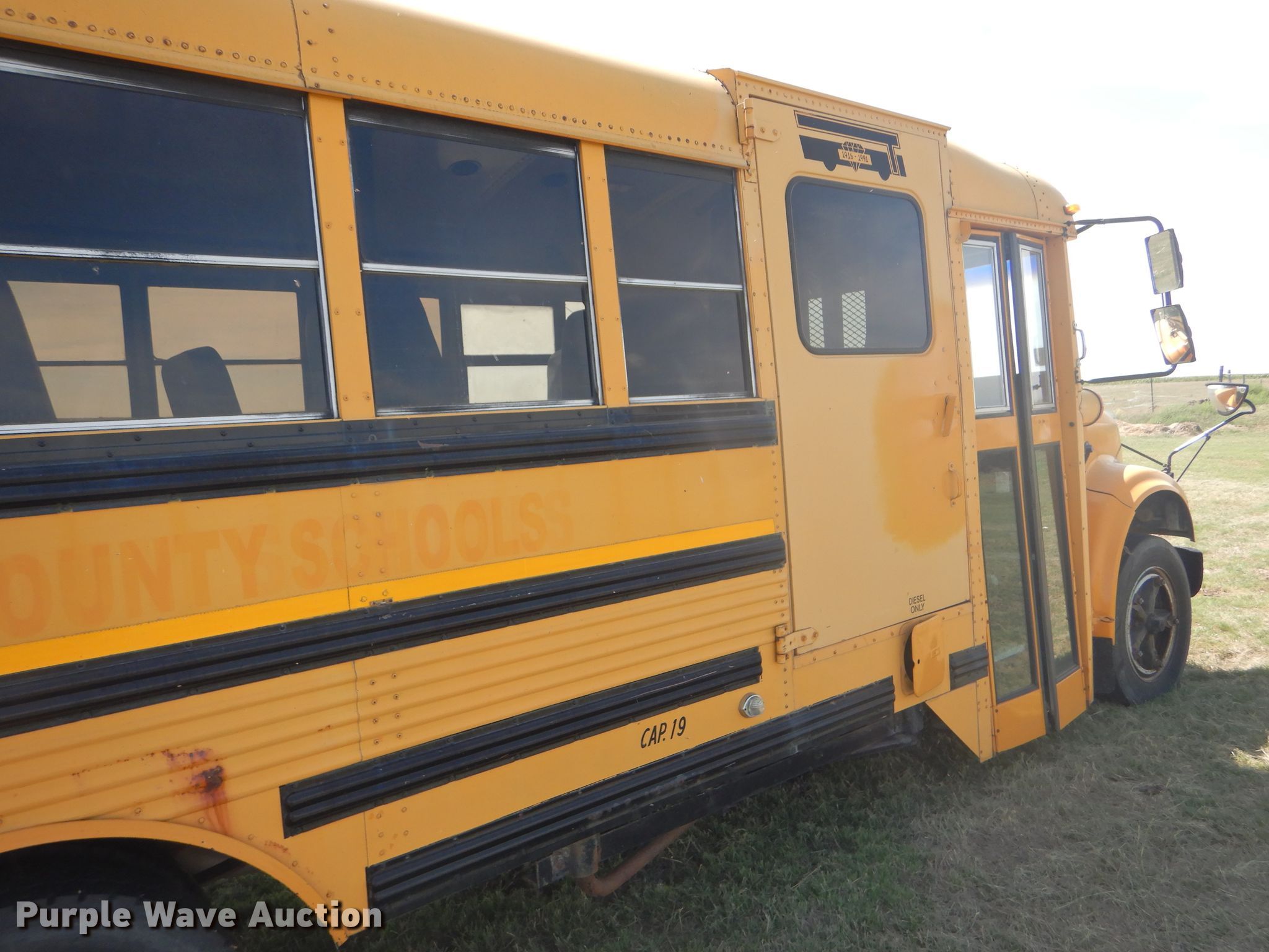 Purple Wave is selling a used Bus in Kansas. This item is a 1992 International 3800 school bus with the following: 249,964 miles on odometer, International DT360 5.9L L6 diesel engine, Allison automatic transmission, Single axle, Heat, 19 passenger capacity, Braun Millenium wheelchair lift, Spring suspension, Hydraulic brakes, 193" wheelbase, 255/70R22.5 tires, GVWR 24,220 lbs