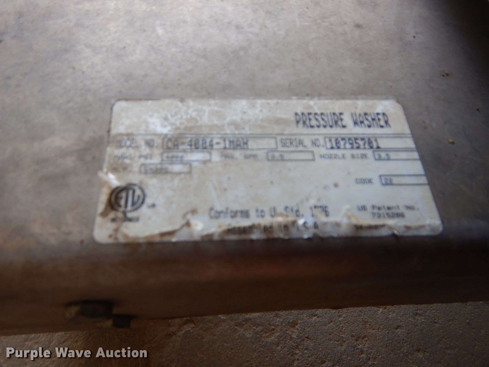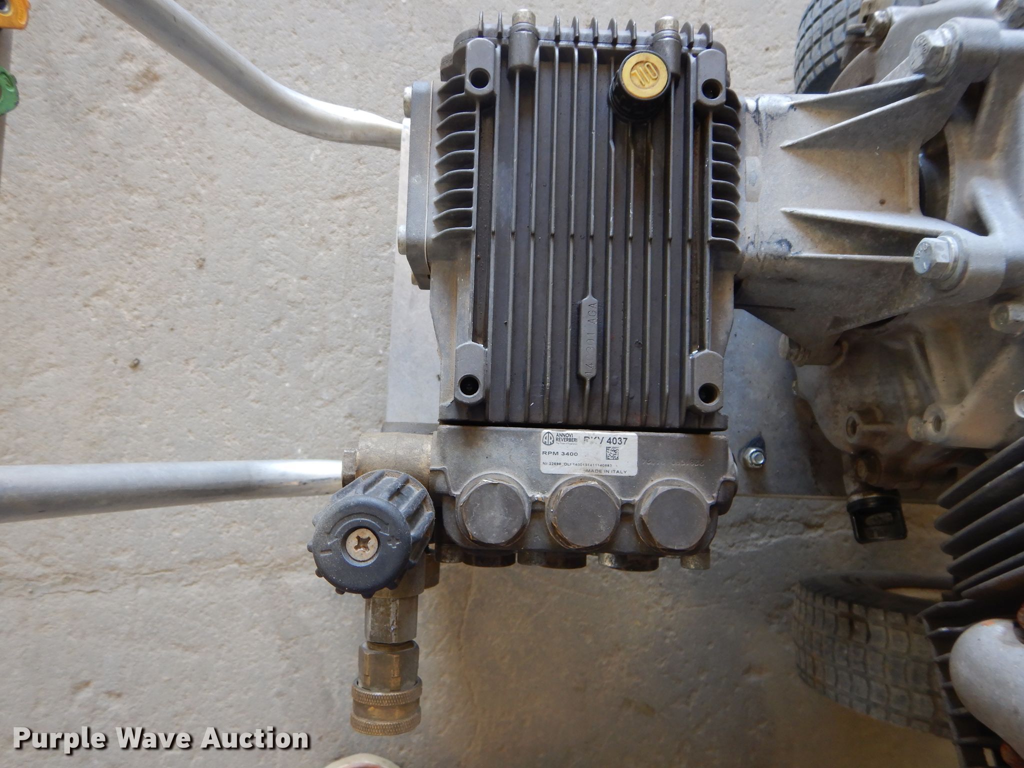 Purple Wave is selling a used Pressure Washer in Kansas. This item is a 2013 Mi-T-M CA-4004-1MAH pressure washer with the following: Honda GX390 gas engine, 13 HP, 4,000 psi, 3.5 gpm, Annovi pump, Cart, No wand or hose, Serial 10795701