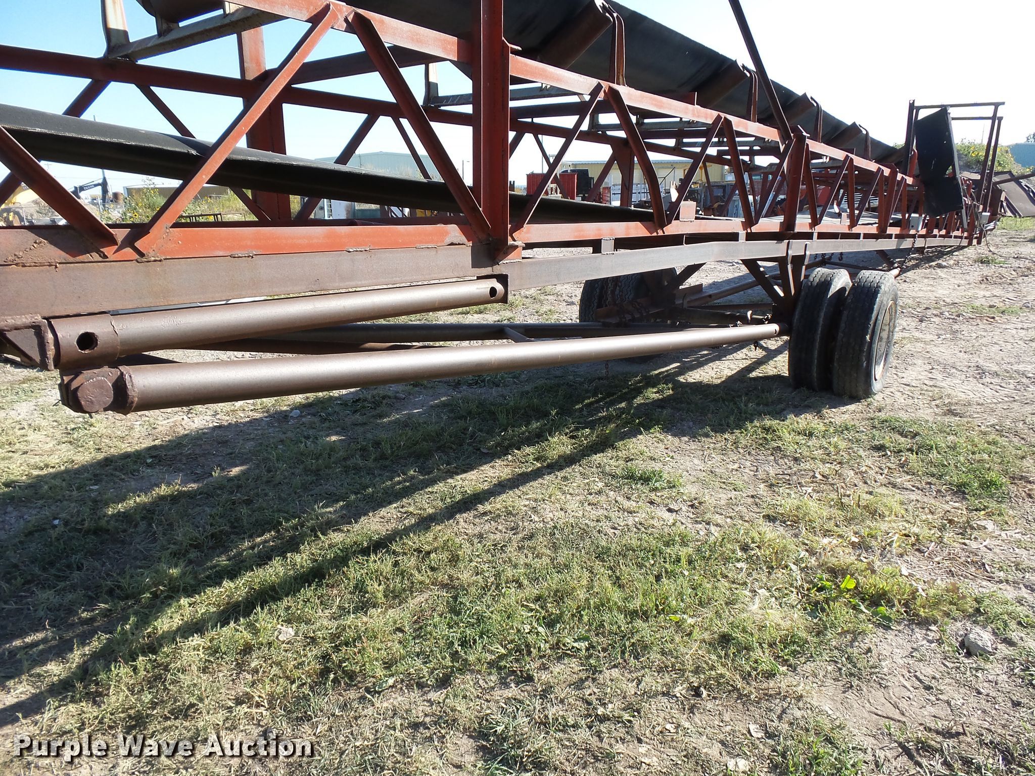 Conveyor. 70'L, 30"W conveyor, (14) rolls, 9.00-20 tires. Newco Locators/Gary Meyer Retirement Auction. 220019 Sunset Dr. Gering, NE 69341