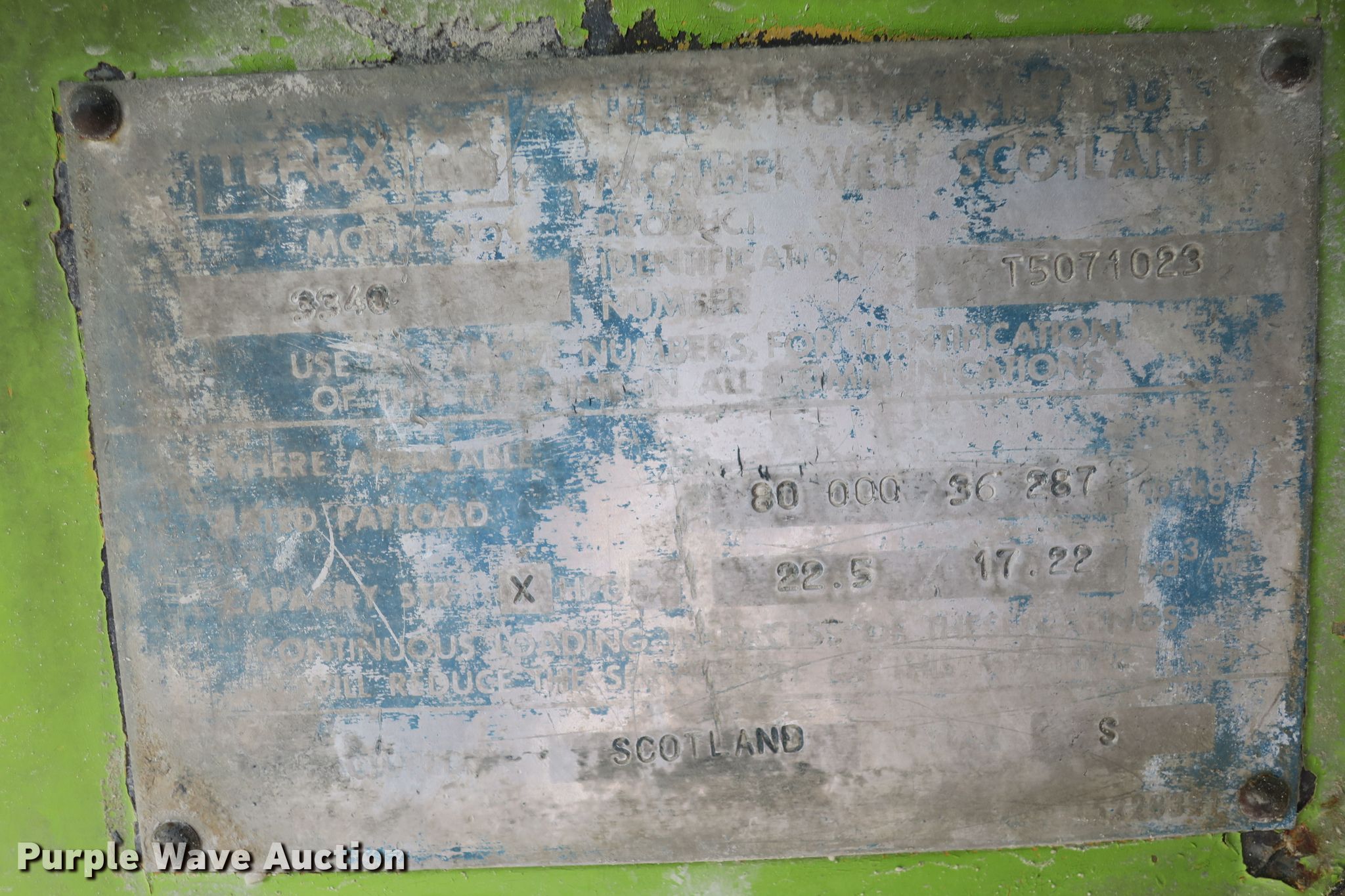 Terex 3340 haul truck. 5,759 hours on meter, Cummins K19 six cylinder diesel engine, Automatic transmission, 18'L x 12'10"W dump bed, 80,000 lbs payload, 18-33 tires, Serial T5071023. Leo Journagan Construction Company. 3651 W Kearney St. Springfield, MO 65803