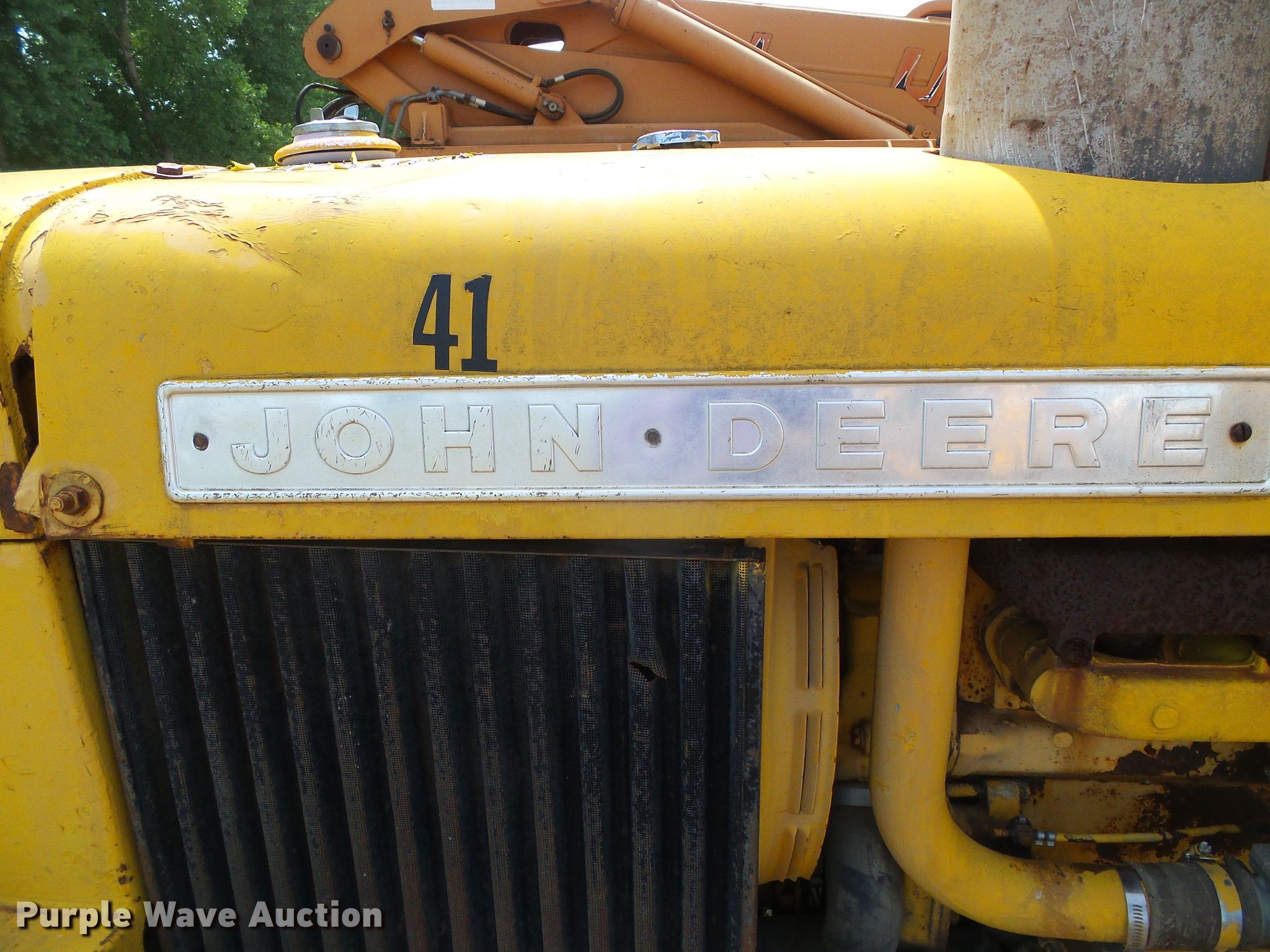 Purple Wave is selling a used Strt. Mast Rough Terr. Forklift in Oklahoma. This item is a John Deere 480 forklift with the following: 262 hours on meter, John Deere four cylinder gas engine, Eight speed manual transmission, 5,000 lbs maximum lift capacity, 14' maximum lift height, Two stage boom, Side shift, Mast tilt, 57"L forks, 14.9R28 front tires, 31 x 10.50R15 rear tires, Side shift seal needs replaced, Serial SNE0480000196U, Unit# 41