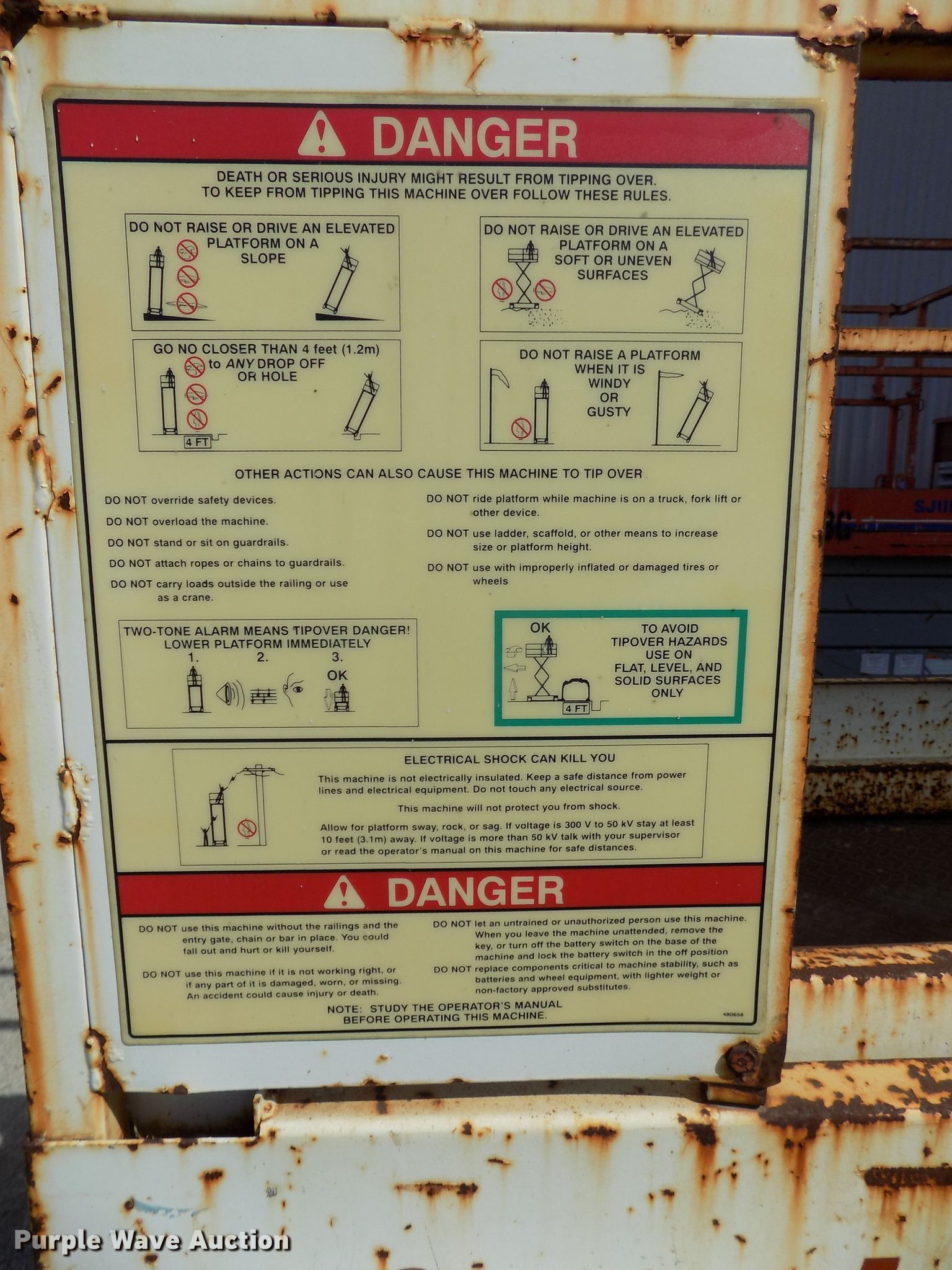 Purple Wave is selling a used Scissor or Vertical Lift in Nebraska. This item is a Snorkel SL20 Wildcat scissor lift with the following: 214 hours on meter, Electric operation, 20' maximum lift height, 90"L x 29 3/4"W platform, AC power outlet, Platform controls, Manual platform extensions, 4.00 x 8 non-marking tires, Batteries dead, Unknown operating condition, Serial 971139