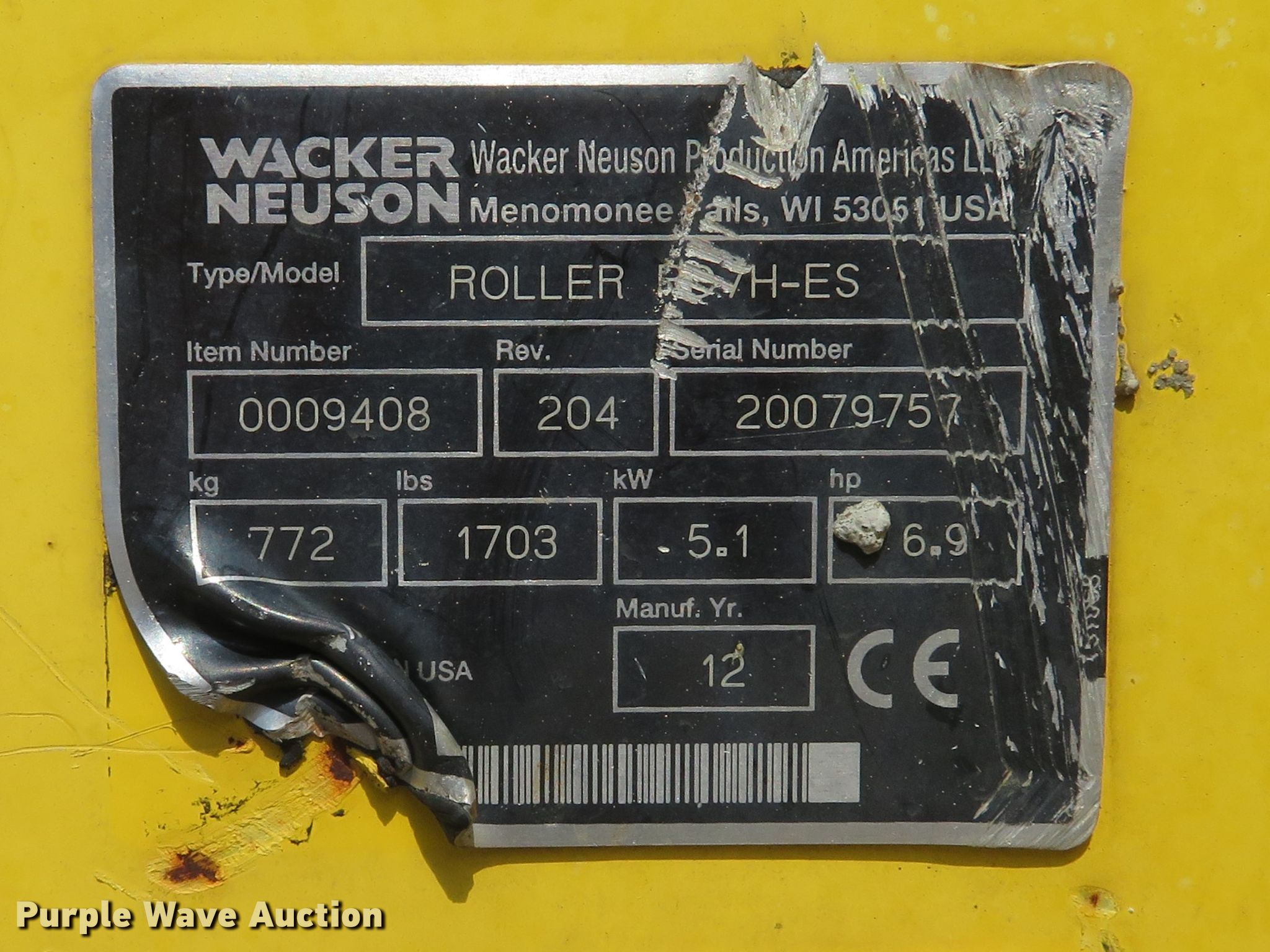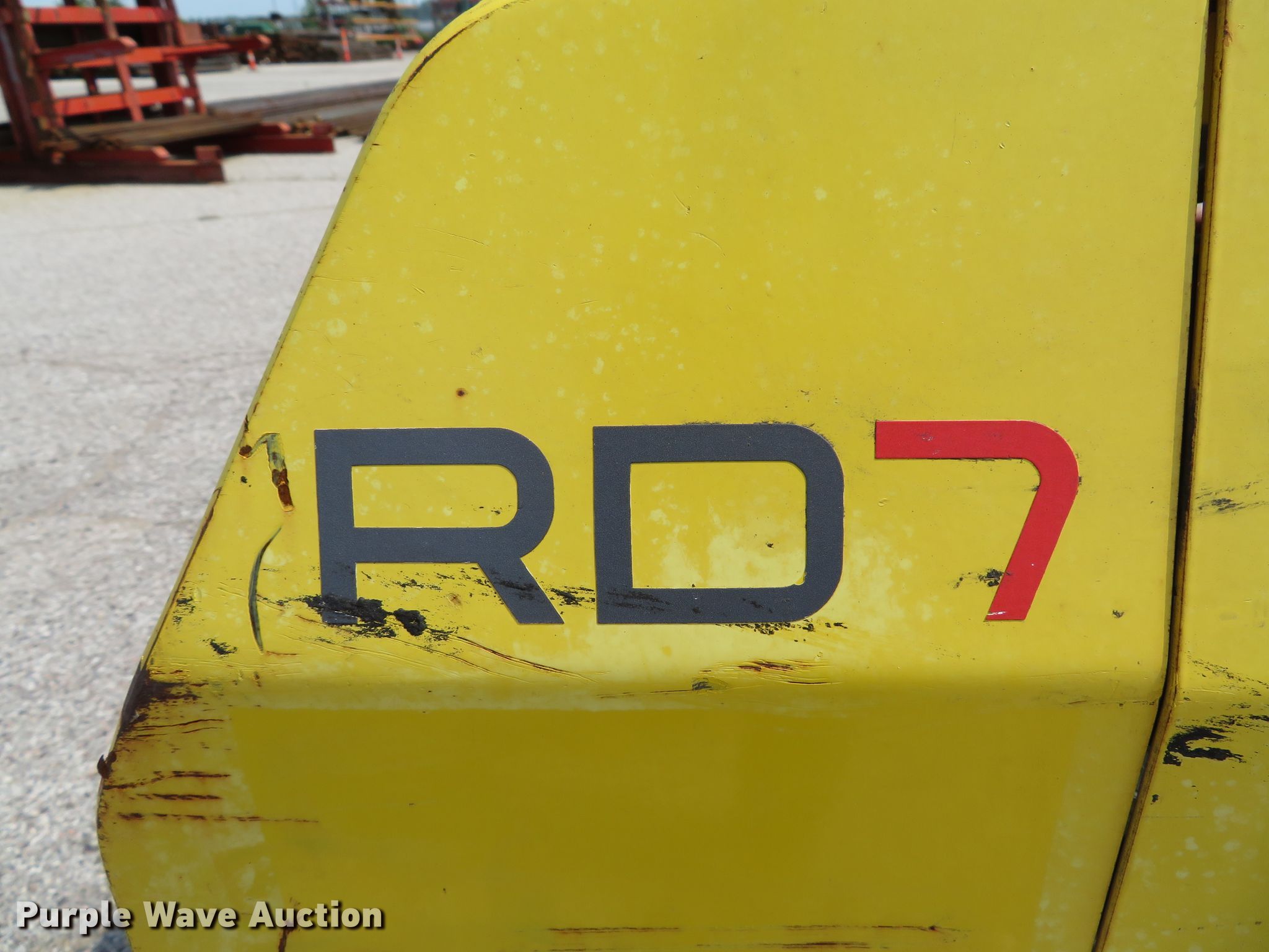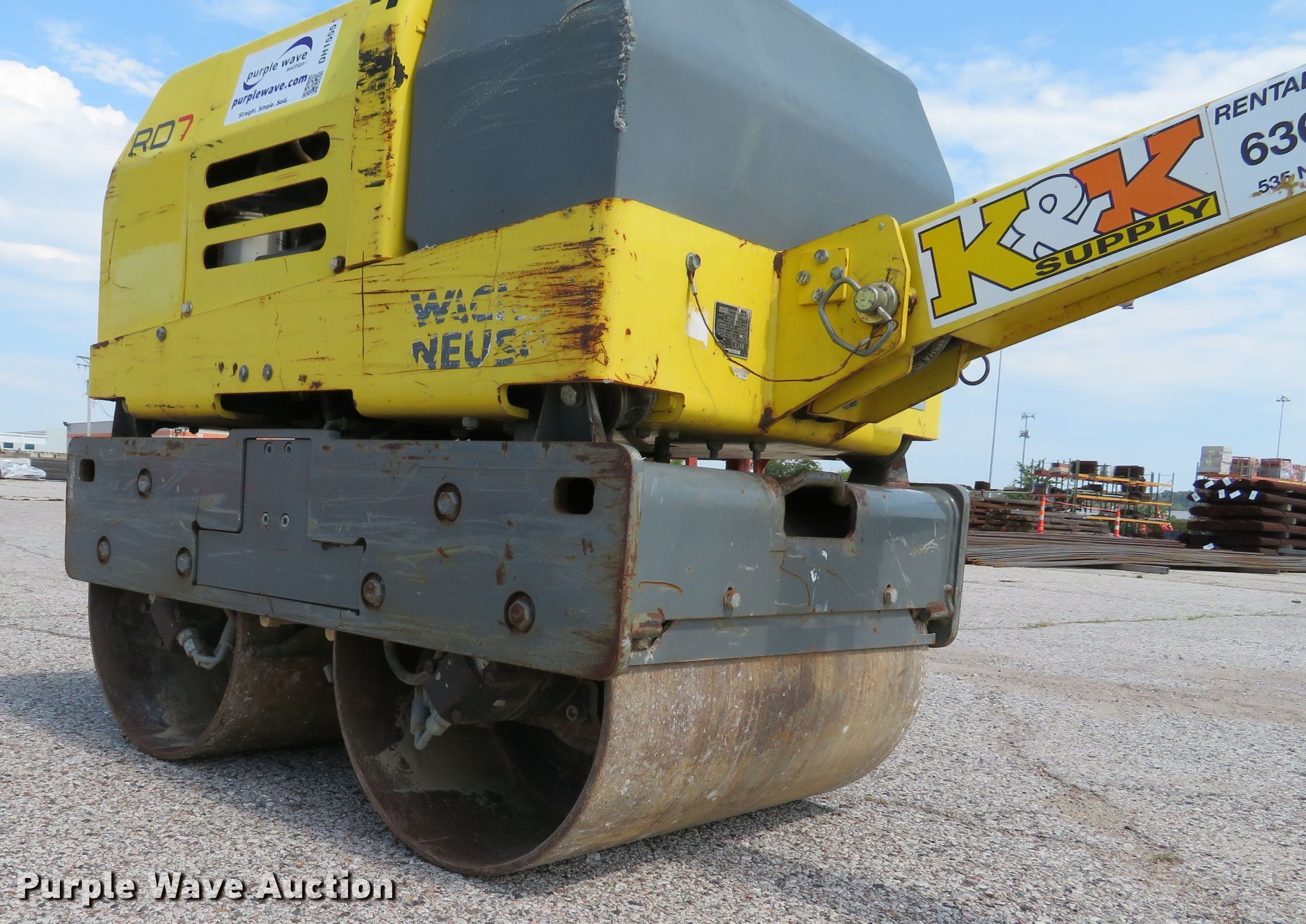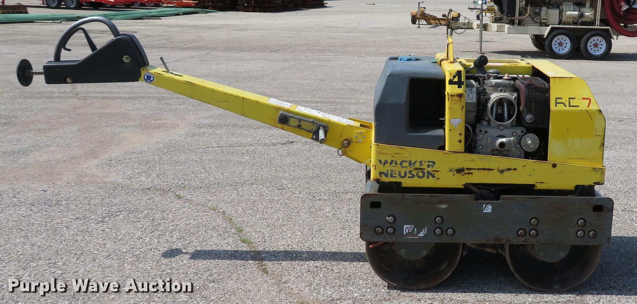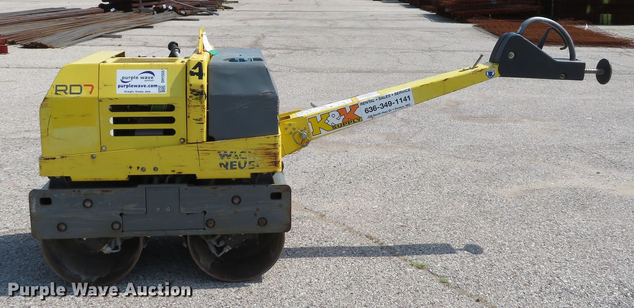 Purple Wave is selling a used Walk Behind Compactor in Missouri. This item is a 2014 Wacker Neuson RD7 double drum vibratory roller with the following: Hatz single cylinder diesel engine, Hydrostatic transmission, 25.5"W x 16" diameter smooth drums, Front and rear drum scrapers, Front and rear water application, Dual vibratory system, Serial 20079757, Unit# 4