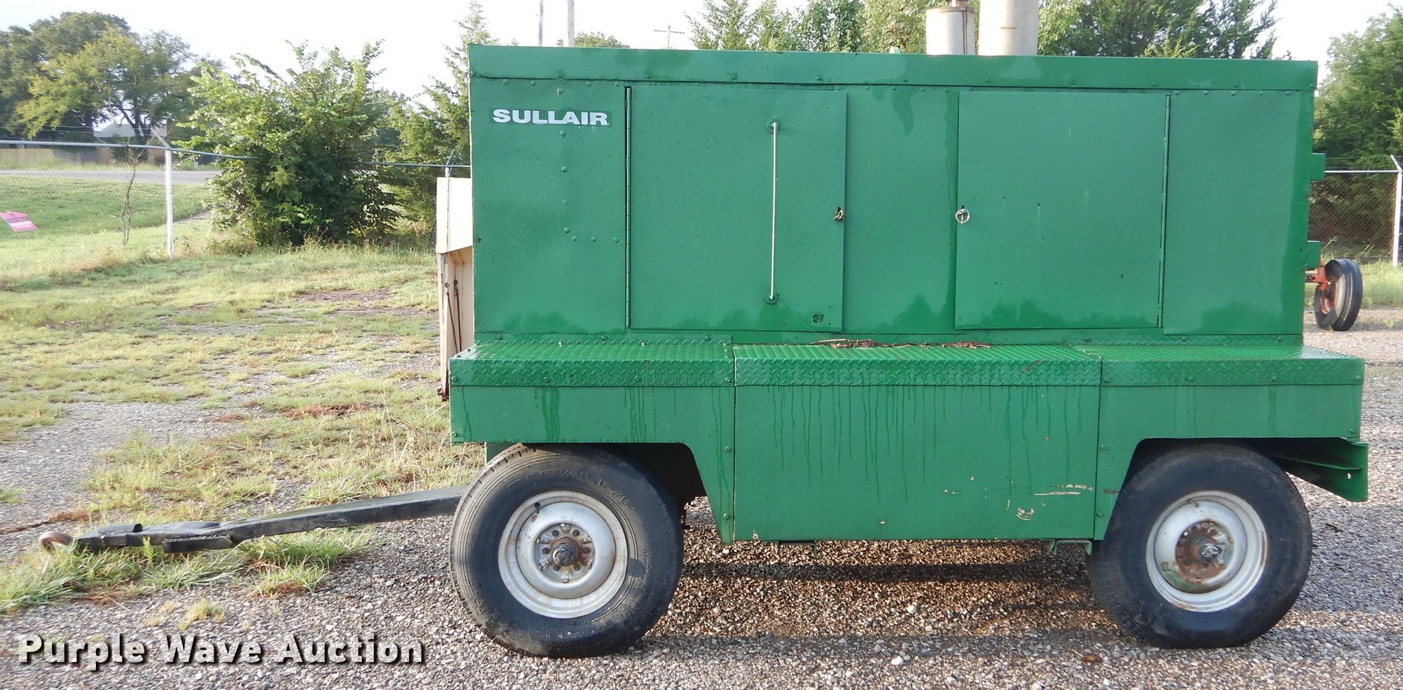 Purple Wave is selling a used Air Compressor in Oklahoma. This item is a Sullair air compressor with the following: 7 hours on meter, Detroit Diesel 6V71 six cylinder diesel engine, Sullair 750 CFM pump, 10'L x 75"W x 81.5"H, 7.50-16 tires