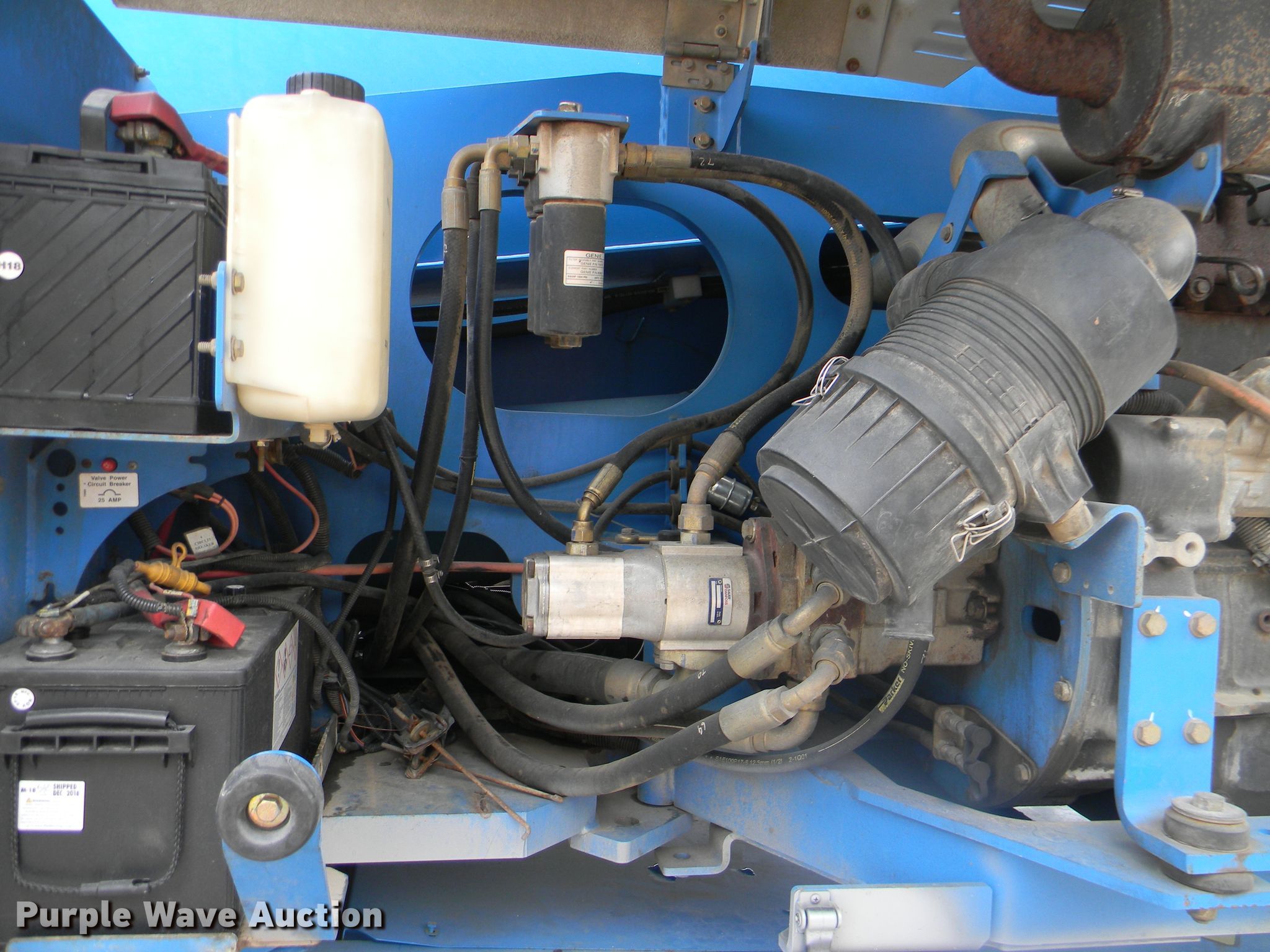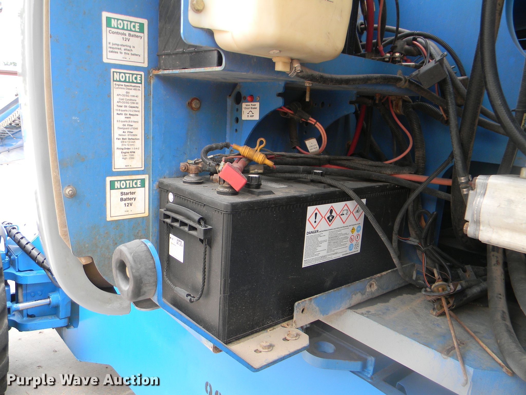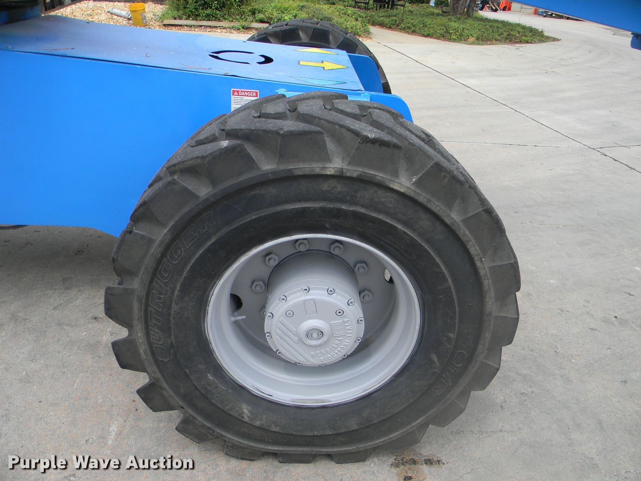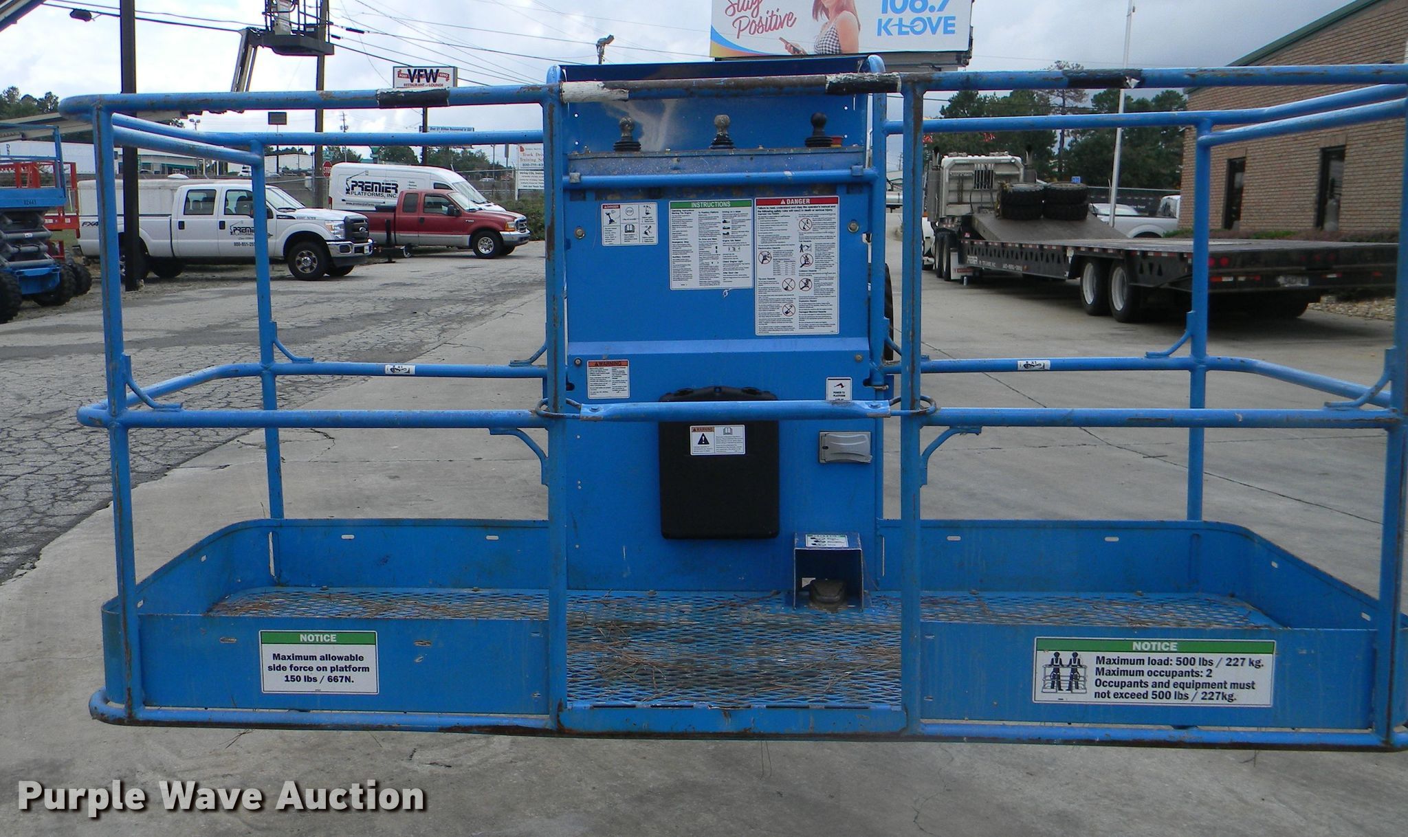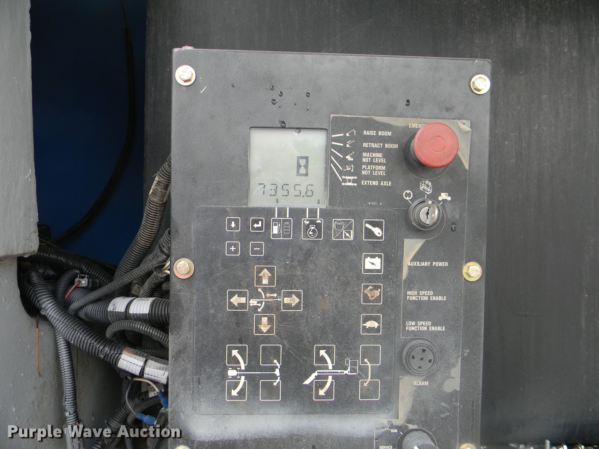 Purple Wave is selling a used Boom Lift in Georgia. This item is a 2002 Genie S-125 boom lift with the following: 7,355 hours on meter, Four cylinder diesel engine, Four wheel drive, 500 lbs maximum lift capacity, 80' maximum reach, 125' maximum lift height, Hydraulic extendable jib, 8'L x 3'W platform, AC power outlet, Platform and ground controls, Hydraulic platform rotation, 445/65D22.5 foam filled tires, Serial S125-457