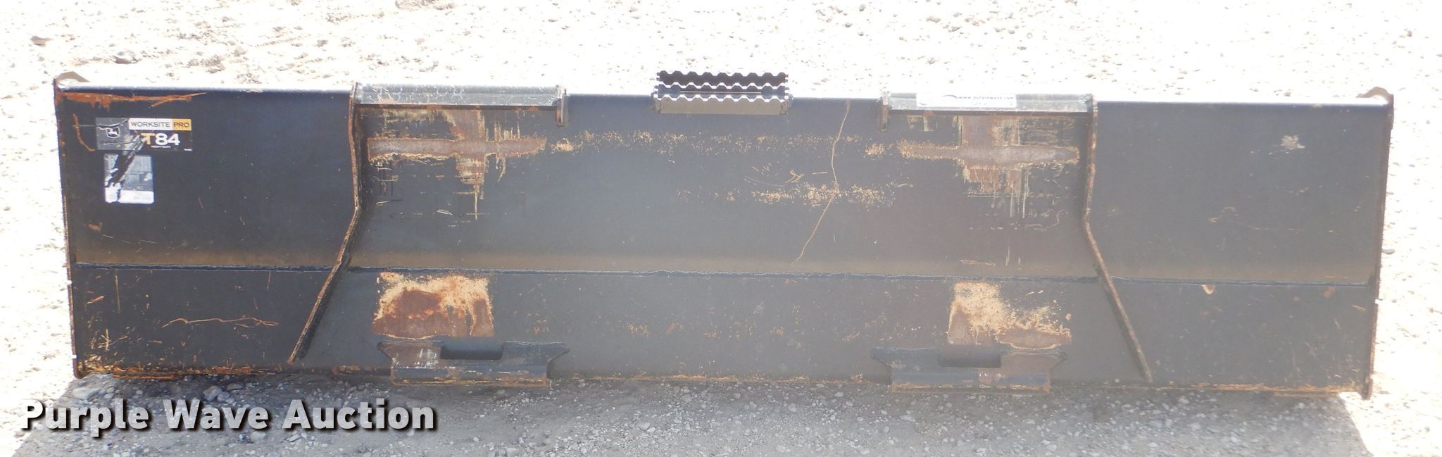 Purple Wave is selling a used Skid Steer Attach. in Kansas. This item is a John Deere T84 low profile skid steer bucket with the following: 84"W, Weld-on cutting edge, (8) weld-on teeth