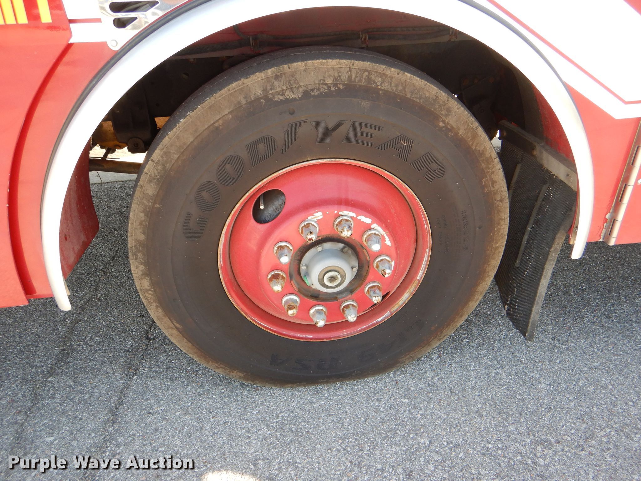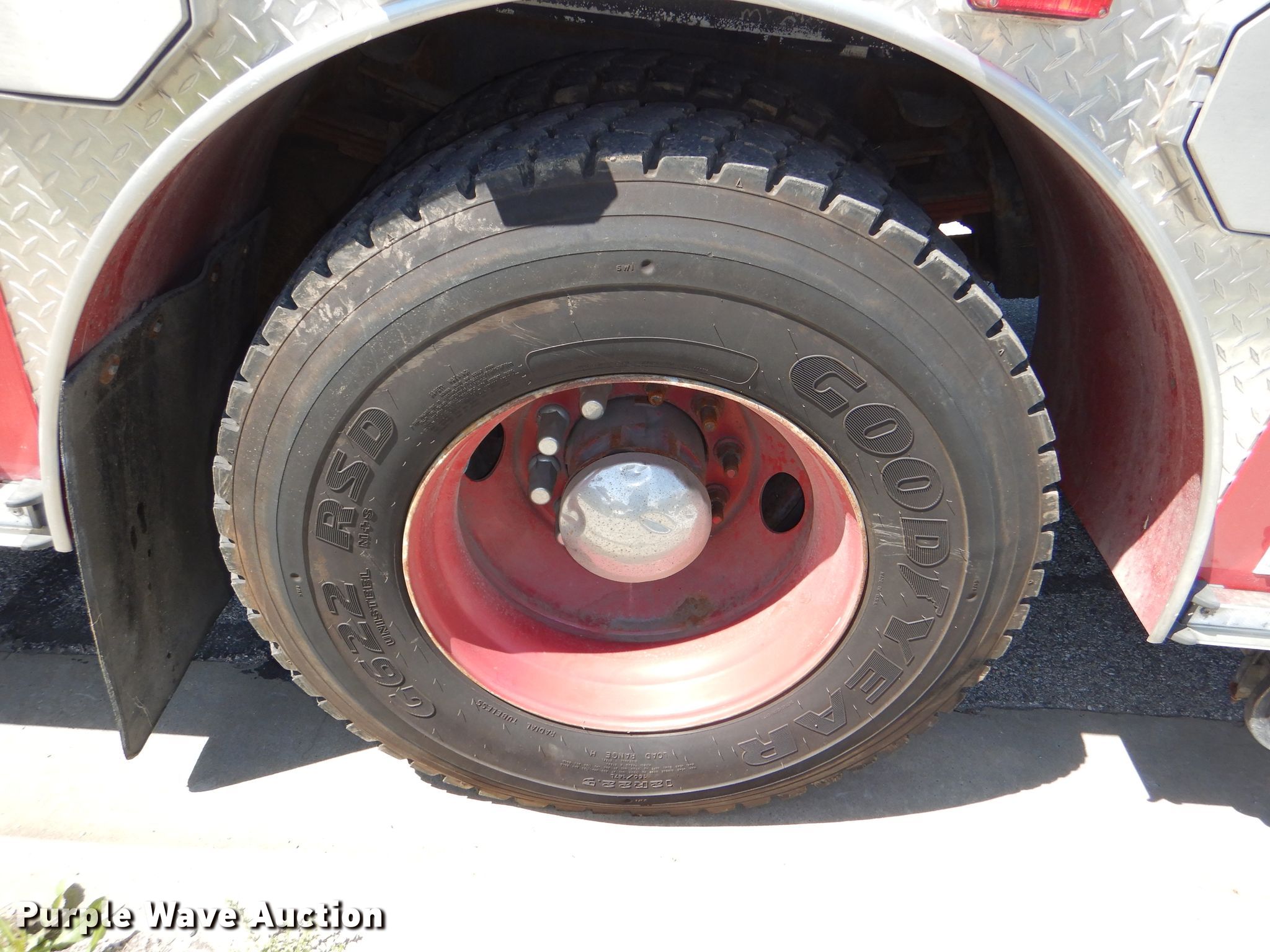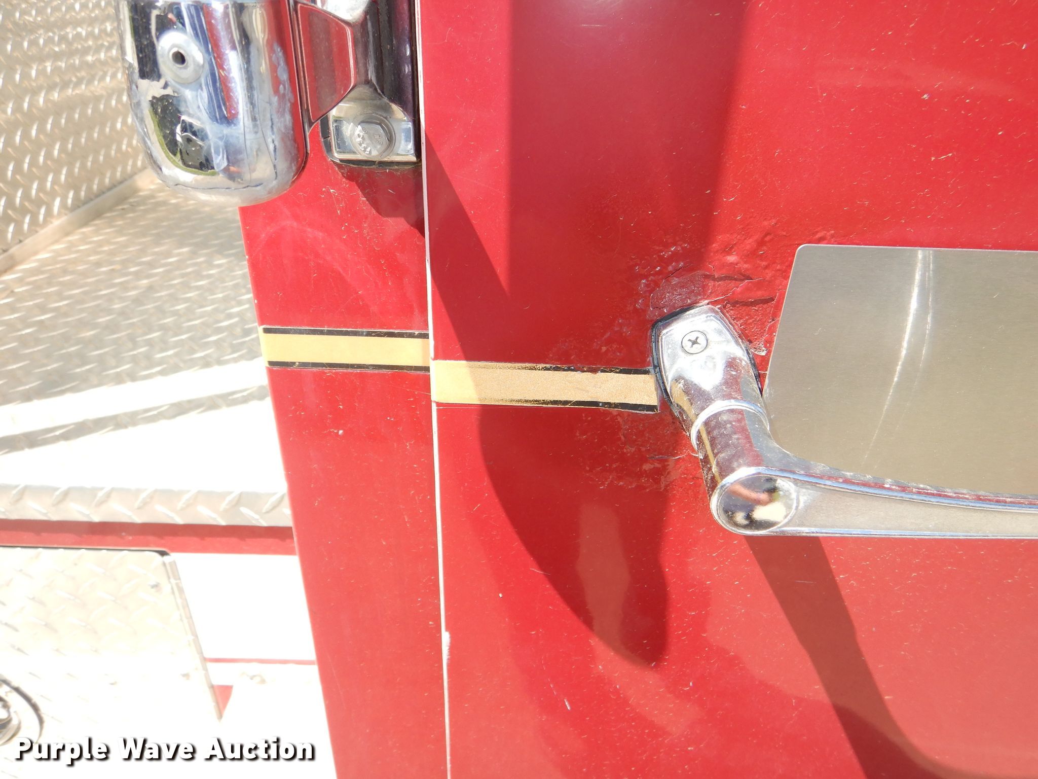 Purple Wave is selling a used Fire Truck or Emergency Vehicle in Kansas. This item is a 1996 E-one fire truck with the following: 81,078 miles on odometer, 7,306 hours on meter, Caterpillar 3116 6.6L L6 diesel engine, Automatic transmission, Single axle, Heat, Power windows, Federal Signal Corp PA300 CB, Emergency lights and sirens, Hale platform, Water gun, Hose reel, 100' of 1" hose, 75' hose, Work lights, Spring suspension, Air brakes, 195" wheelbase, Goodyear 12R22.5 tires, GVWR 37,800 lbs