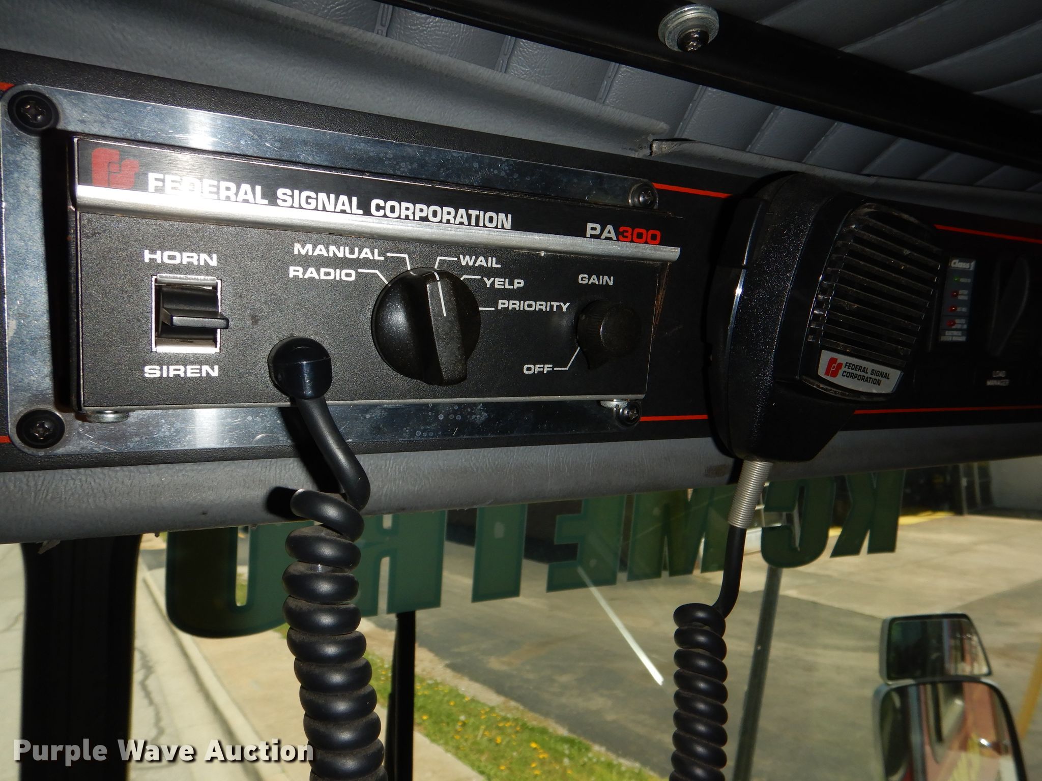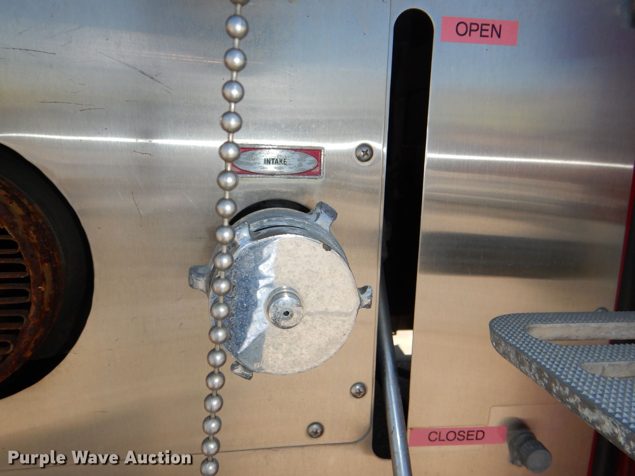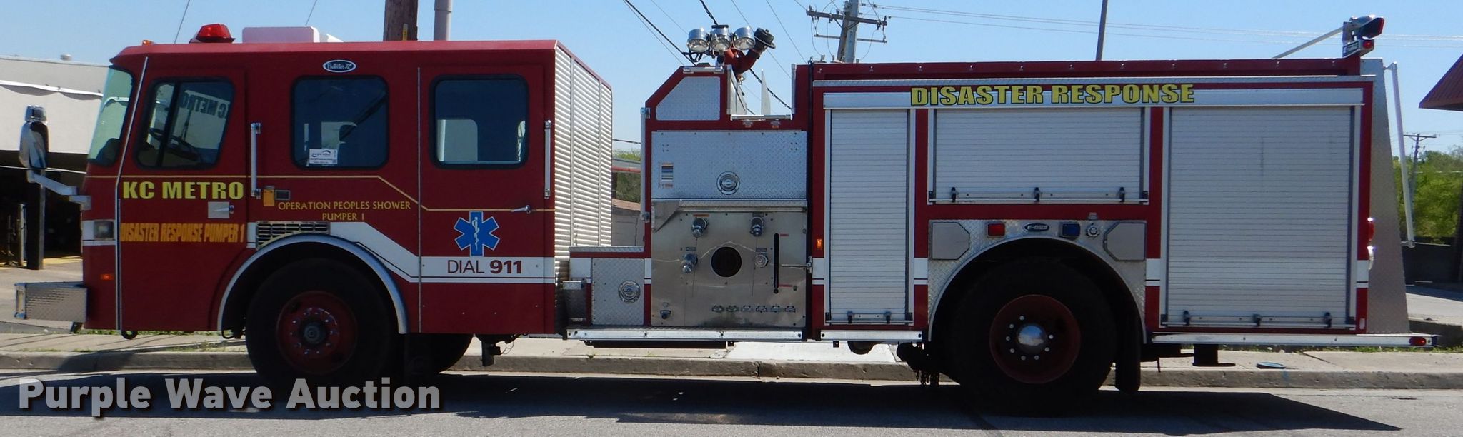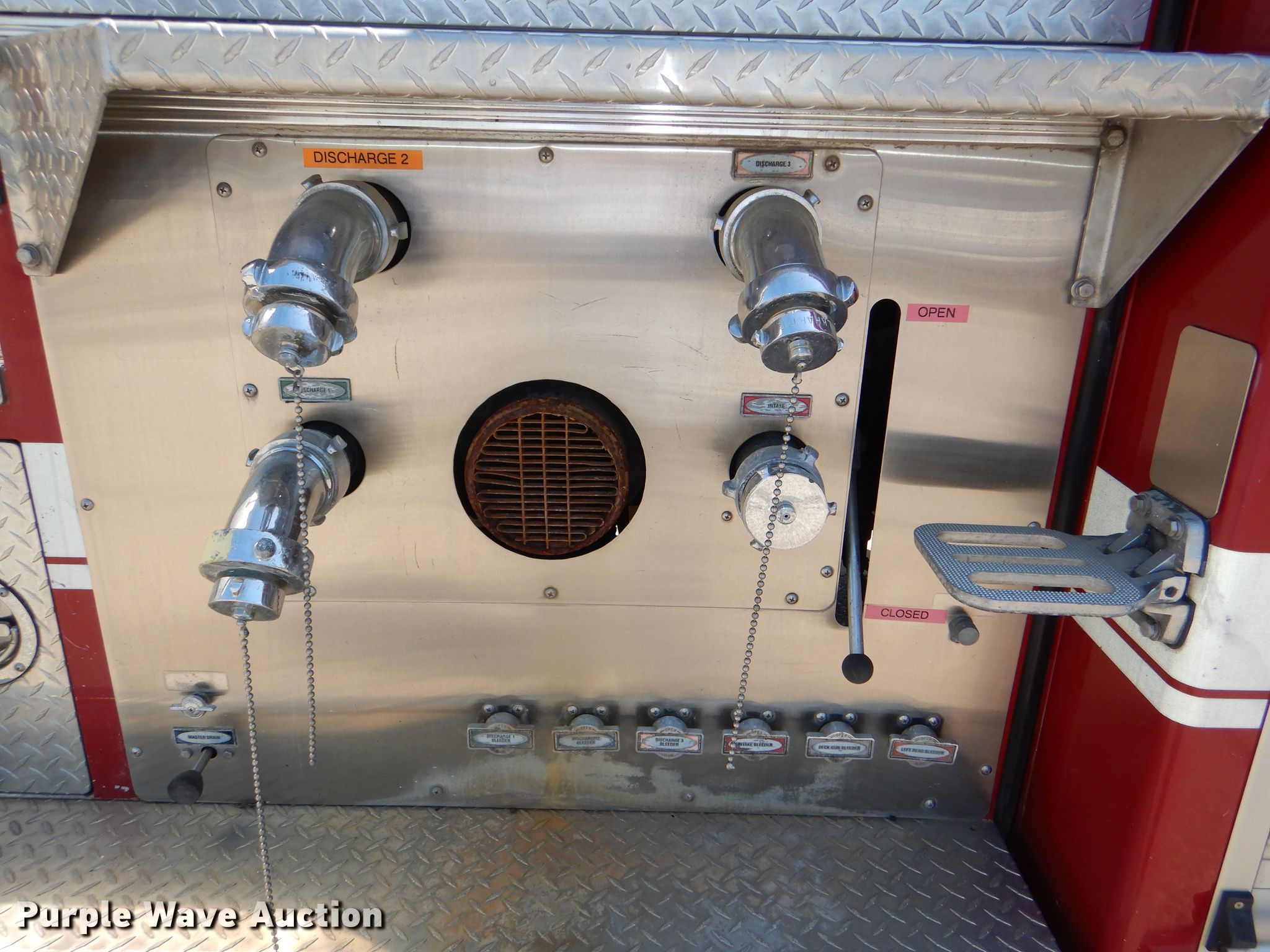 Purple Wave is selling a used Fire Truck or Emergency Vehicle in Kansas. This item is a 1996 E-one fire truck with the following: 81,078 miles on odometer, 7,306 hours on meter, Caterpillar 3116 6.6L L6 diesel engine, Automatic transmission, Single axle, Heat, Power windows, Federal Signal Corp PA300 CB, Emergency lights and sirens, Hale platform, Water gun, Hose reel, 100' of 1" hose, 75' hose, Work lights, Spring suspension, Air brakes, 195" wheelbase, Goodyear 12R22.5 tires, GVWR 37,800 lbs
