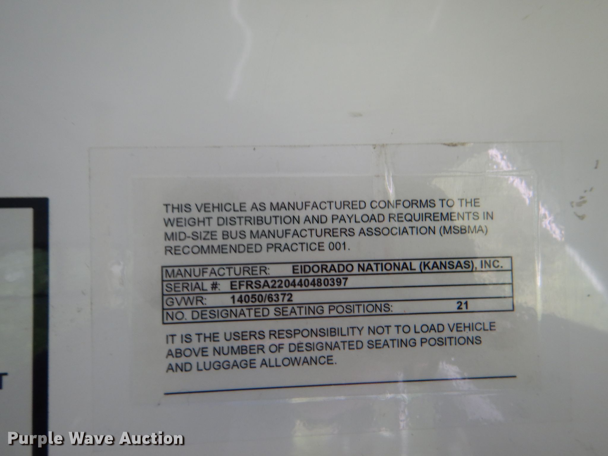 Purple Wave is selling a used Bus in Kansas. This item is a 2004 Ford Econoline E450 Super Duty shuttle bus with the following: 138,142 miles on odometer, 6.8L V10 SOHC 20V gas engine, Automatic transmission, Single axle, AC and heat, Cruise, 20 passenger capacity, Spring suspension, Hydraulic brakes, Goodyear 225/75R16 tires, GVWR 14,050 lbs, Dead battery, Unit# 25