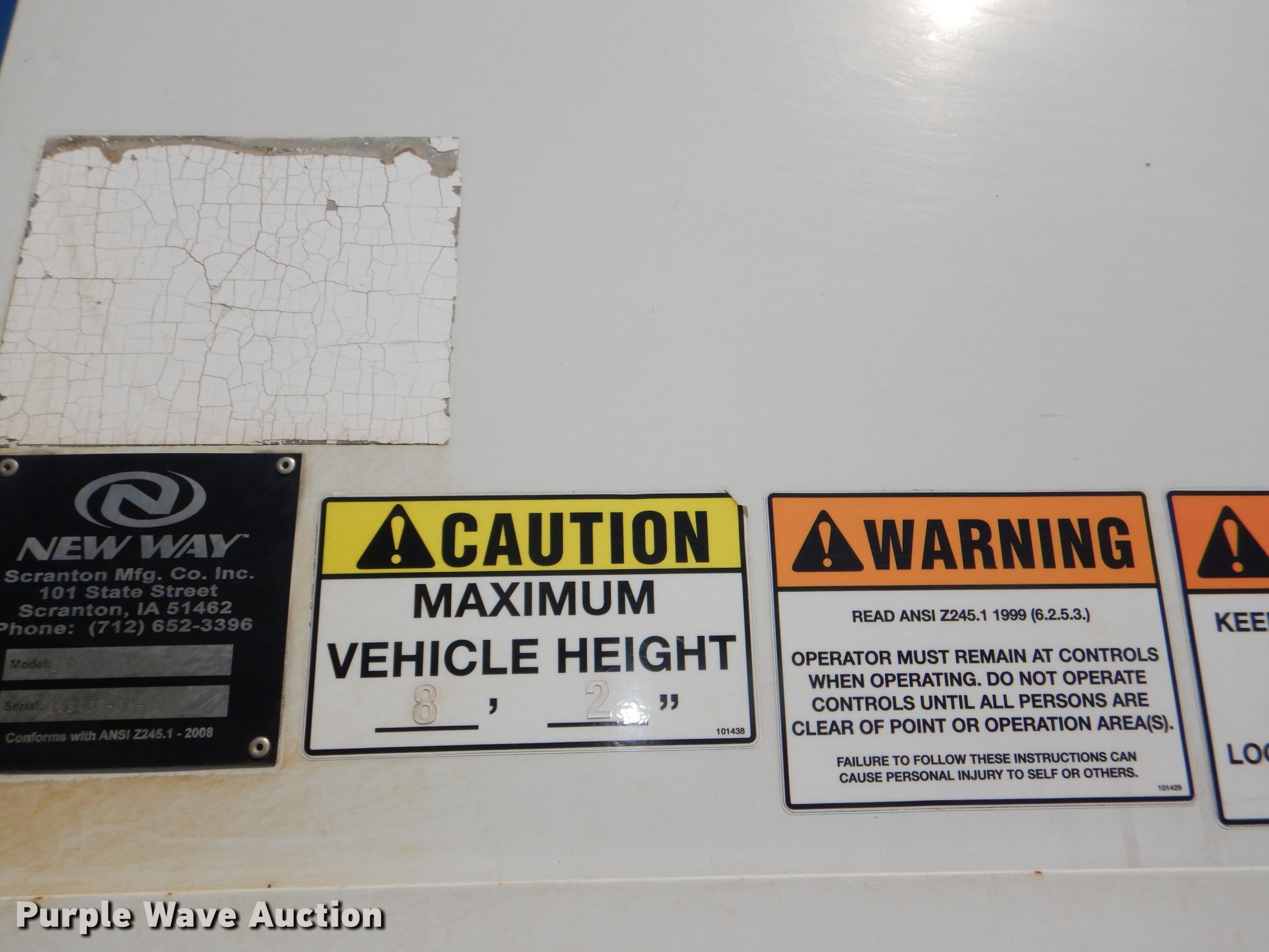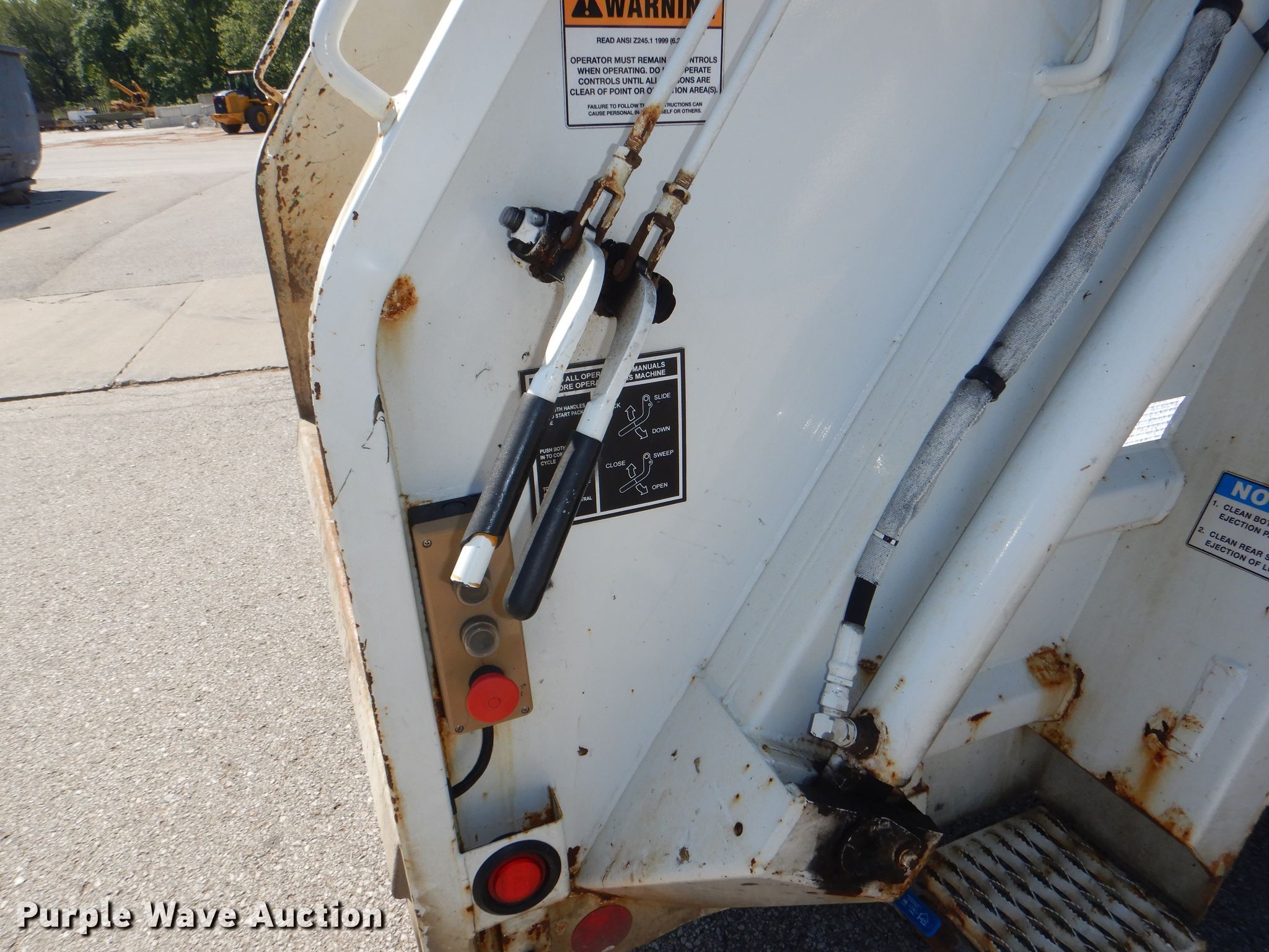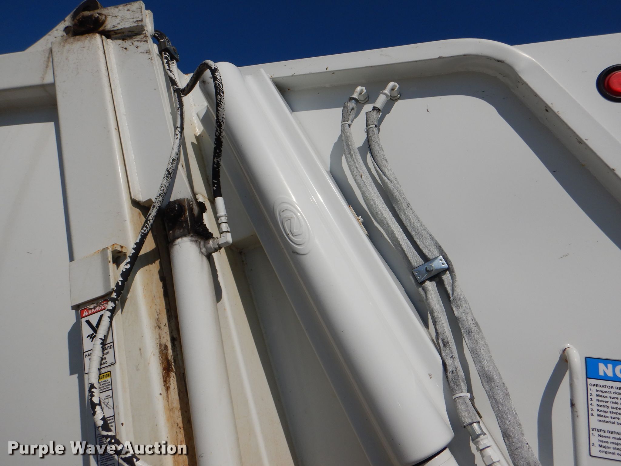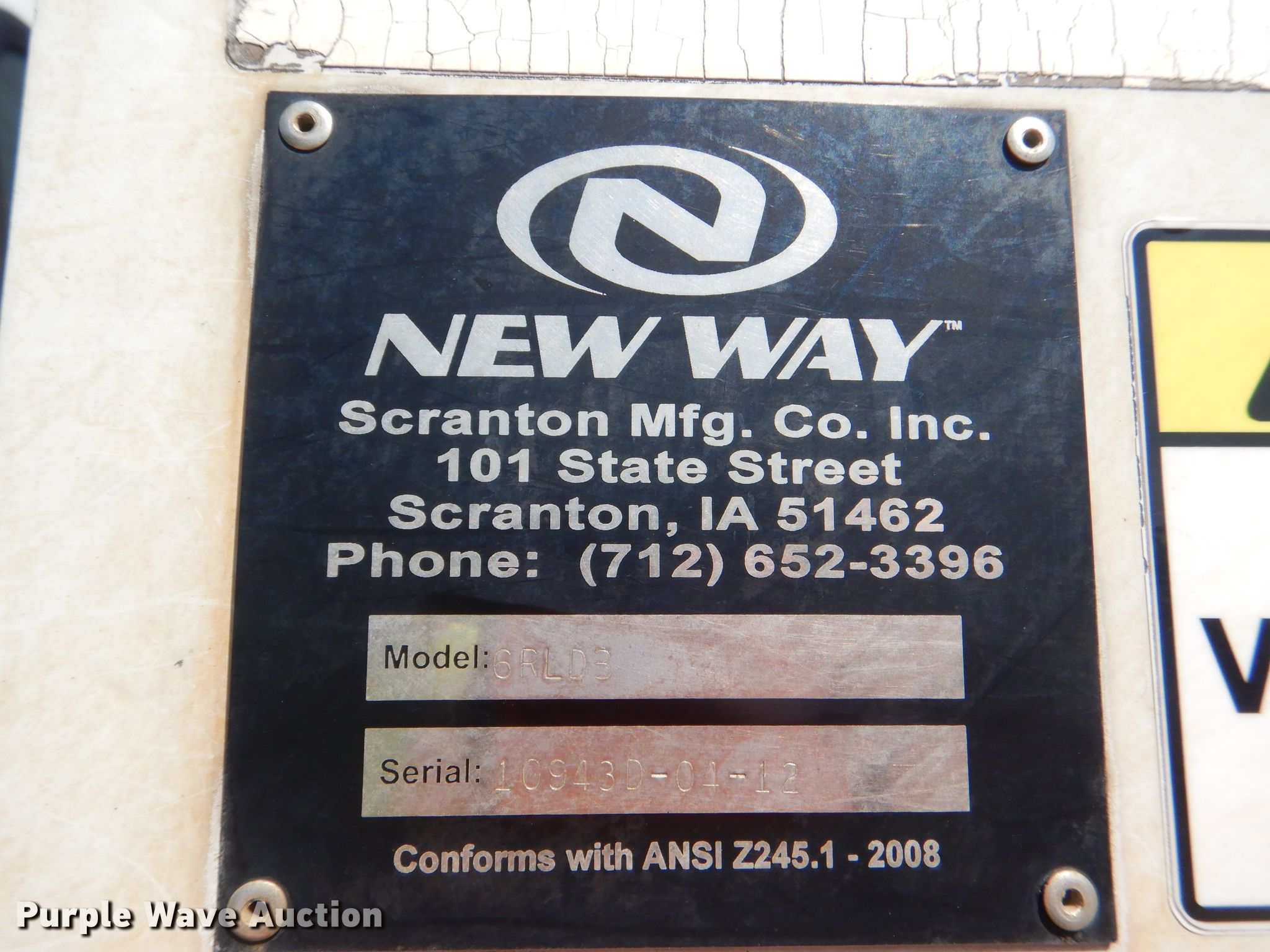 Purple Wave is selling a used Refuse Truck in Kansas. This item is a 2012 Isuzu NQR refuse truck with the following: 109,181 miles on odometer, Isuzu 4HK1-TC 5.2L L6 diesel engine, 210 HP, Automatic transmission, Single axle, AC and heat, Cruise, Power windows, Backup alarm, PTO, New Way 6RLD3 refuse bed, Rear load, Serial 10943D-04-12, Spring suspension, Hydraulic brakes, 118" wheelbase, 225/70R19.5 tires, GVWR 17,950 lbs, ABS light on