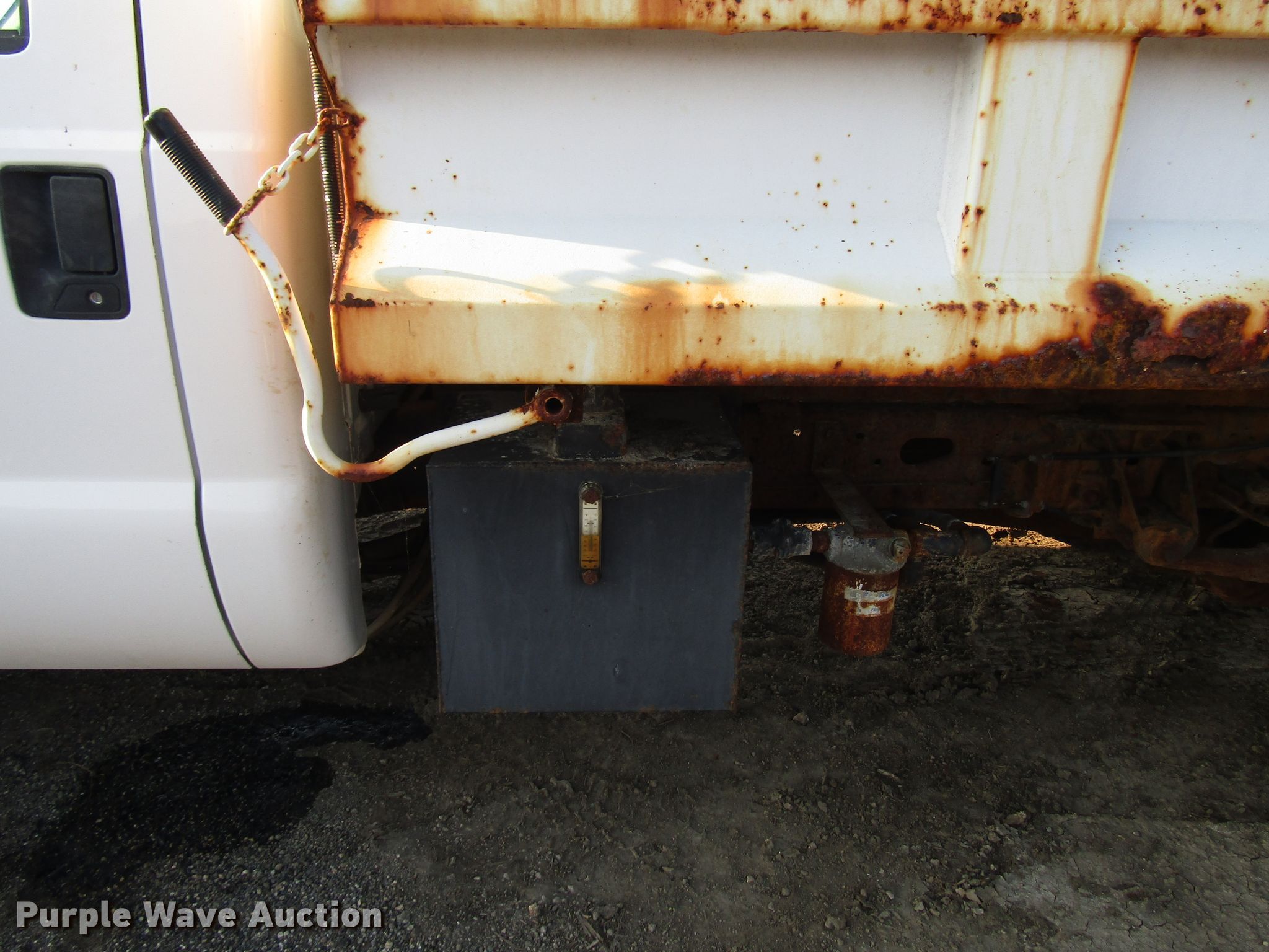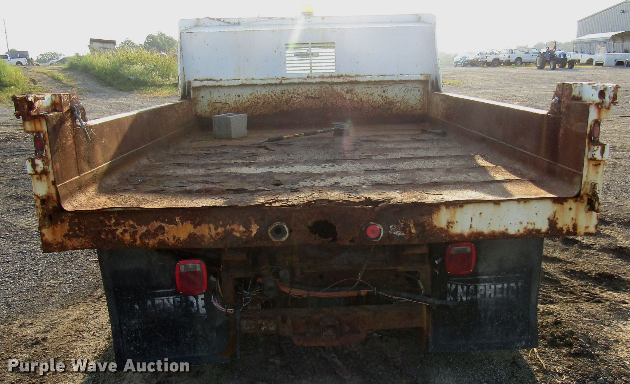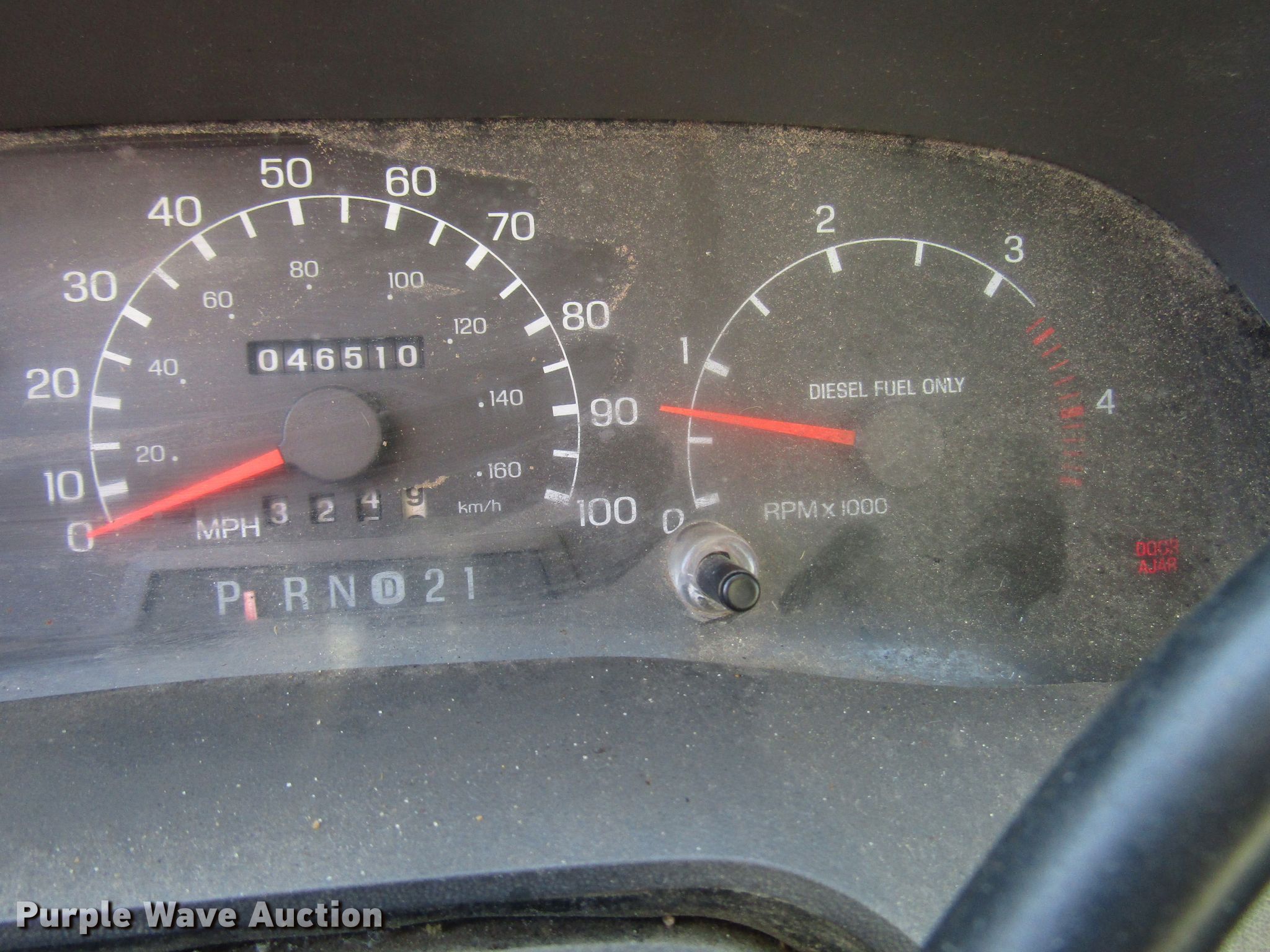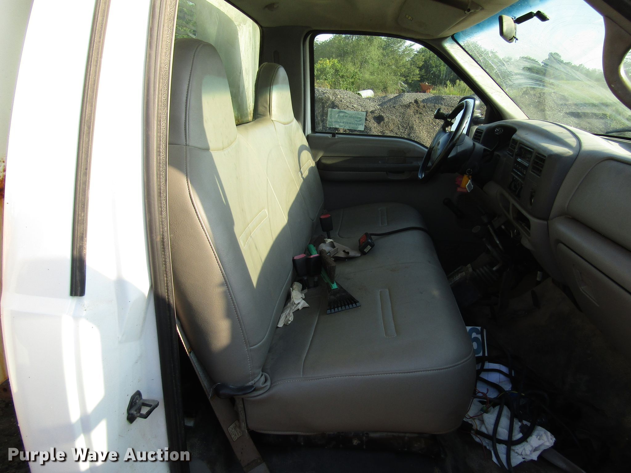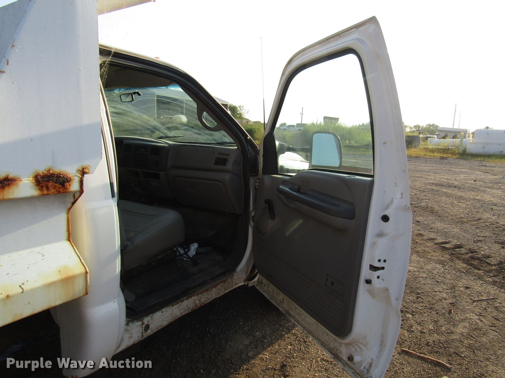 Purple Wave is selling a used Construction Dump Truck in Kansas. This item is a 1999 Ford F450 Super Duty dump truck with the following: 46,510 miles on odometer, 7.3L V8 diesel engine, Automatic transmission, Four wheel drive, Single axle, AC and heat, 11'L x 94"W steel dump bed, 12" side height, Single ram hoist, Hiniker 102"W plow, Spring suspension, Hydraulic brakes, 167" wheelbase, 225/70R19.5 tires, GVWR 15,000 lbs, Cracked windshield, AC does not blow cold, Hydraulic leaks, Possible brake issues