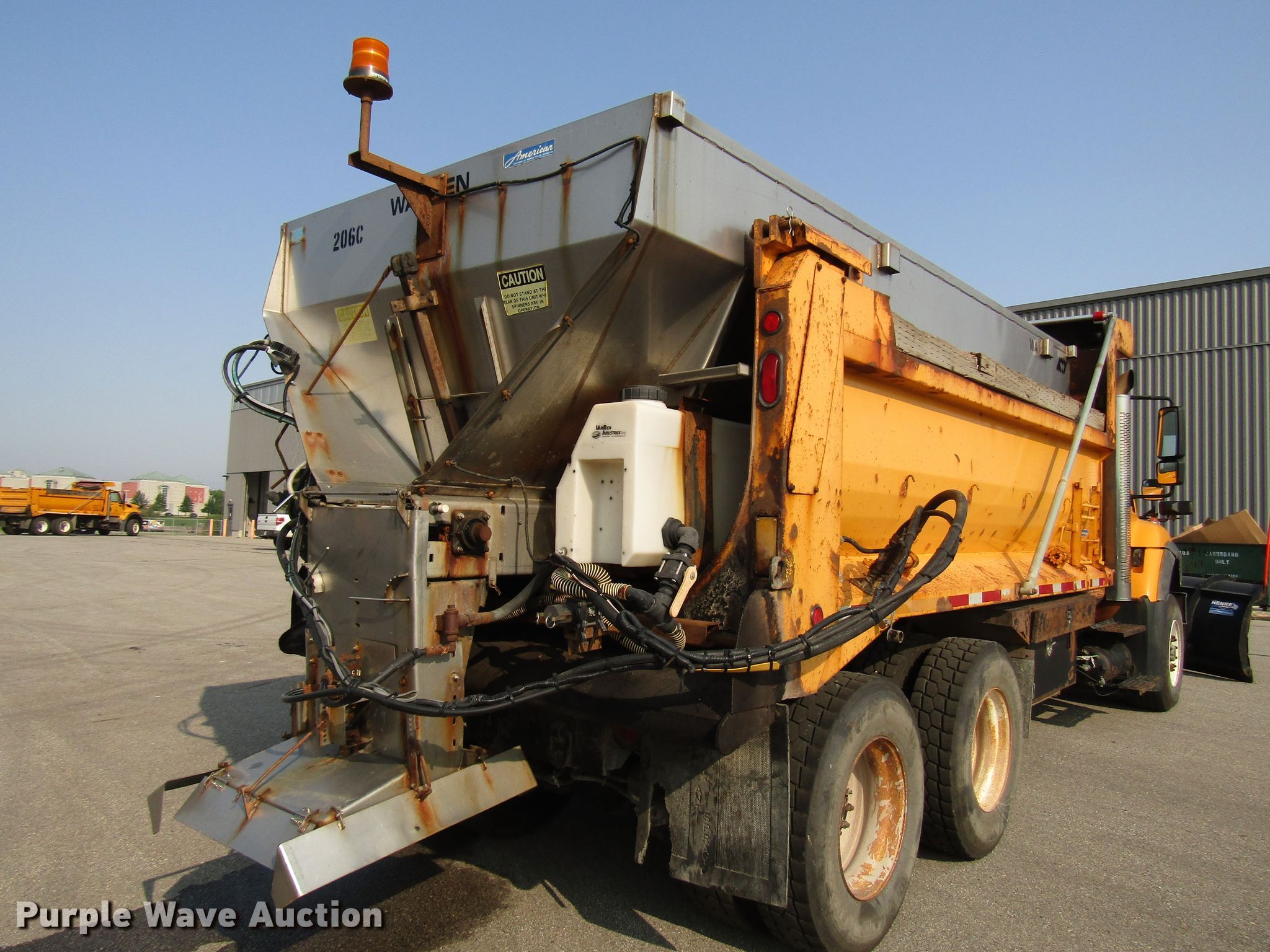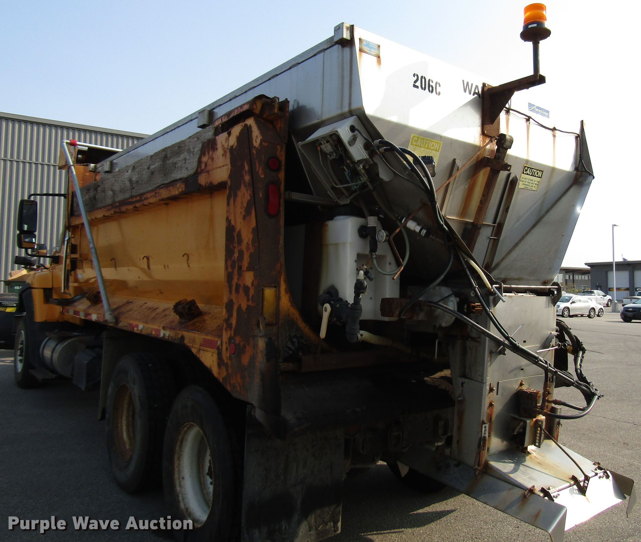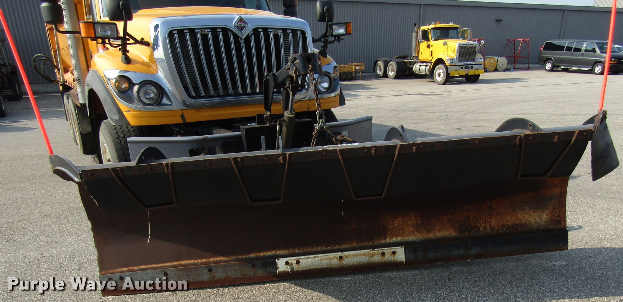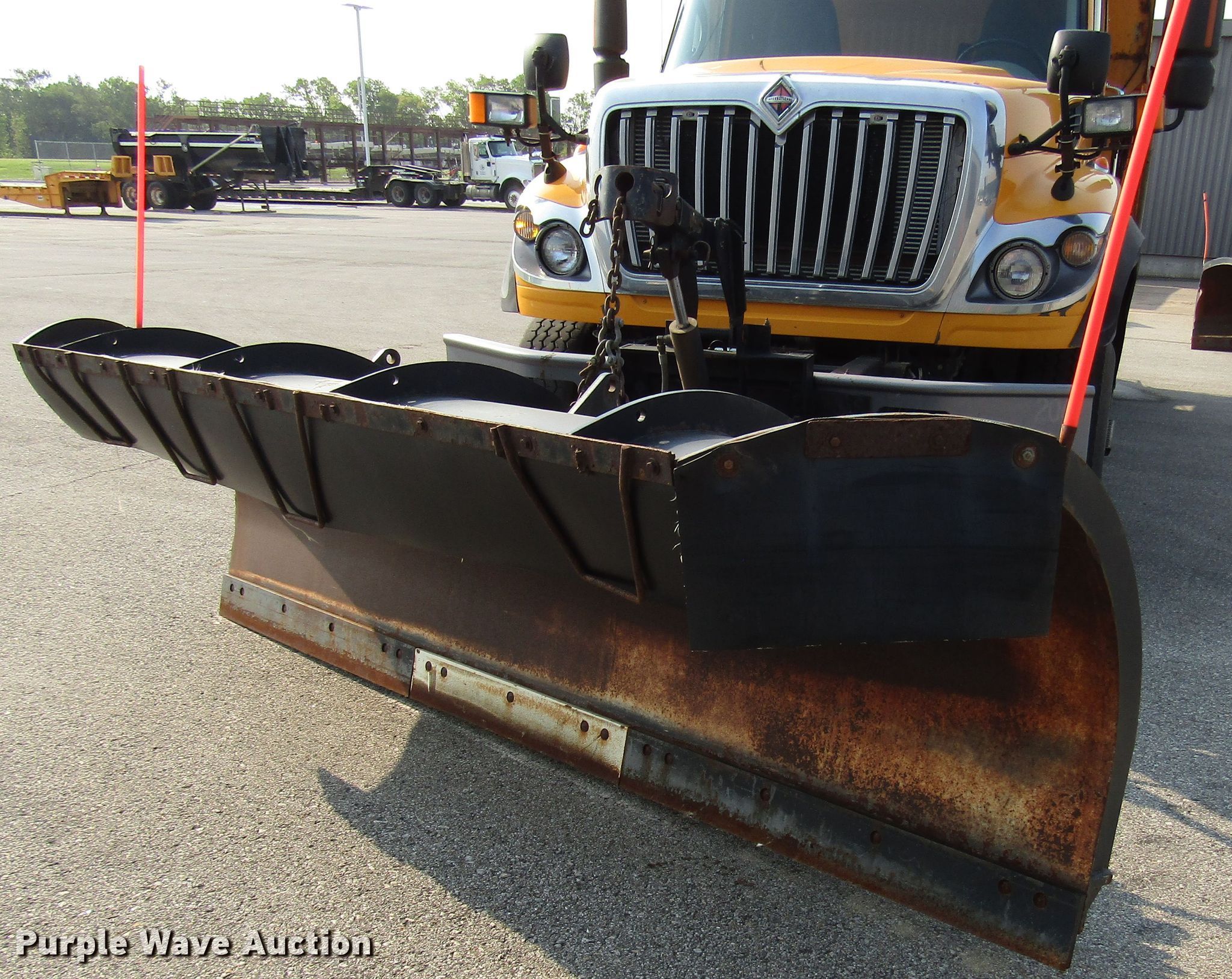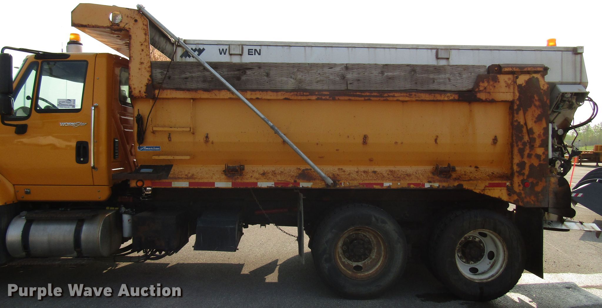 Purple Wave is selling a used Construction Dump Truck in Kansas. This item is a 2008 International 7600 dump truck with the following: 179,143 miles on odometer, 7,634 hours on meter, Caterpillar C13 12.5L L6 diesel engine, Automatic transmission, Tandem axle, Inter-axle differential lock, AC and heat, Front mounted PTO, Warren steel dump bed, 15'L x 96"W, 42" side height, 12" side board height, Single ram hoist, Manual operated end gate, Roll tarp, Warren spreader, Henke 11'W snow plow, Double frame, Spring suspension, Air brakes, 385/65R22.5 front tires, 11R22.5 rear tires, GVWR 58,000 lbs, FAWR 18,000 lbs, IAWR 20,000 lbs, RAWR 20,000 lbs