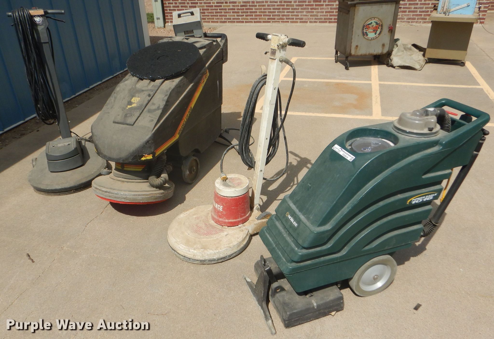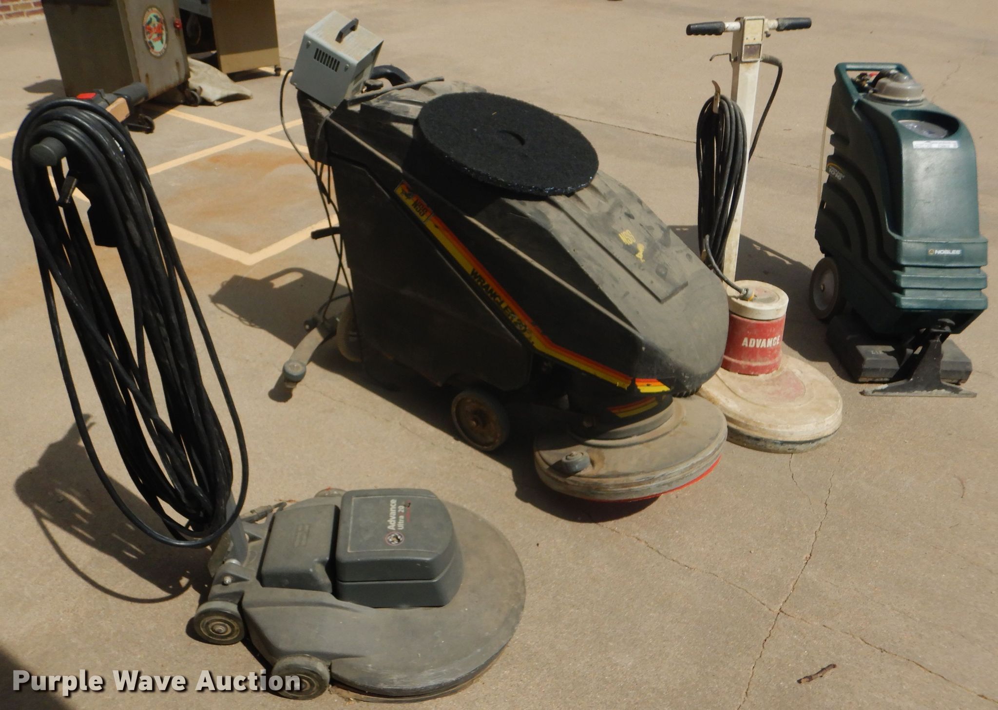 Purple Wave is selling a used All Other Household Items in Kansas. This item is a Cleaning equipment with the following: Nobles Power Eagle 1016 carpet cleaner, Advance Matador M20S floor buffer, 115V, NSS Wrangler 20, 24V, Charger, Advance Ultra 20 floor buffer, Unknown operating condition