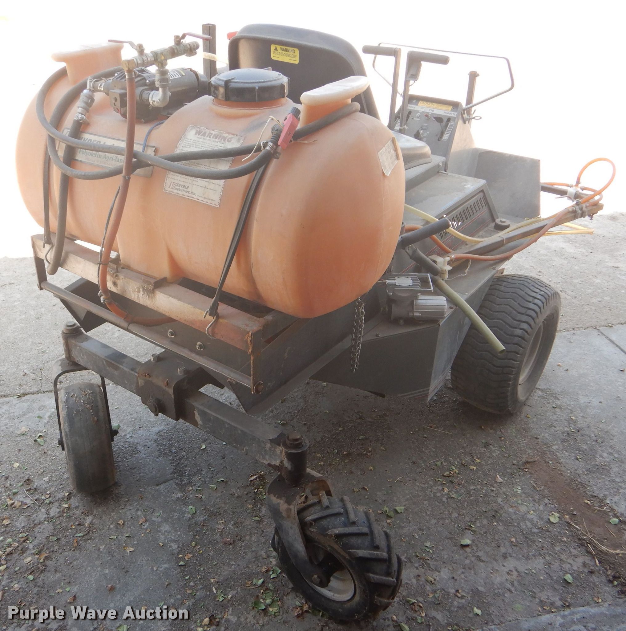 Grazer G1890V ZTR lawn mower. 474 hours on meter, Briggs & Stratton Vanguard gas engine 18 HP, Hydrostatic transmission, Front mounted spray boom 9' boom length, 36" nozzle spacing, 18 x 9.50-8 front tires, 13 x 5.00-6 rear tires, No deck, Unknown operating condition , Unit has not been used in one year. USD 275. 502 Wilson Ave. Winona, KS 67764