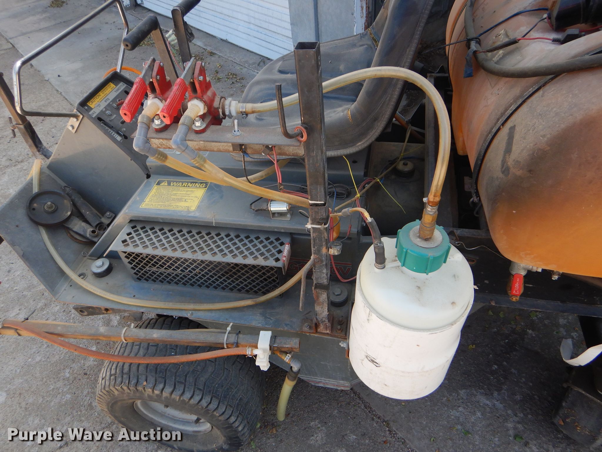 Purple Wave is selling a used Lawn Mower in Kansas. This item is a Grazer G1890V ZTR lawn mower with the following: 474 hours on meter, Briggs & Stratton Vanguard gas engine, 18 HP, Hydrostatic transmission, Front mounted spray boom, 9' boom length, 36" nozzle spacing, 18 x 9.50-8 front tires, 13 x 5.00-6 rear tires, No deck, Unknown operating condition, Unit has not been used in one year