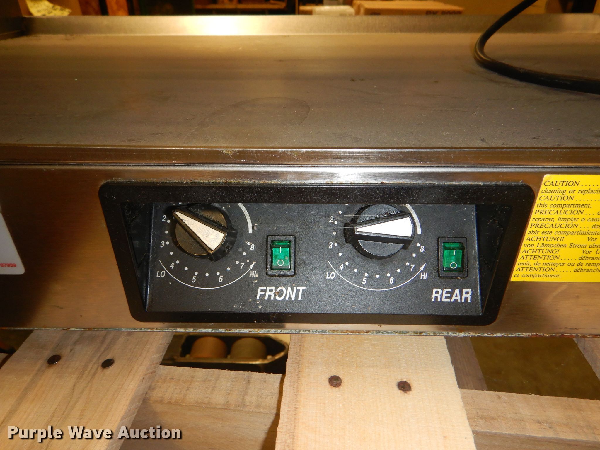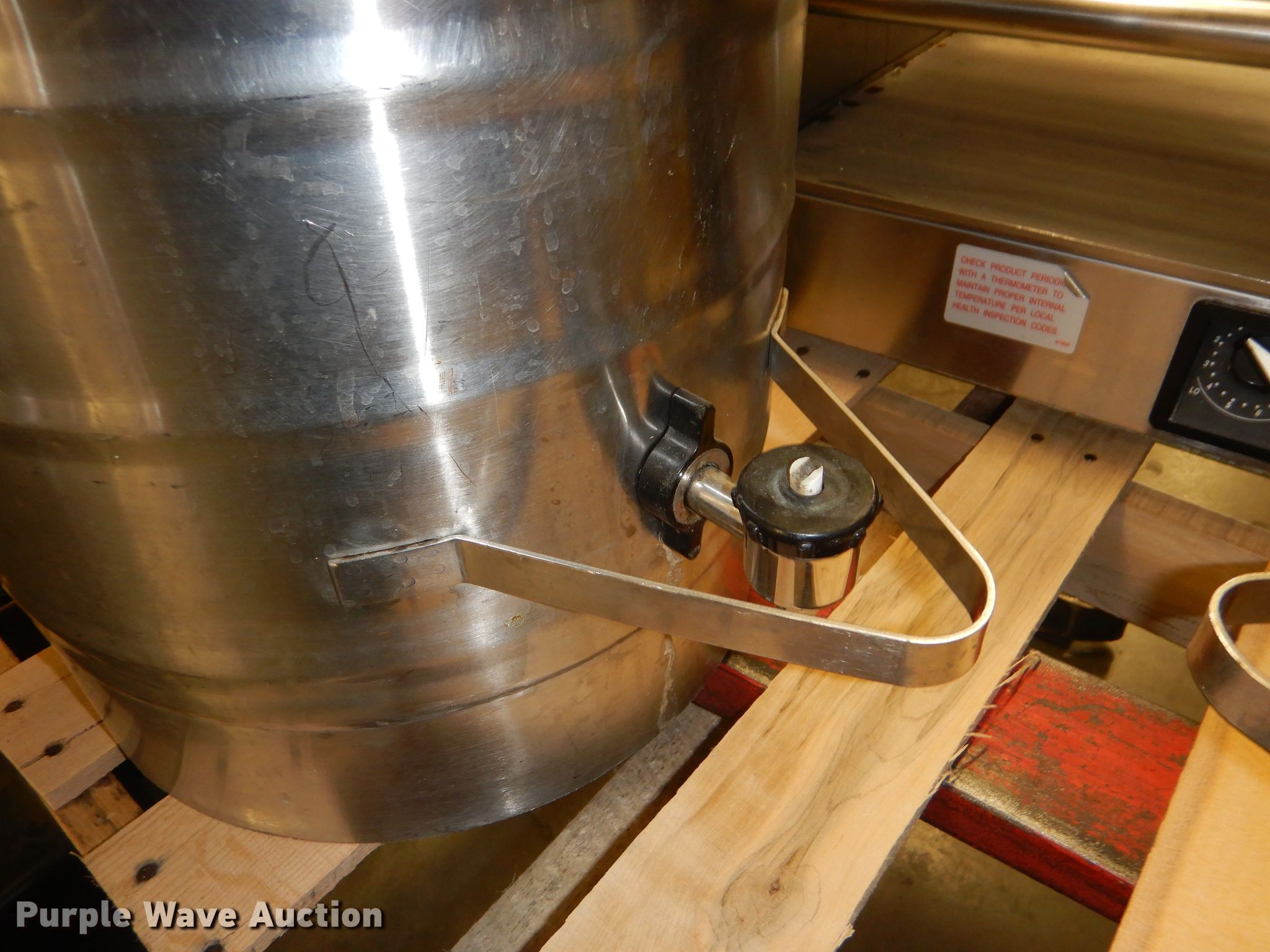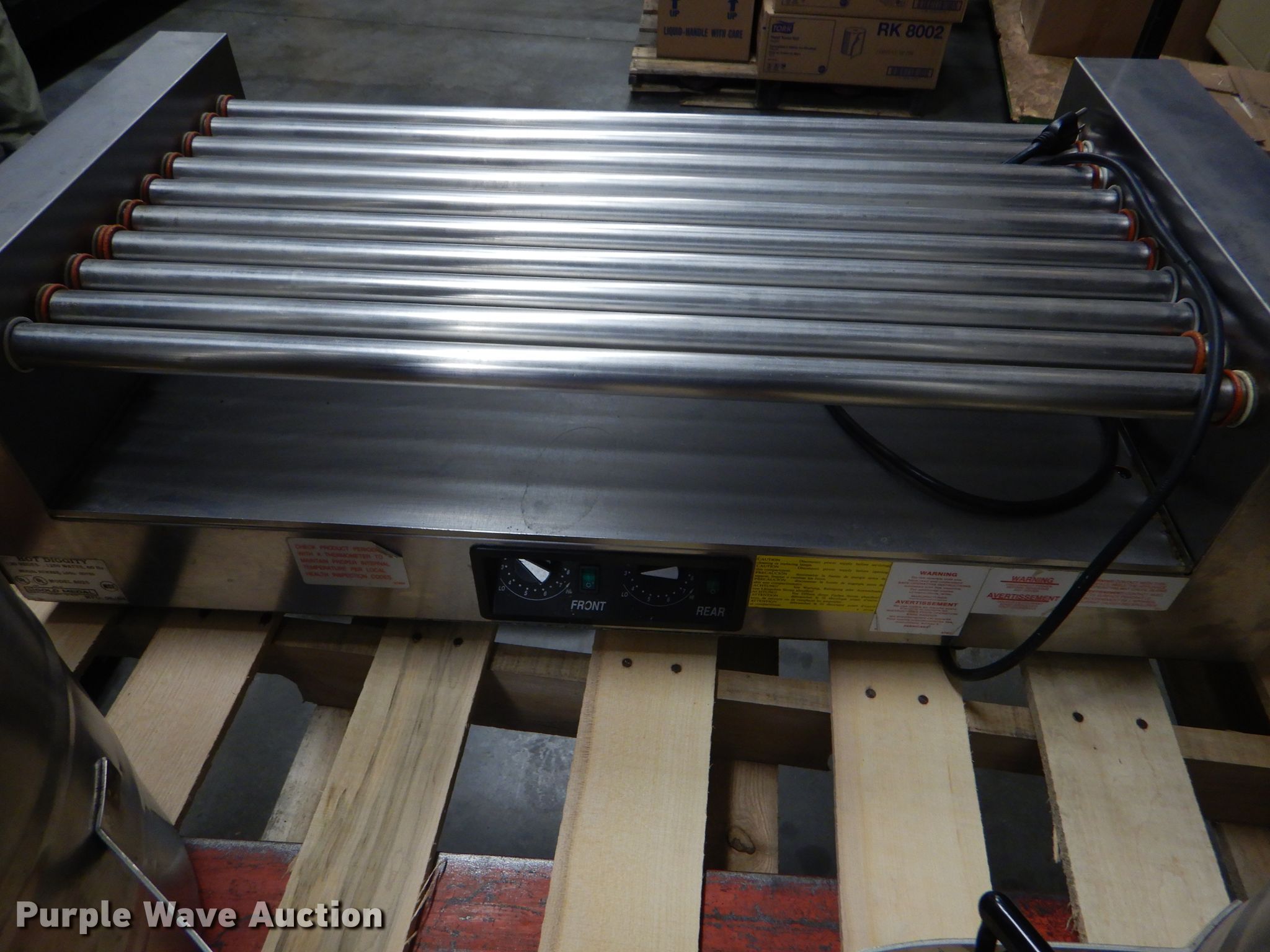 Purple Wave is selling a used Restaurant Equip. in Kansas. This item is a Restaurant equipment with the following: Gold Metal 8025 hotdog roller, 29" x 15" cooking surface, 120V, (2) stainless steel insulated drink dispensers, One spout handle broken