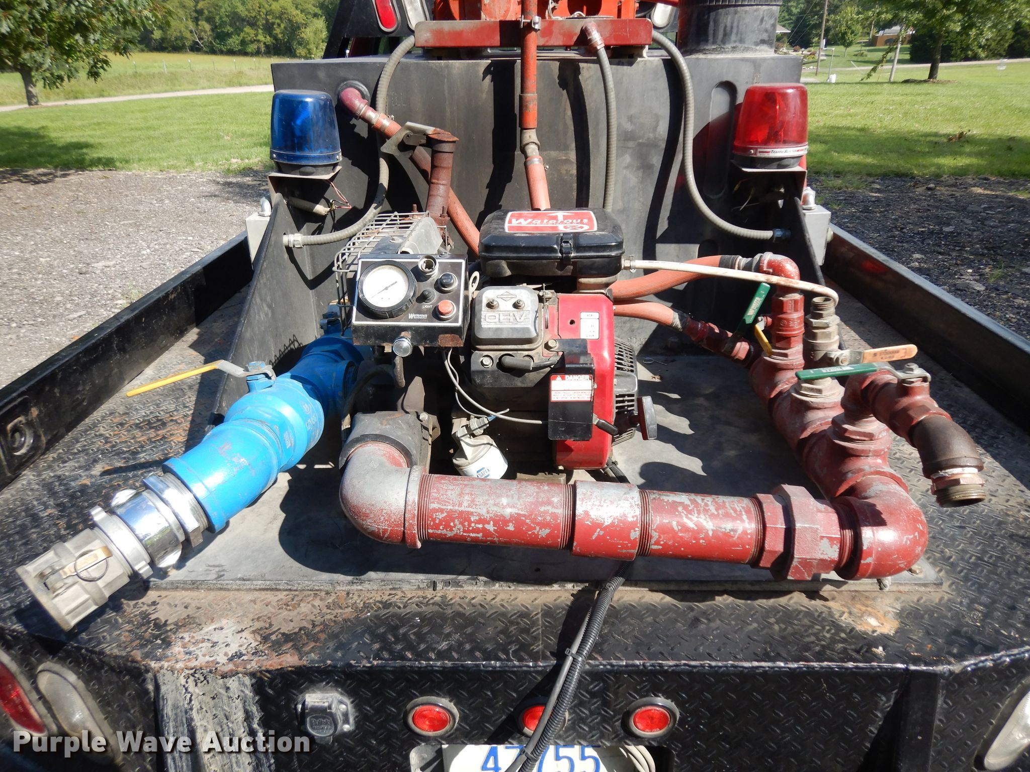 Purple Wave is selling a used Fire Truck or Emergency Vehicle in Kansas. This item is a 1990 Ford F350 brush fire truck with the following: 37,465 miles on odometer, 7.5L V8 OHV 16V gas engine, Automatic transmission, Four wheel drive, Single axle, Heat, Front winch mount, 250 gallon poly water tank, 150 gpm pump, 18 HP gas pump engine, Hannay hose reel, 100'L hose, 1" nozzle,, Spring suspension, Hydraulic brakes, 33x13.5-16 tires, GVWR 9,000 lbs, Two way radio not included, Headsets not included