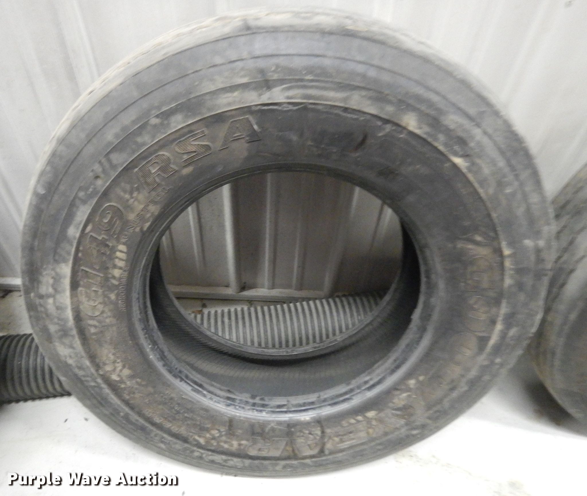 Purple Wave is selling a used Fleet Tires in Kansas. This item is a (3) 12R22.5 tires with the following: (2) Goodyear, Michelin