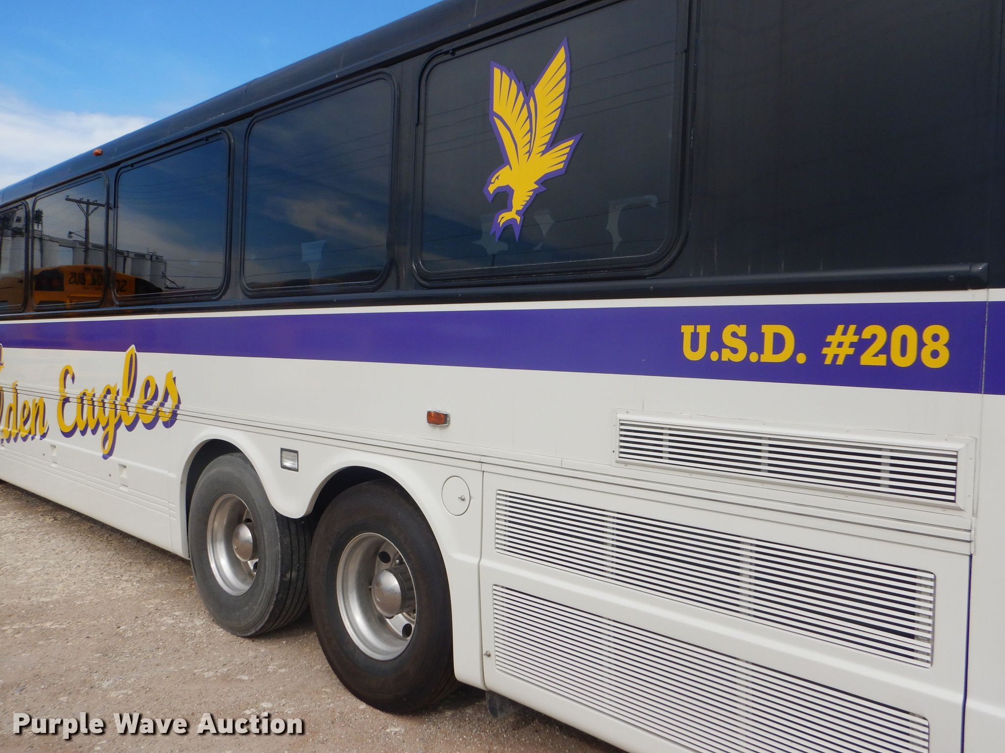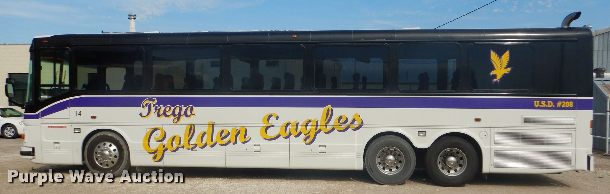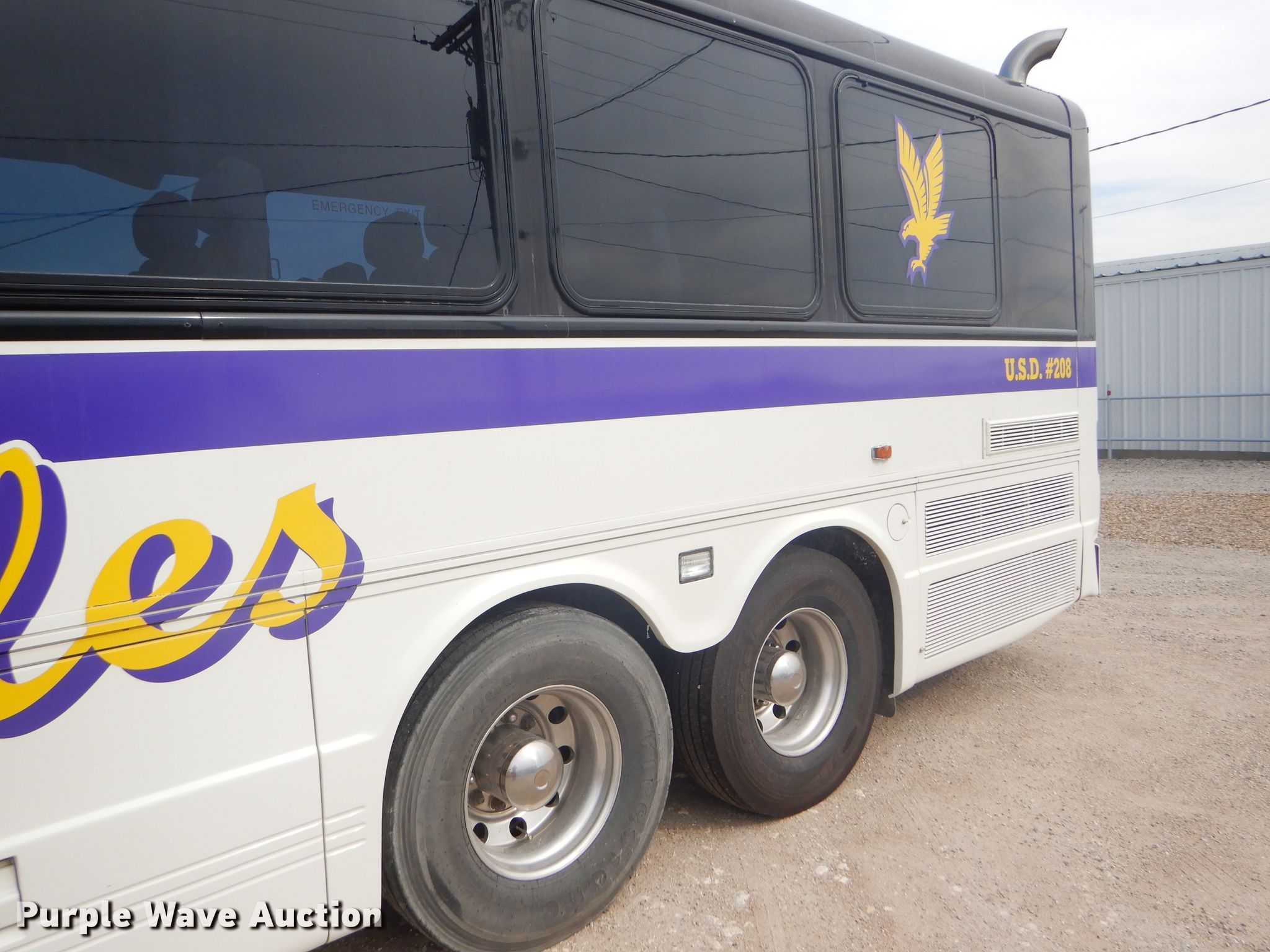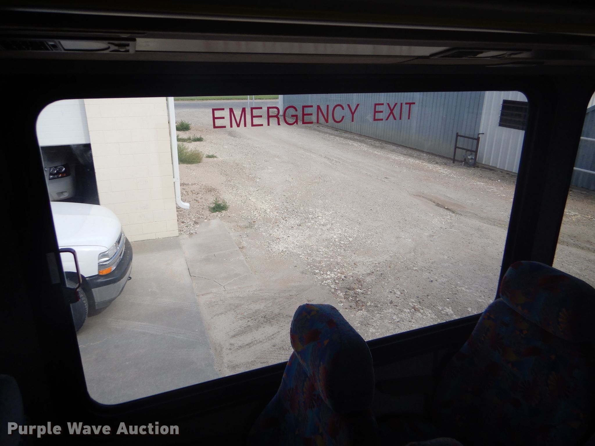 2000 Blue Bird LTC-40 coach bus. 2,835 hours on meter, Unknown miles on odometer, Cummins ISM 10.8L L6 diesel engine, Allison automatic transmission, Tandem axle, AC and heat, Auxiliary controls, Backup camera, Electric passenger sliding door, 47 passenger capacity, 315/80R22.5 tires, GVWR 48,600 lbs, Tag axle GAWR 13,200 lbs, Odometer has been replaced, Non-operational AC Possible refrigerant leak, Decals will be removed prior to auction. Kansas title. 1BAGNBJA5YF200443. USD 208 WaKeeney. 527 Russell Ave. WaKeeney, KS 67672