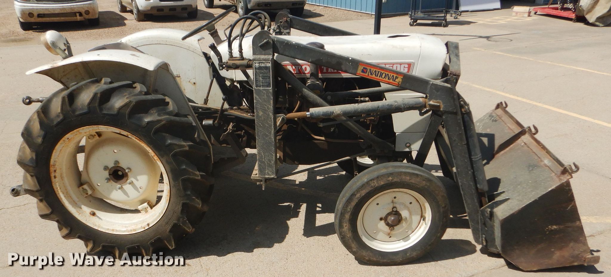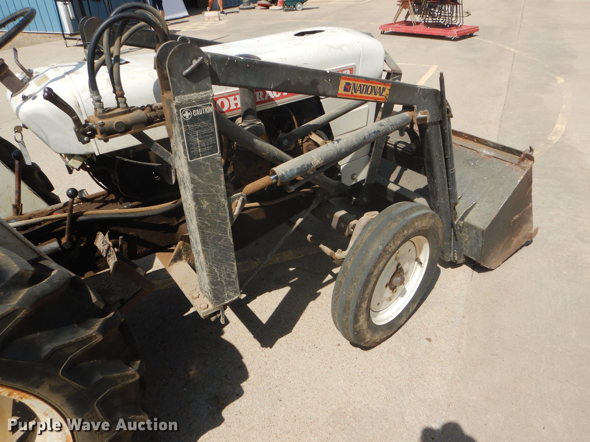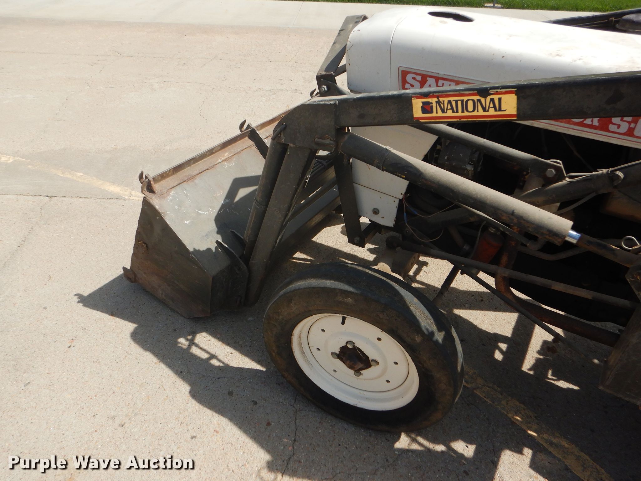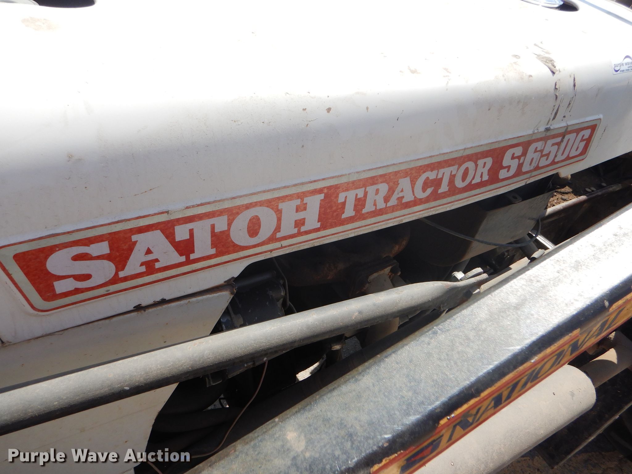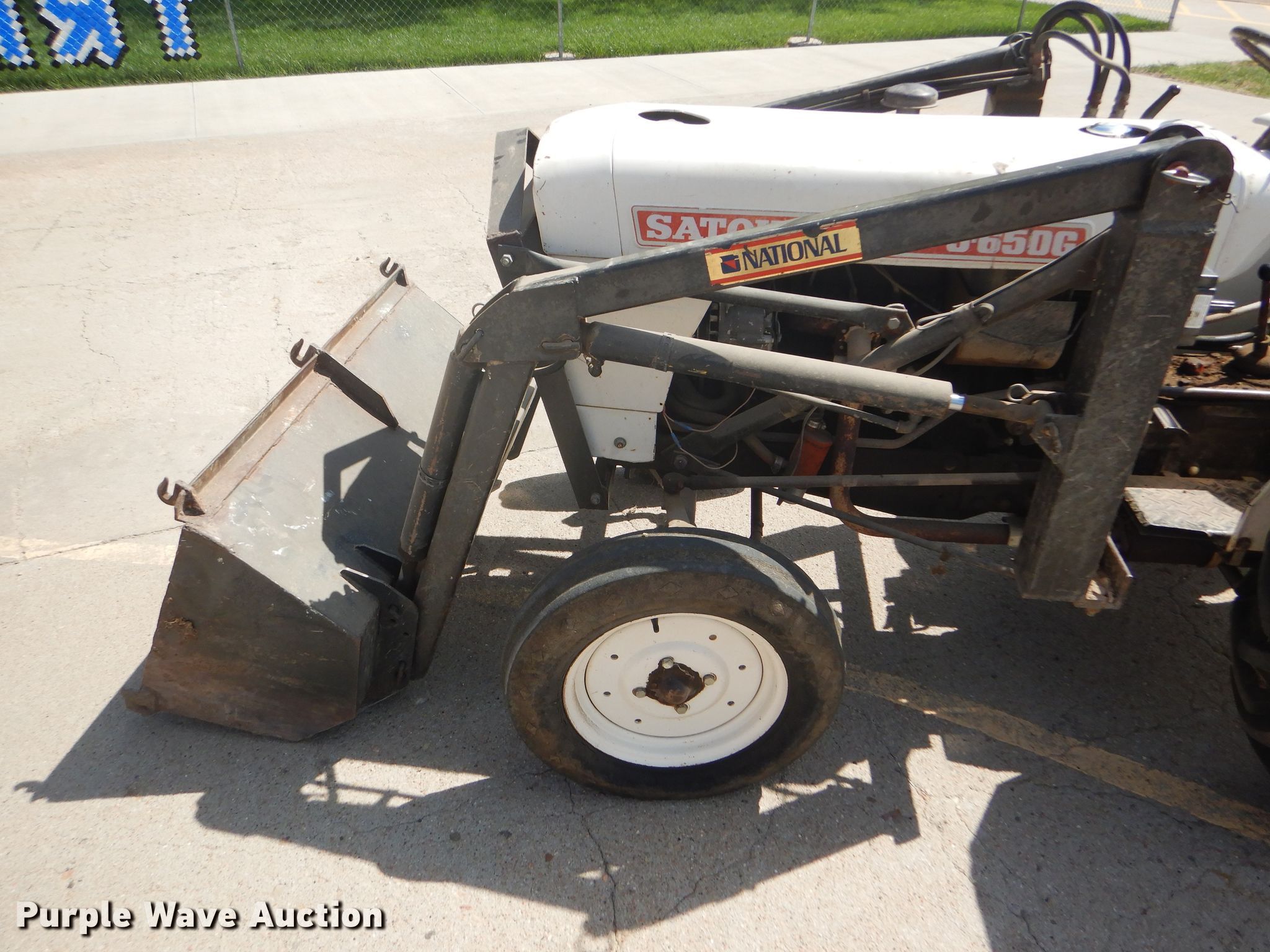 Purple Wave is selling a used Tractor in Kansas. This item is a Satoh S-650G tractor with the following: 658 hours on meter, Satoh four cylinder gas engine, 25 HP, Manual transmission, 6F-2R gears, 540 PTO, Three point, Top link, National loader, Two lever controls, 48"W bucket, 5.00-15 front tires, 11.2-24 rear tires