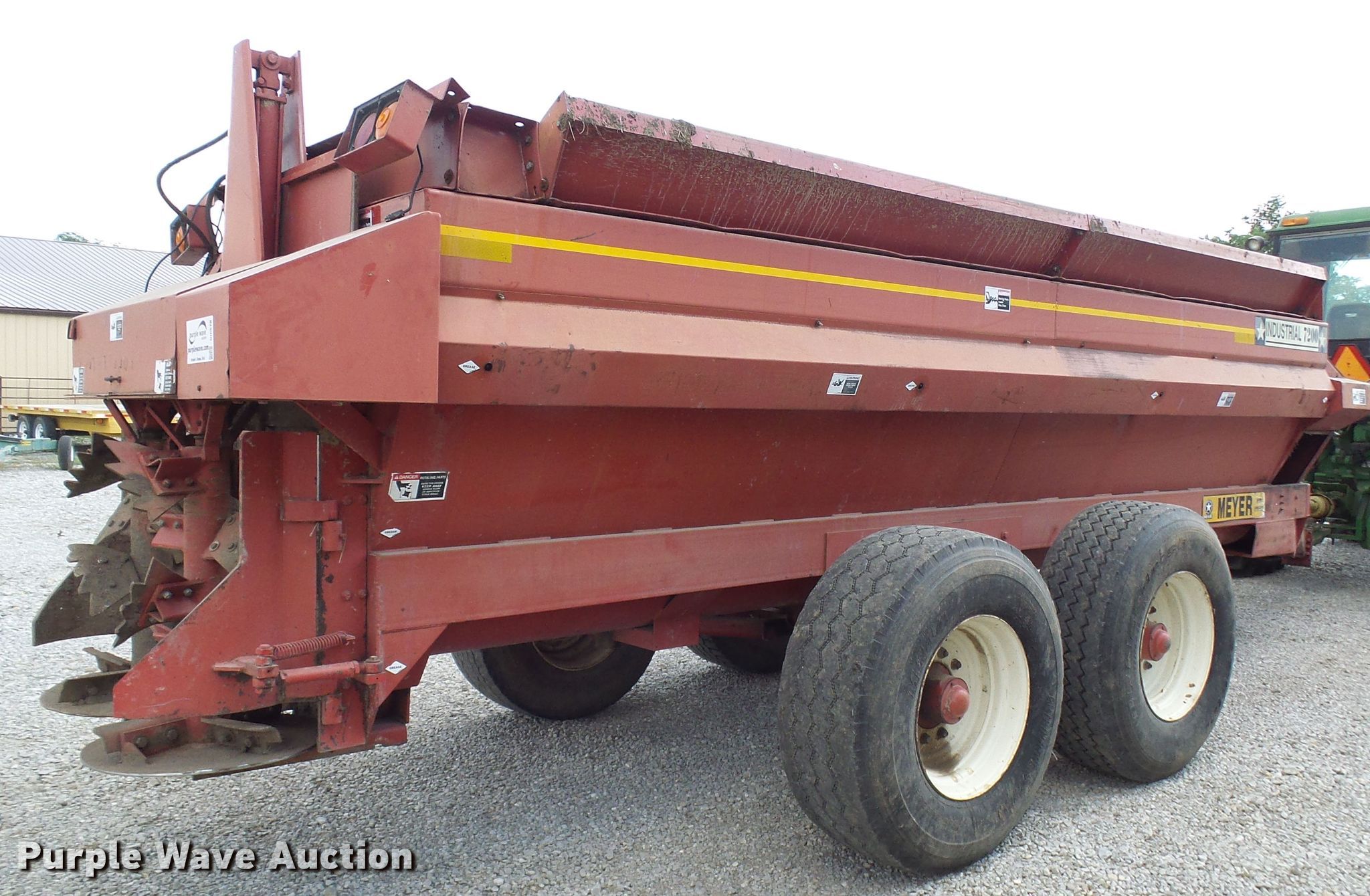Purple Wave is selling a used Manure Spreader in Missouri. This item is a Meyer 7200 manure spreader with the following: 19'L, Small 1000 PTO, Pin hitch, 425/65R22.5 tires, Serial SI067200330