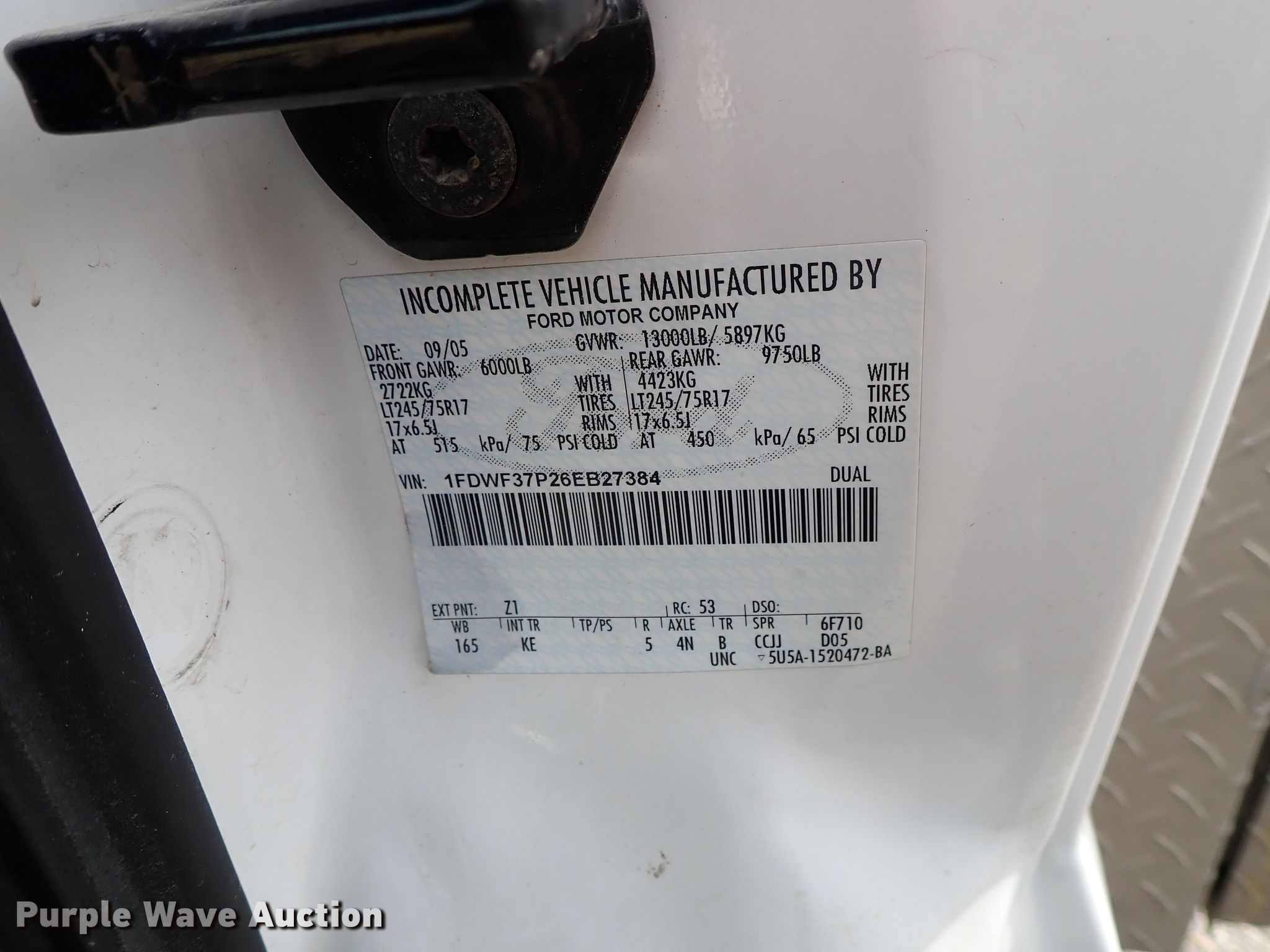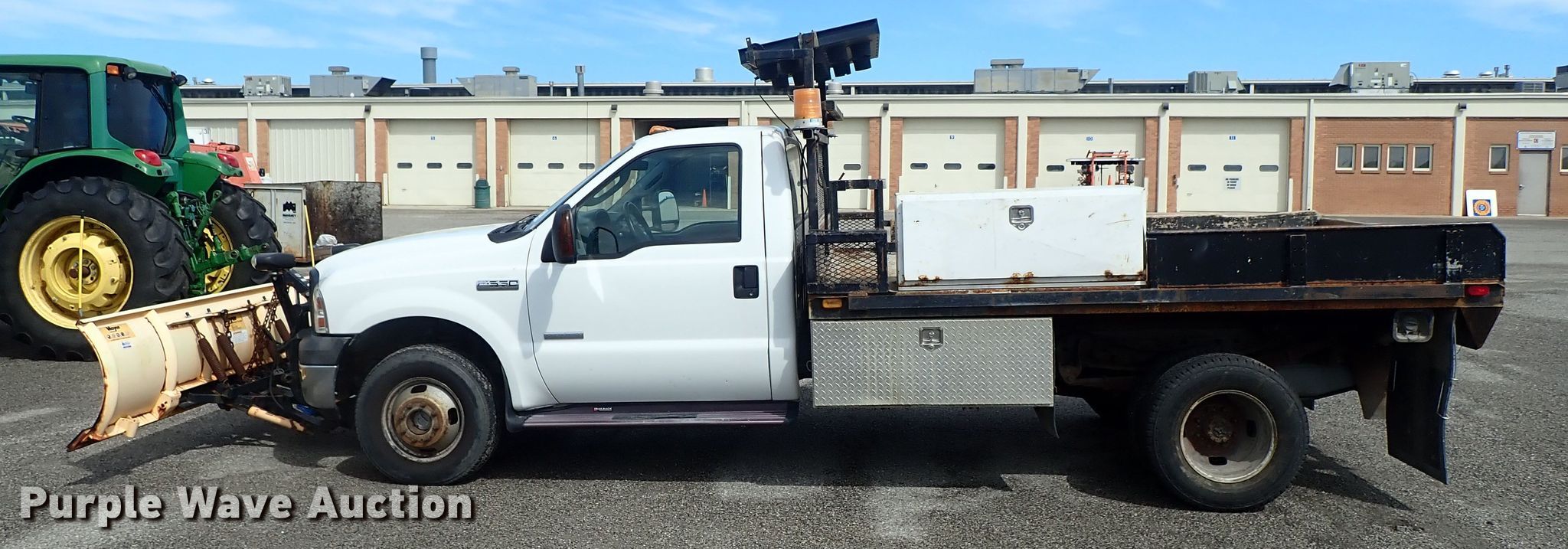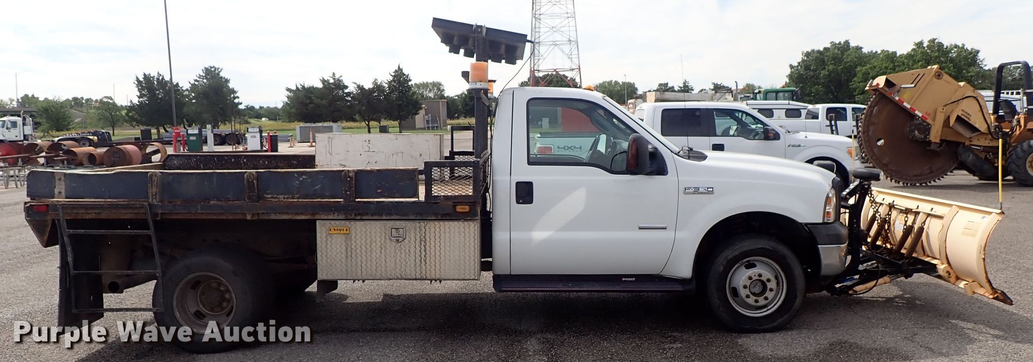 Purple Wave is selling a used 3/4 or 1 Ton Pickup or Van in Kansas. This item is a 2006 Ford F350 Super Duty flat dump bed pickup truck with the following: 126,539 miles on odometer, 6.0L V8 OHV 32V diesel engine, Automatic transmission, Four wheel drive, AC and heat, Cruise, Power windows and locks, 11'L x 94"W flat dump bed, 102"W snow plow, Arrow board, 245/75R17 tires, Check engine light on, Unit# 2093